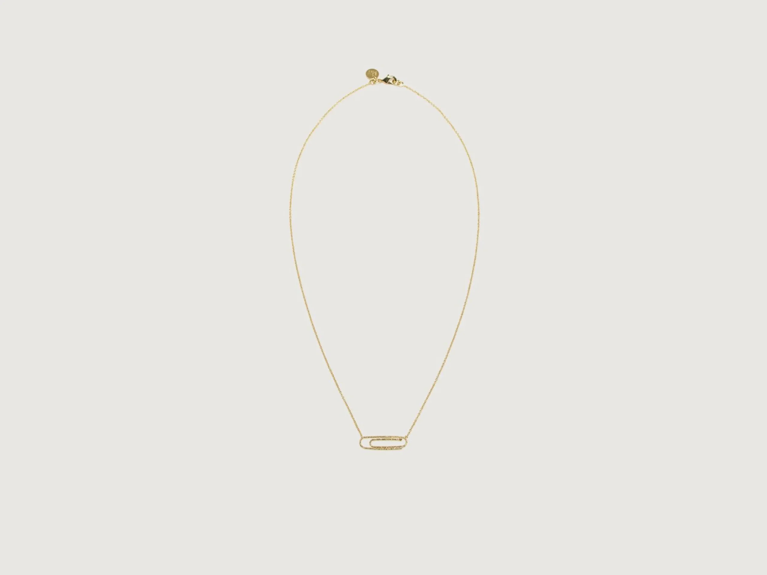 Le collier Jane de BDM Studio est une chaîne délicate plaquée or 24k avec un pendentif inspiré d’un trombone.