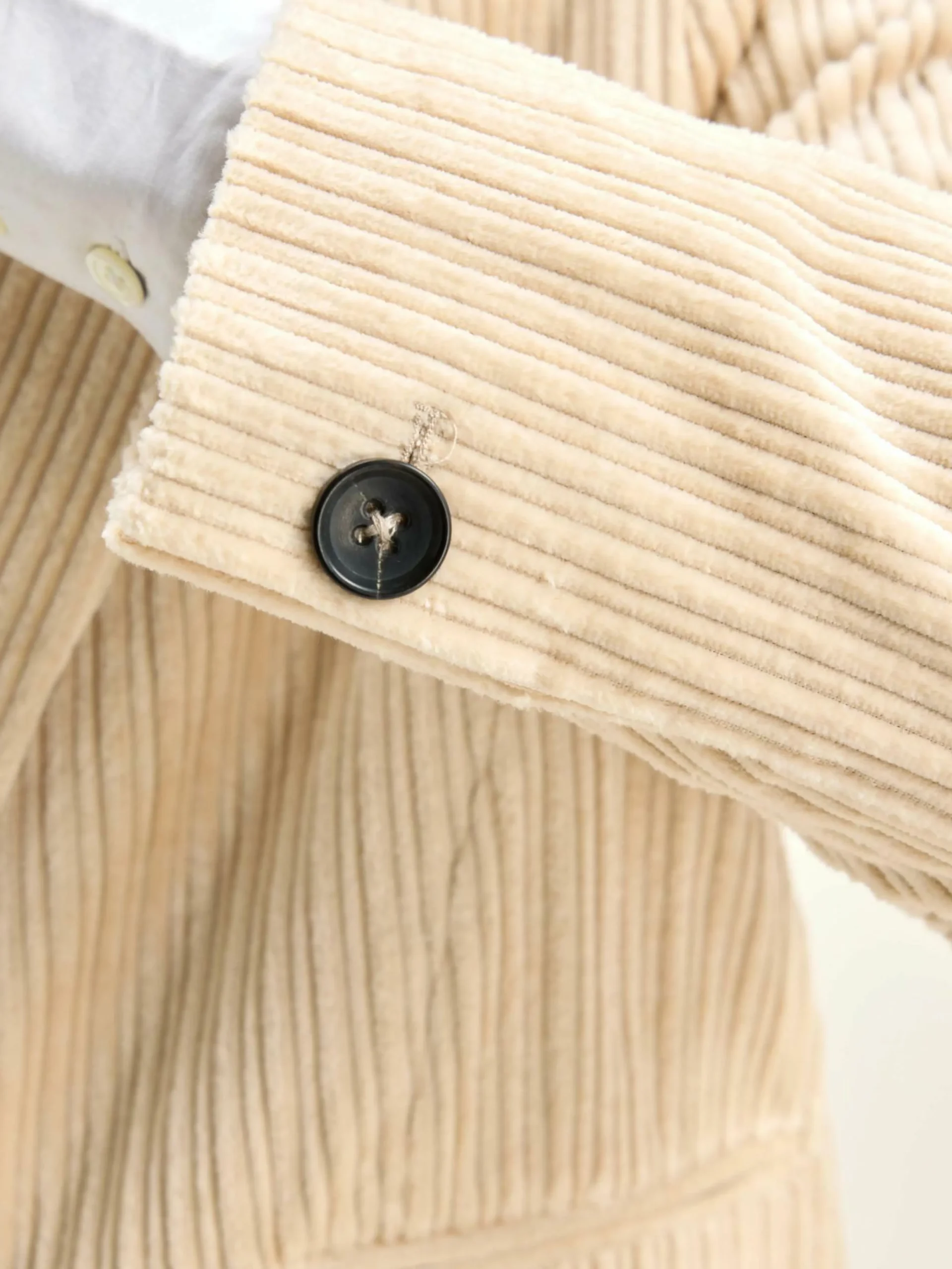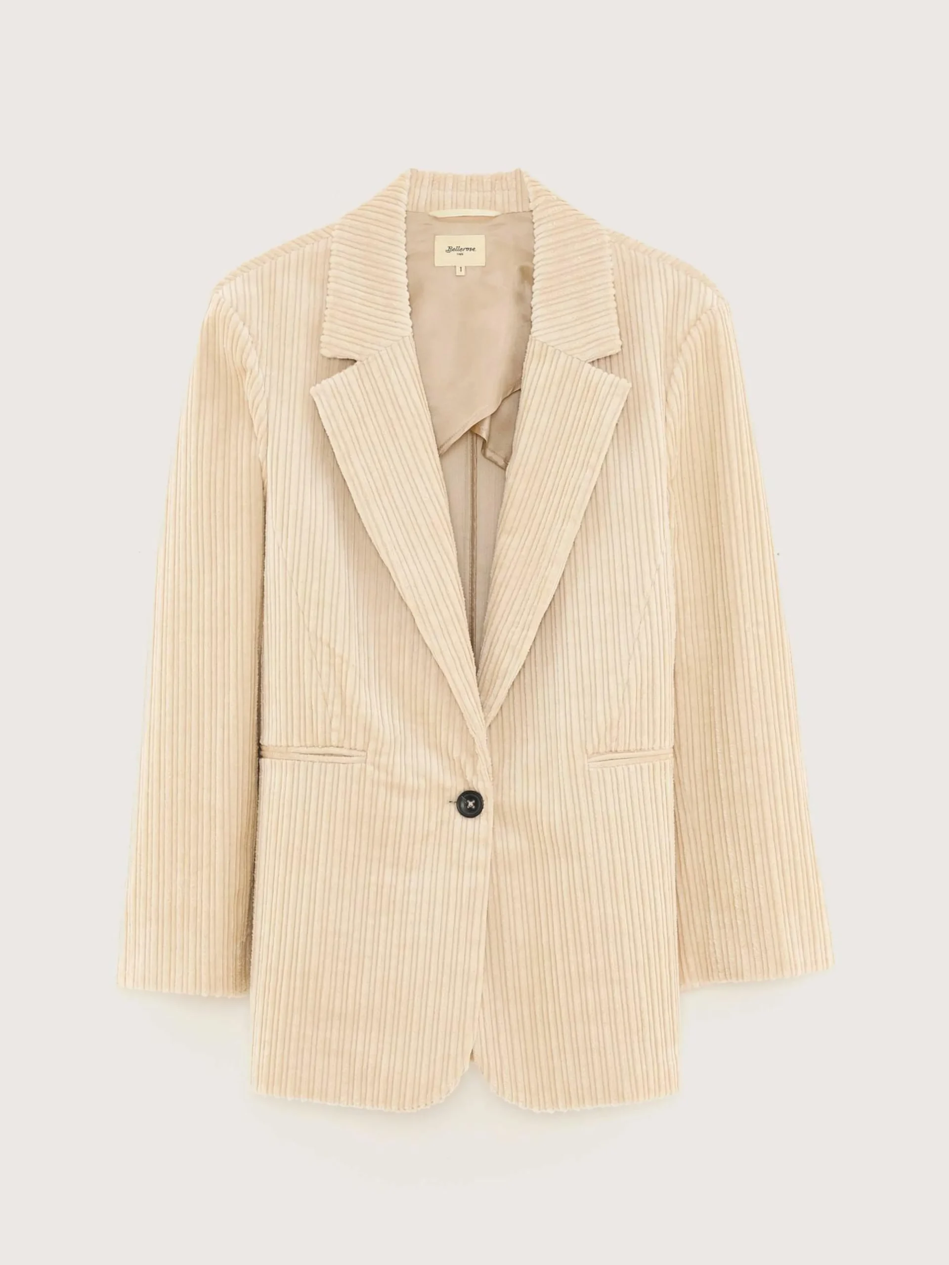Blazer classique coupe décontractée, en velours écru à côtes larges et irrégulières.