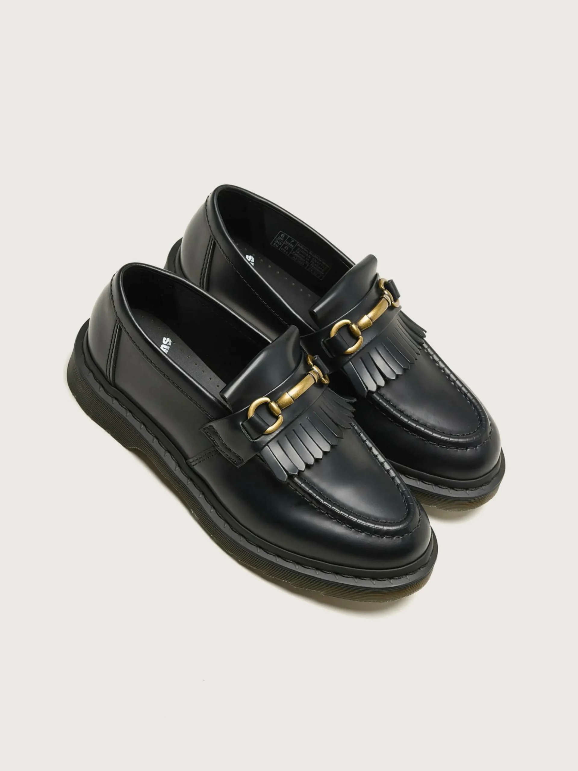 Un classique de Dr. Martens, le mocassin Adrian Snaffle Tassel à enfiler, en cuir noir lisse et poli, est doté d’une couture trépointe et d’une semelle coussinée AirWair.