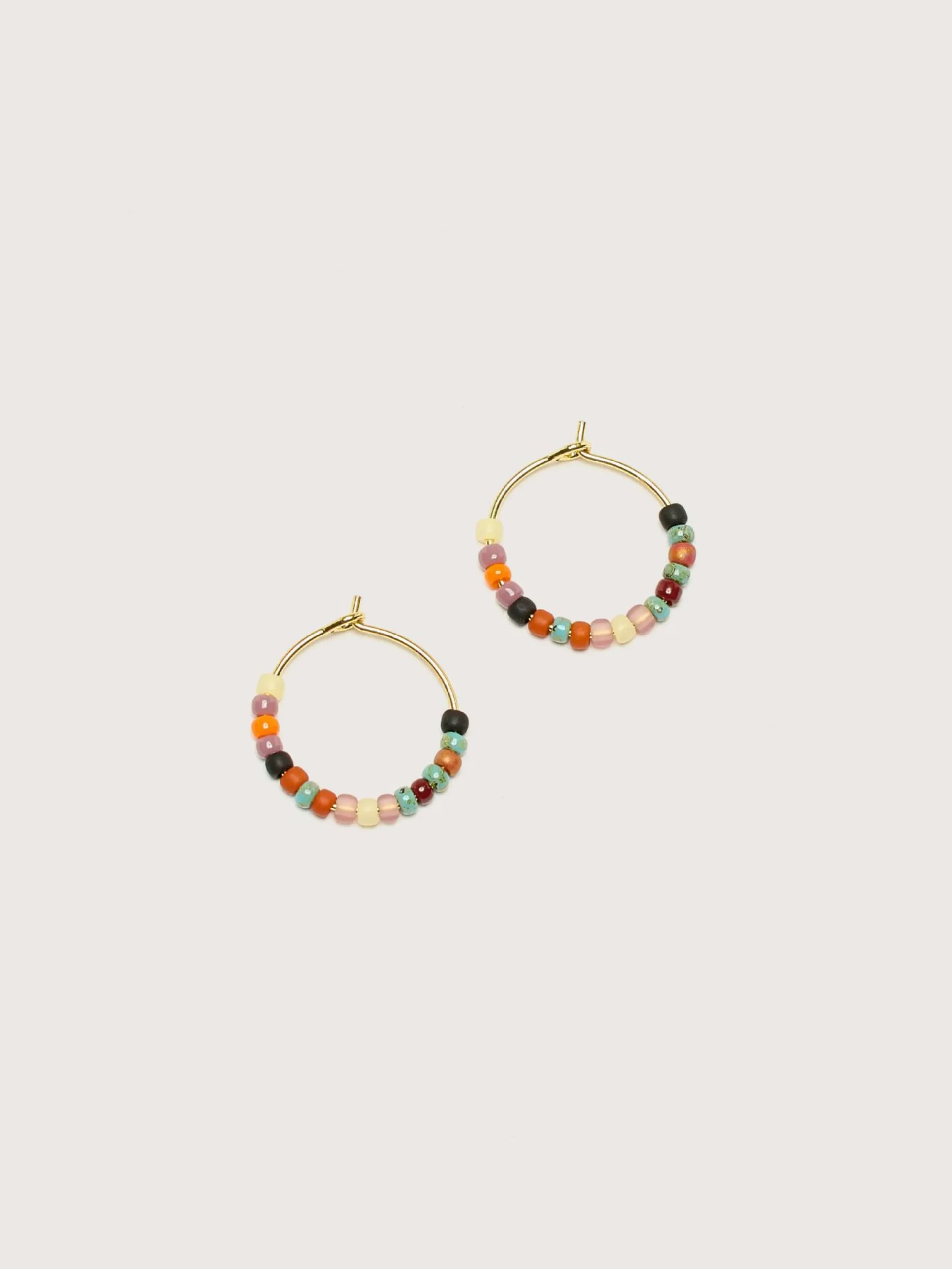 Les boucles d’oreilles Maya Beach d’Anni Lu sont plaquées or 18 carats et décorées de perles de verre colorées.