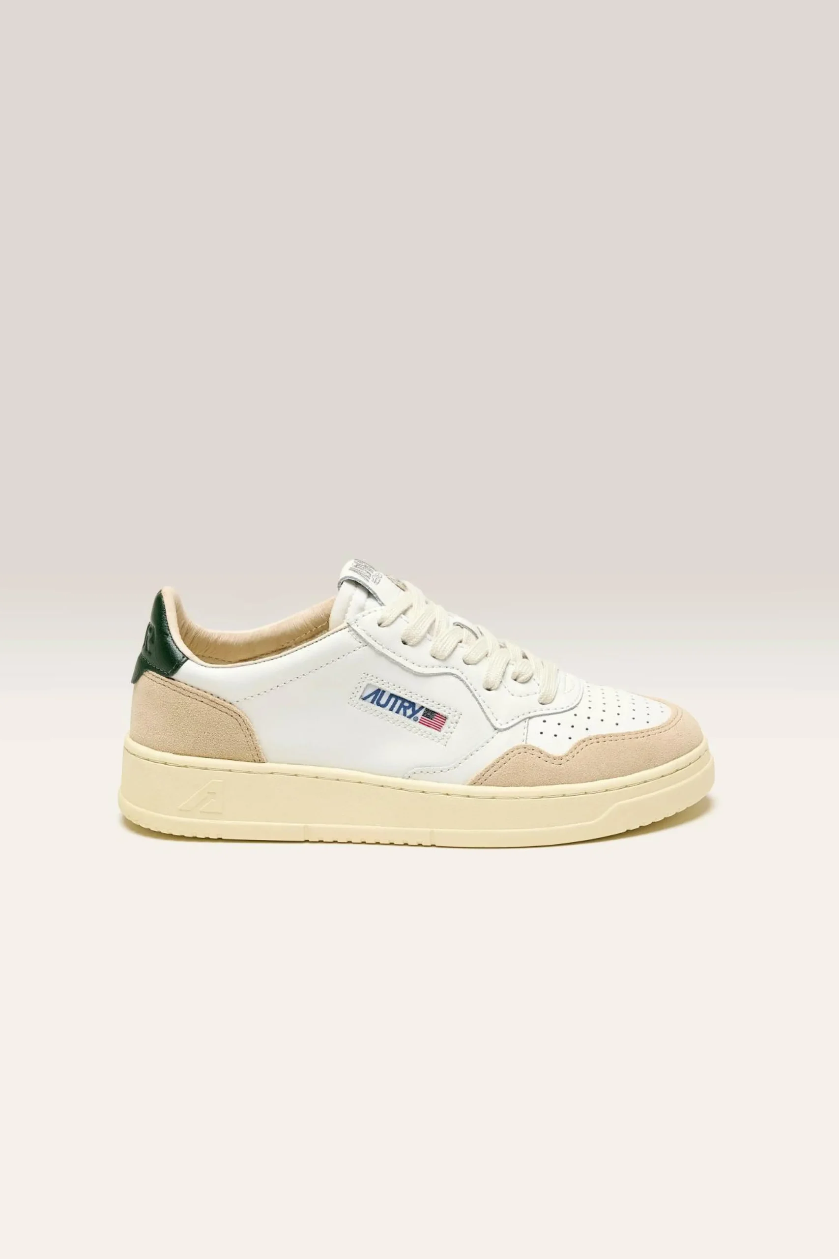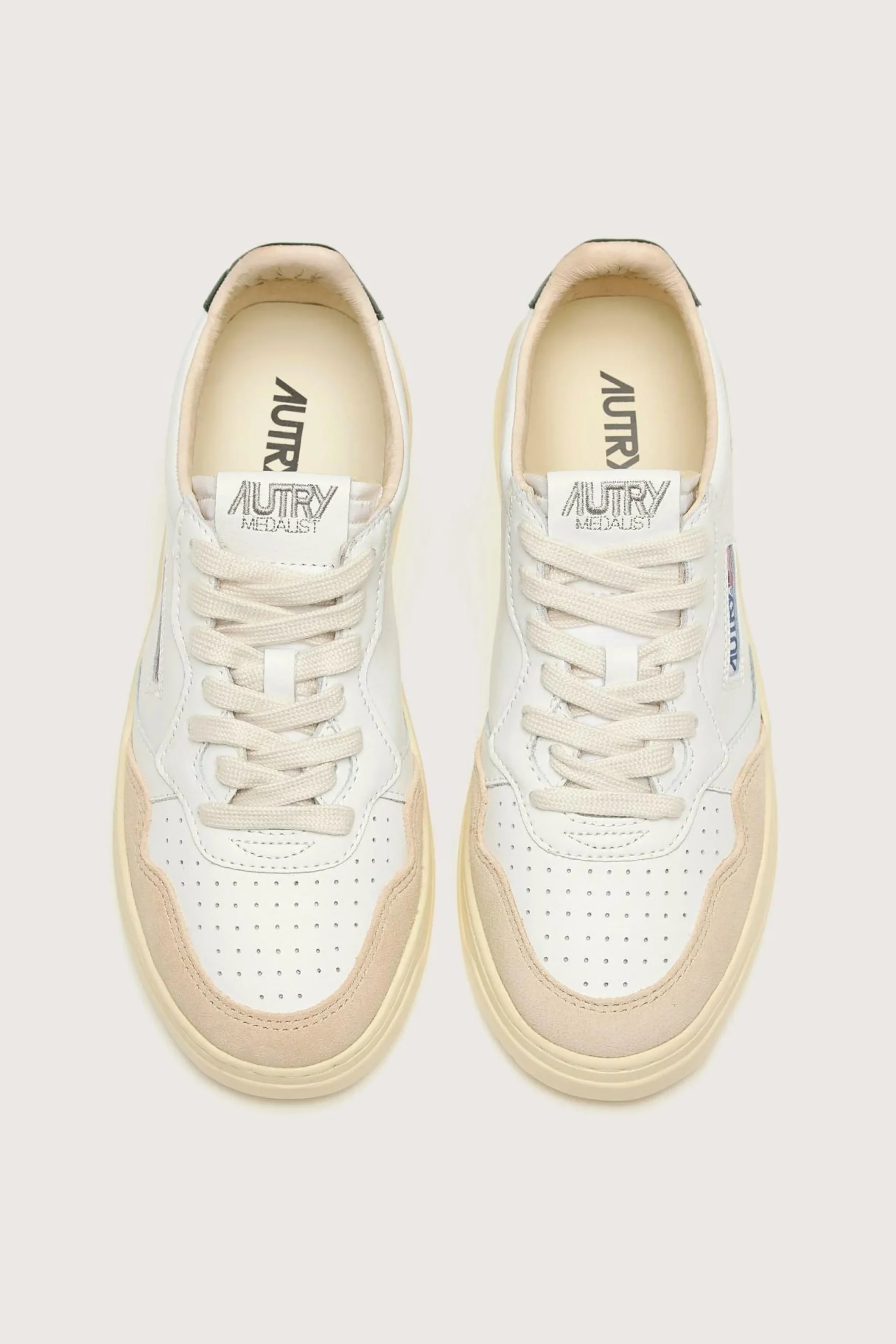 Les sneakers Autry Medalist Low présentent une tige en cuir blanc souple, des empiècements en suède doux et un bout perforé.