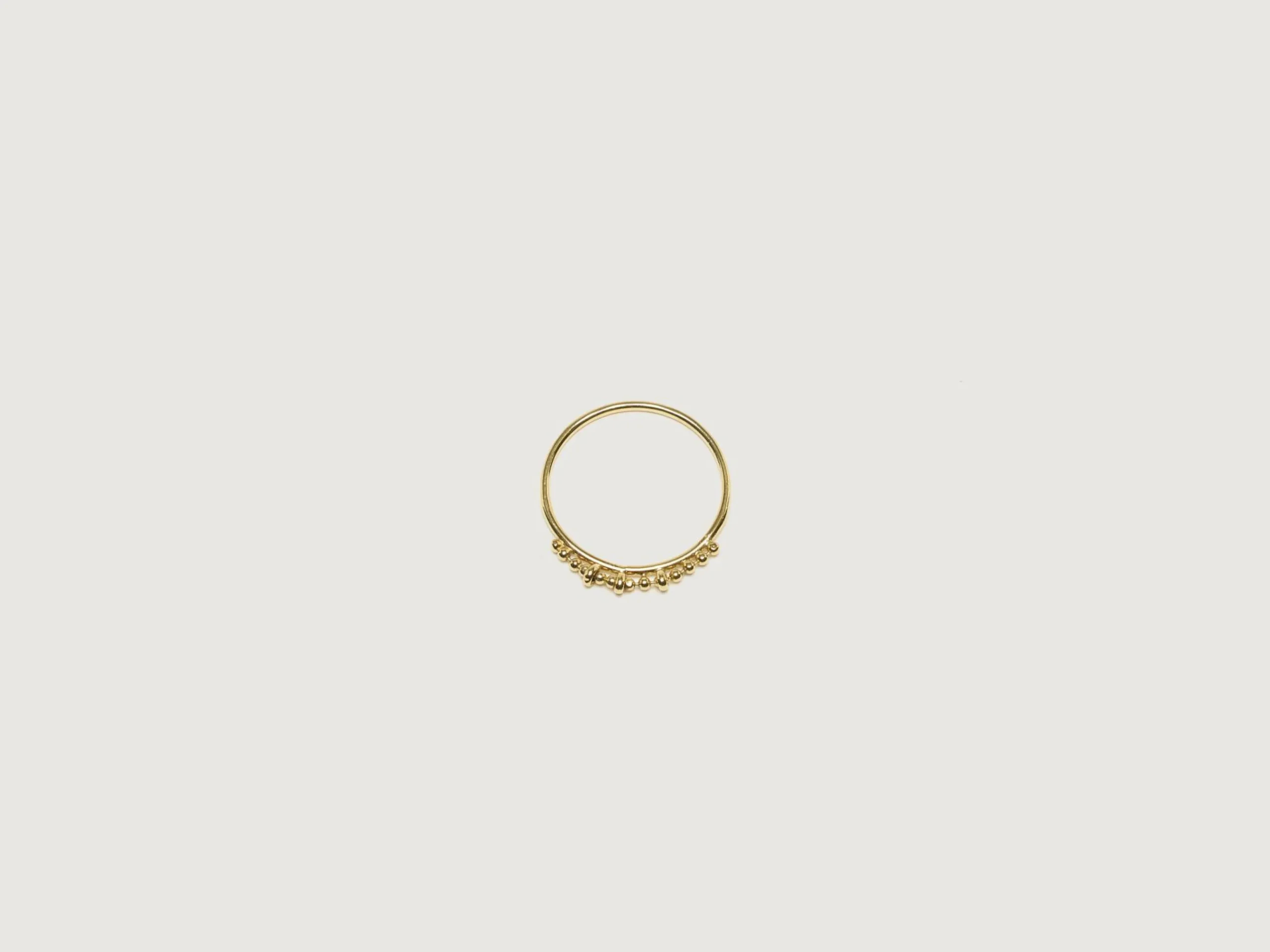 La bague Océane de BDM Studio est plaquée or 24k et ornée de petites perles également plaquées or.