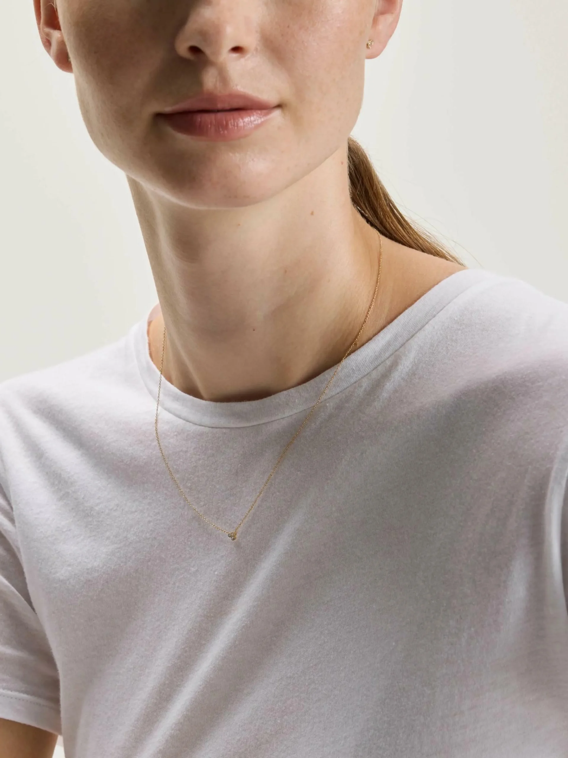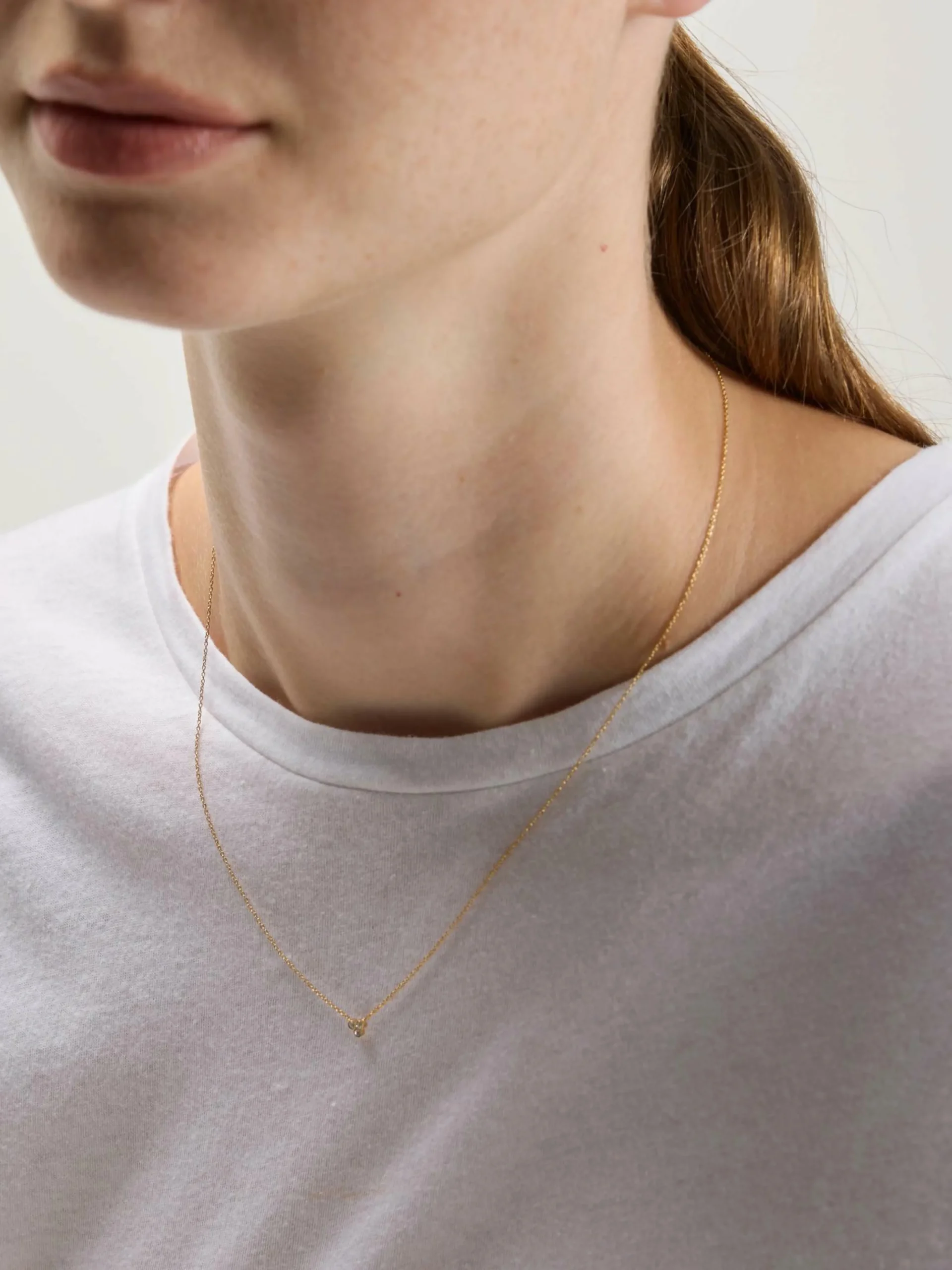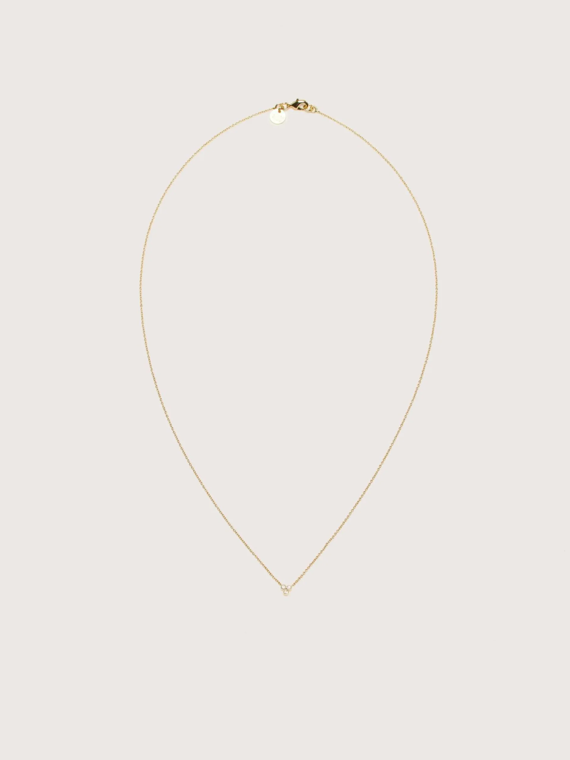 Le collier Melia de BDM Studio est une chaîne délicate plaquée or 24k ornée d’un petit trio de strass Swarovski.