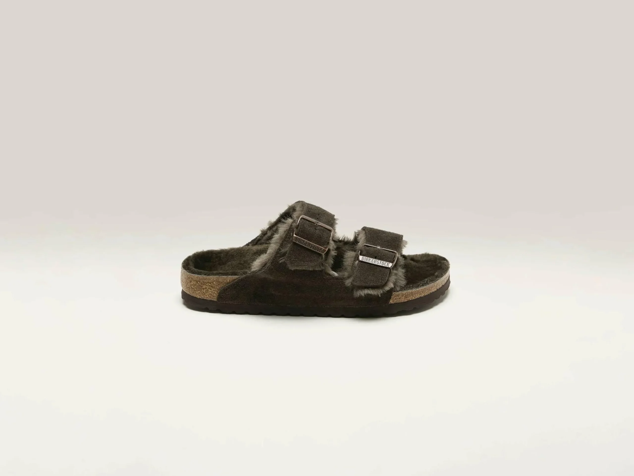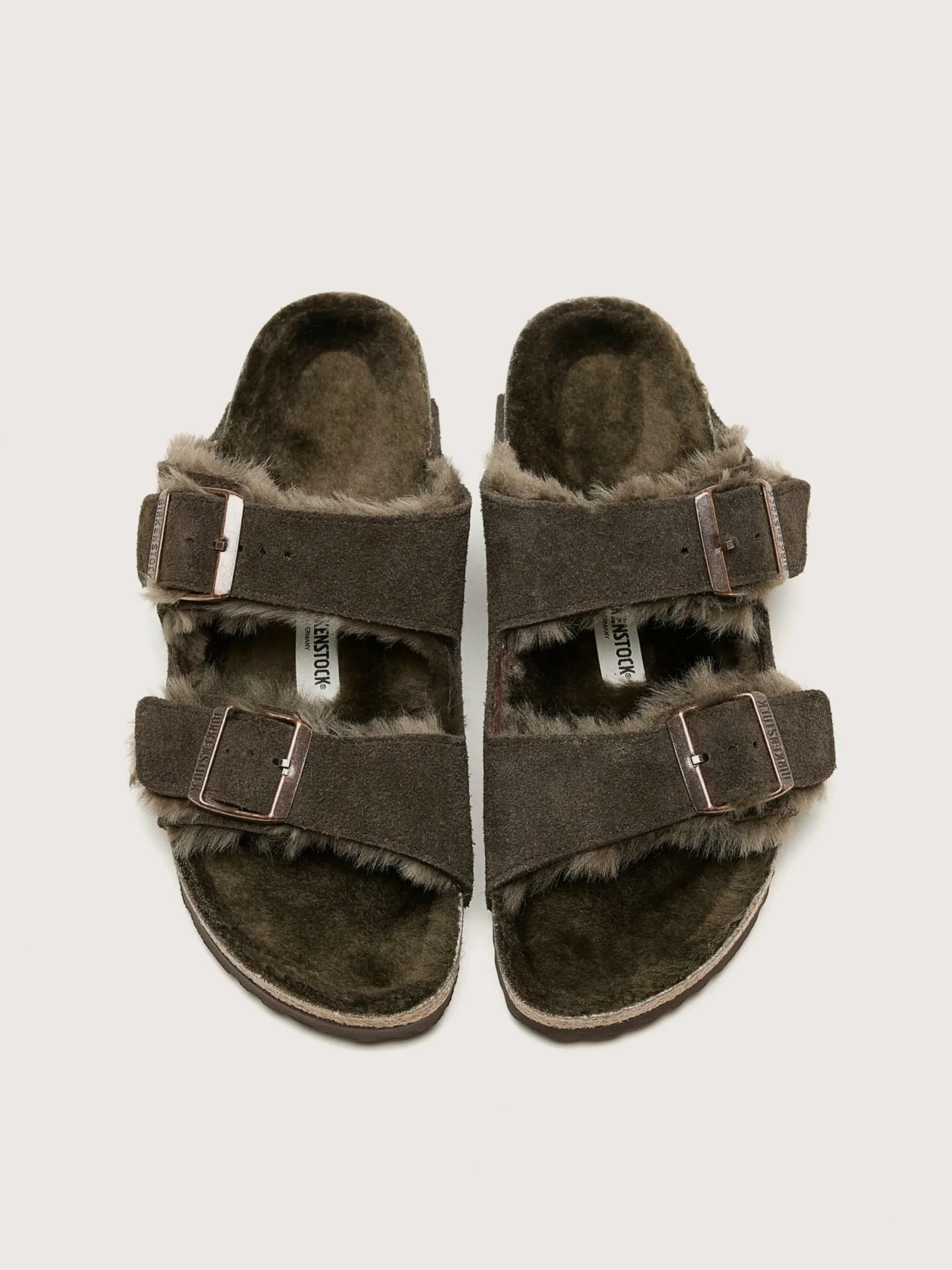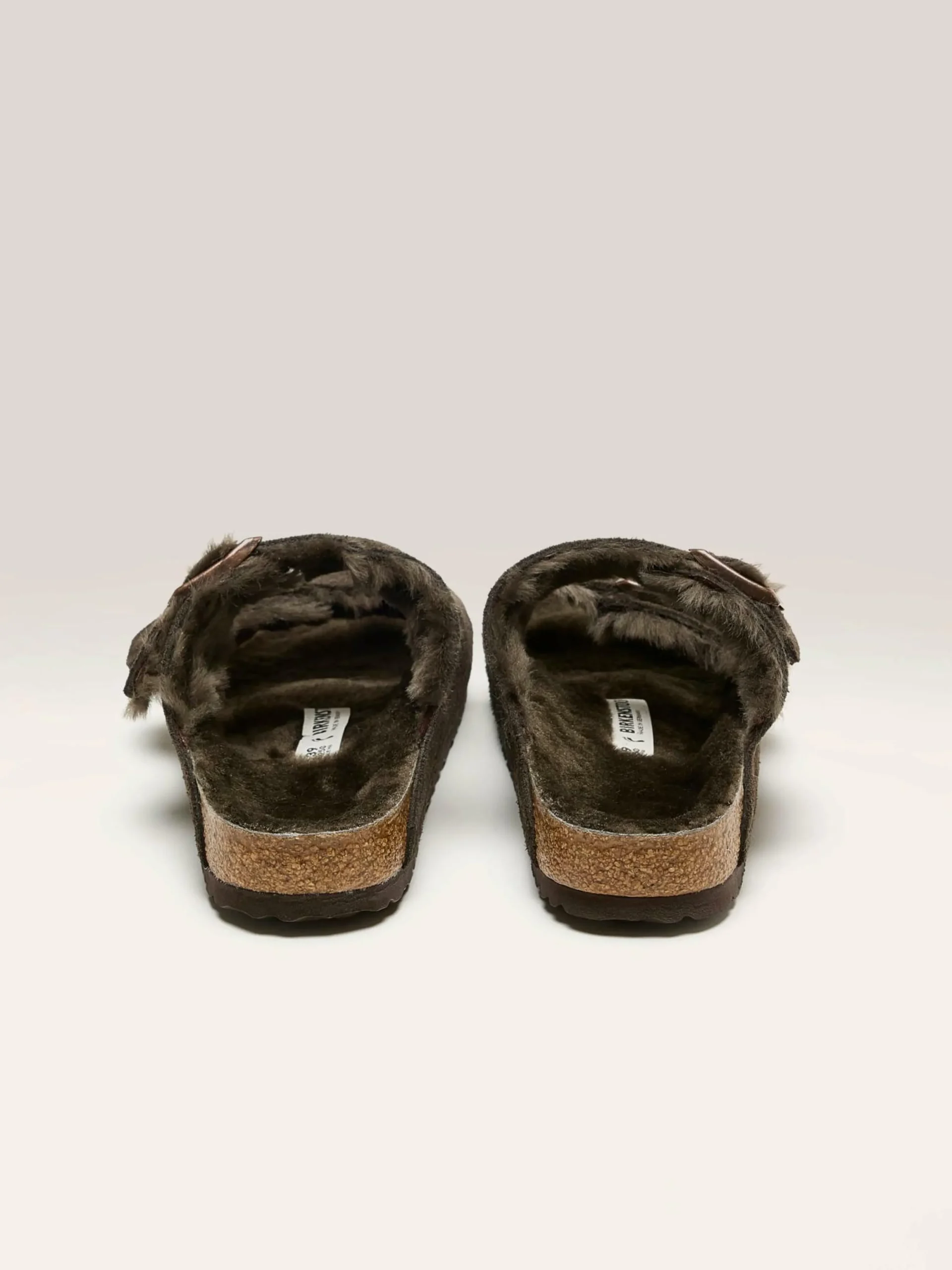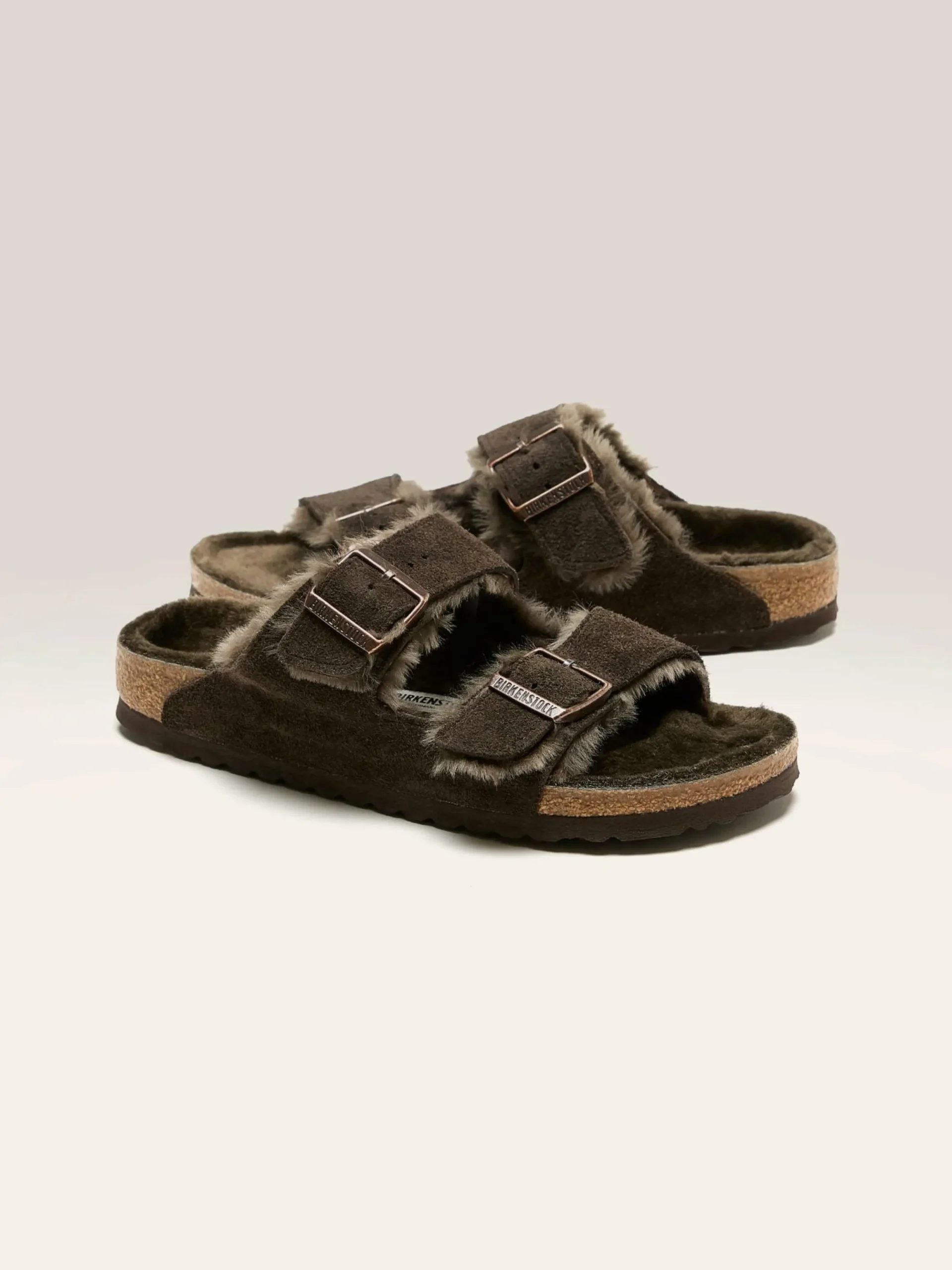 Les sandales fourrées Birkenstock Arizona Shearling présentent des brides en daim doublées de fourrure et une semelle doublée également de fourrure douce.
