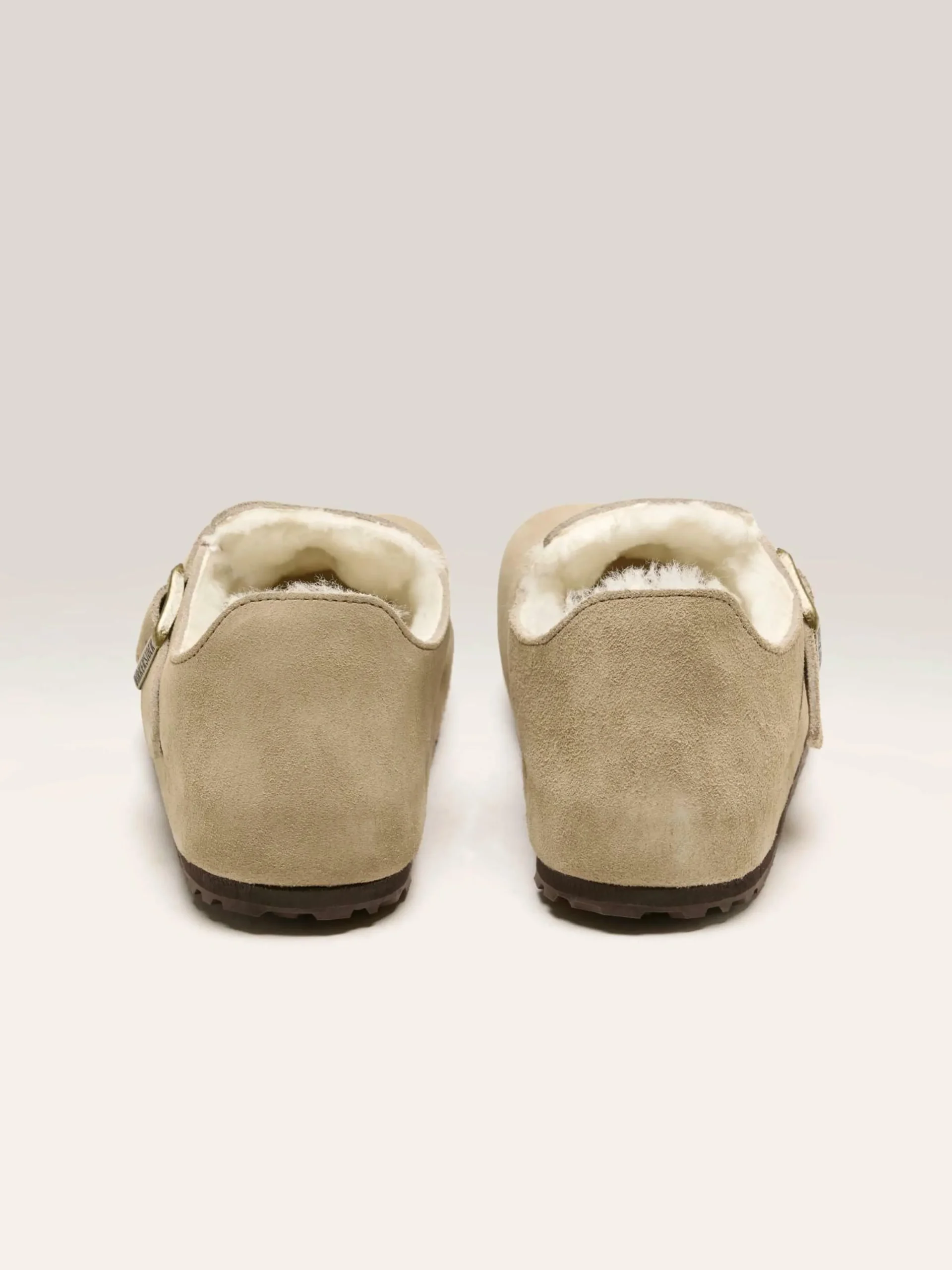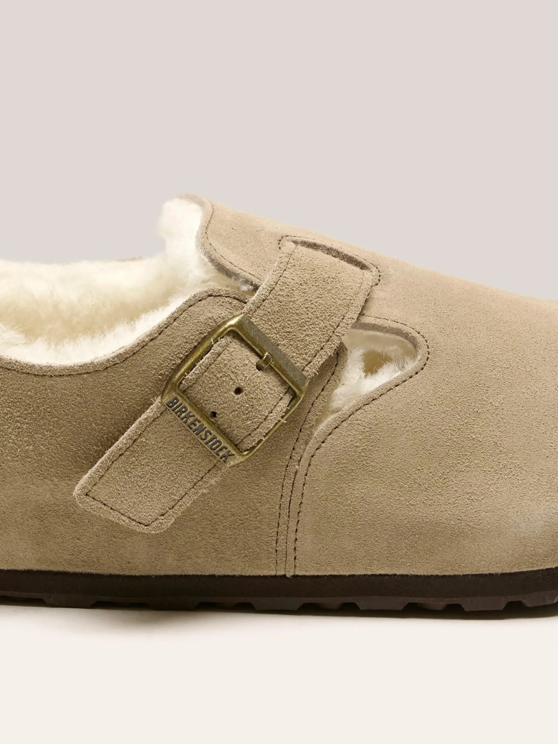 Les sandales Birkenstock London Shearling sont dotées d’une tige en suède doublée de fourrure et d’une semelle intérieure en liège doublée de fourrure également.
