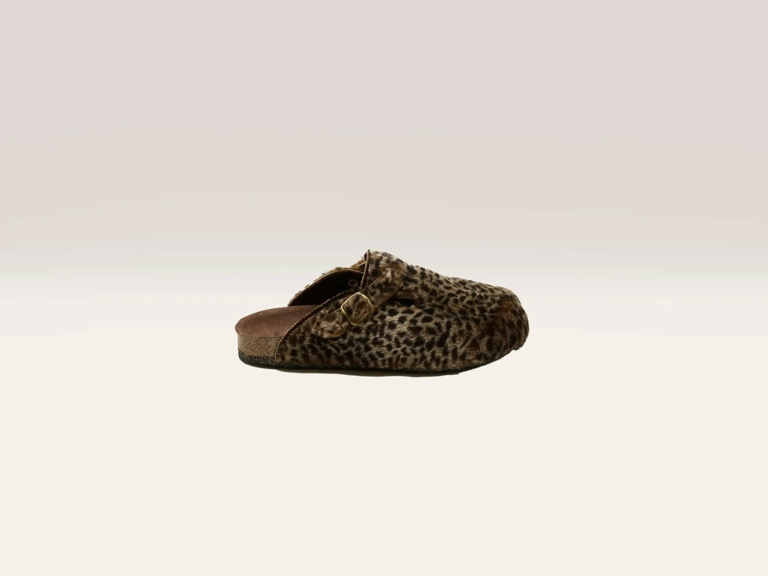 Les mules Bosabo Leopard sont fabriqués à la main en France avec un dessus en cuir et peau de mouton, ainsi qu’une semelle intérieure en liège souple doublée de suède.
