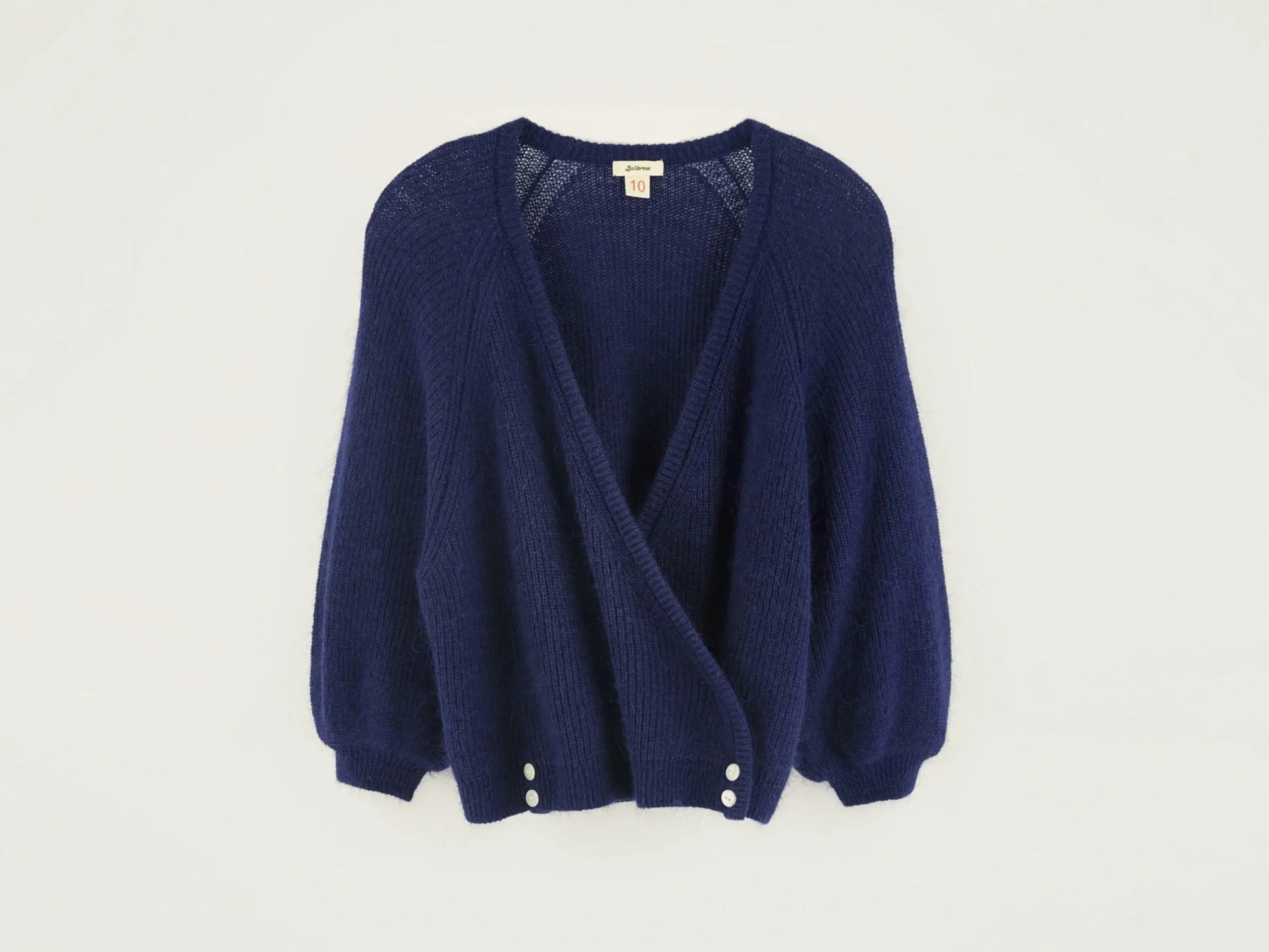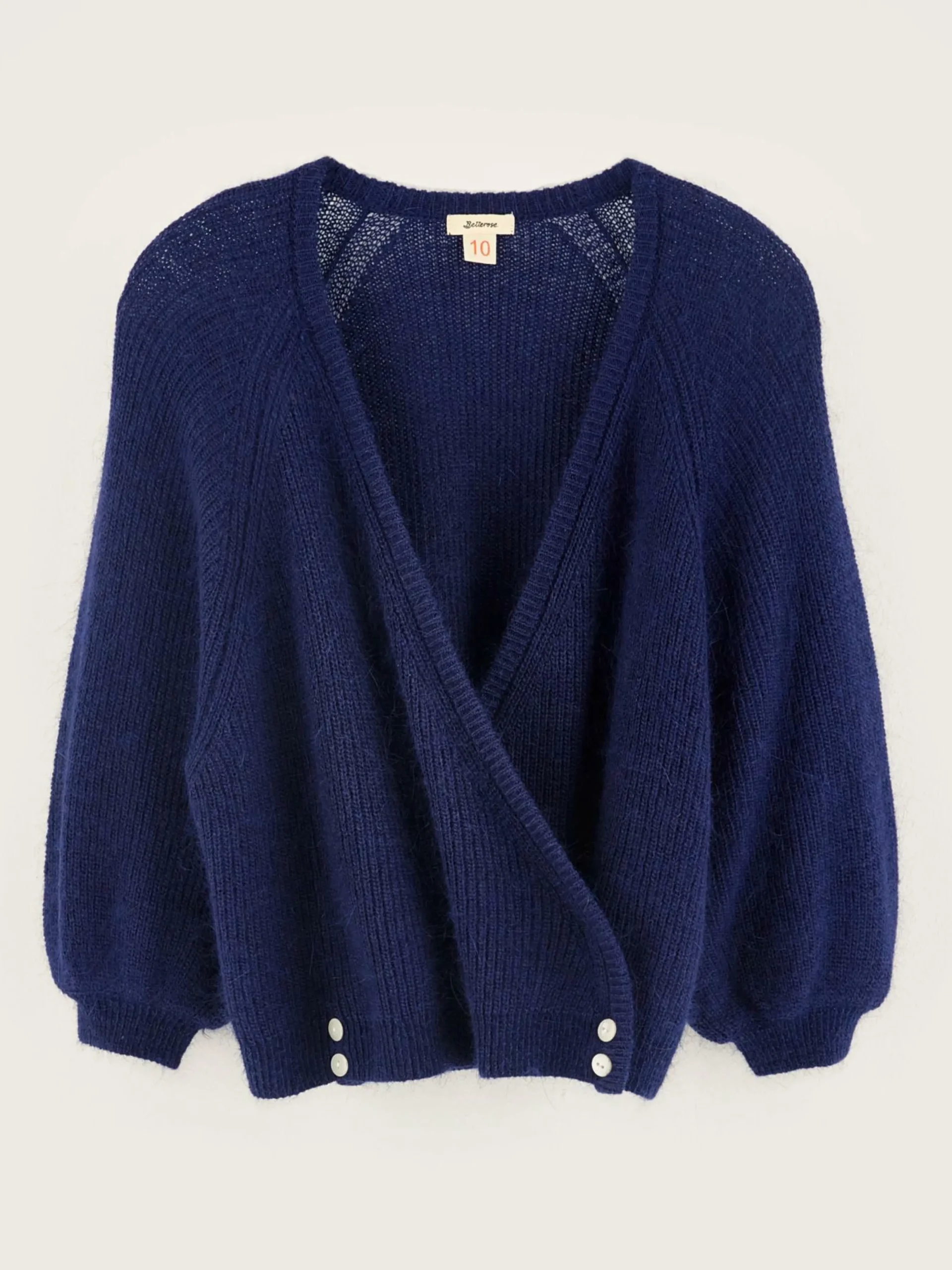 Cache-coeur à col V de couleur bleu cobalt.