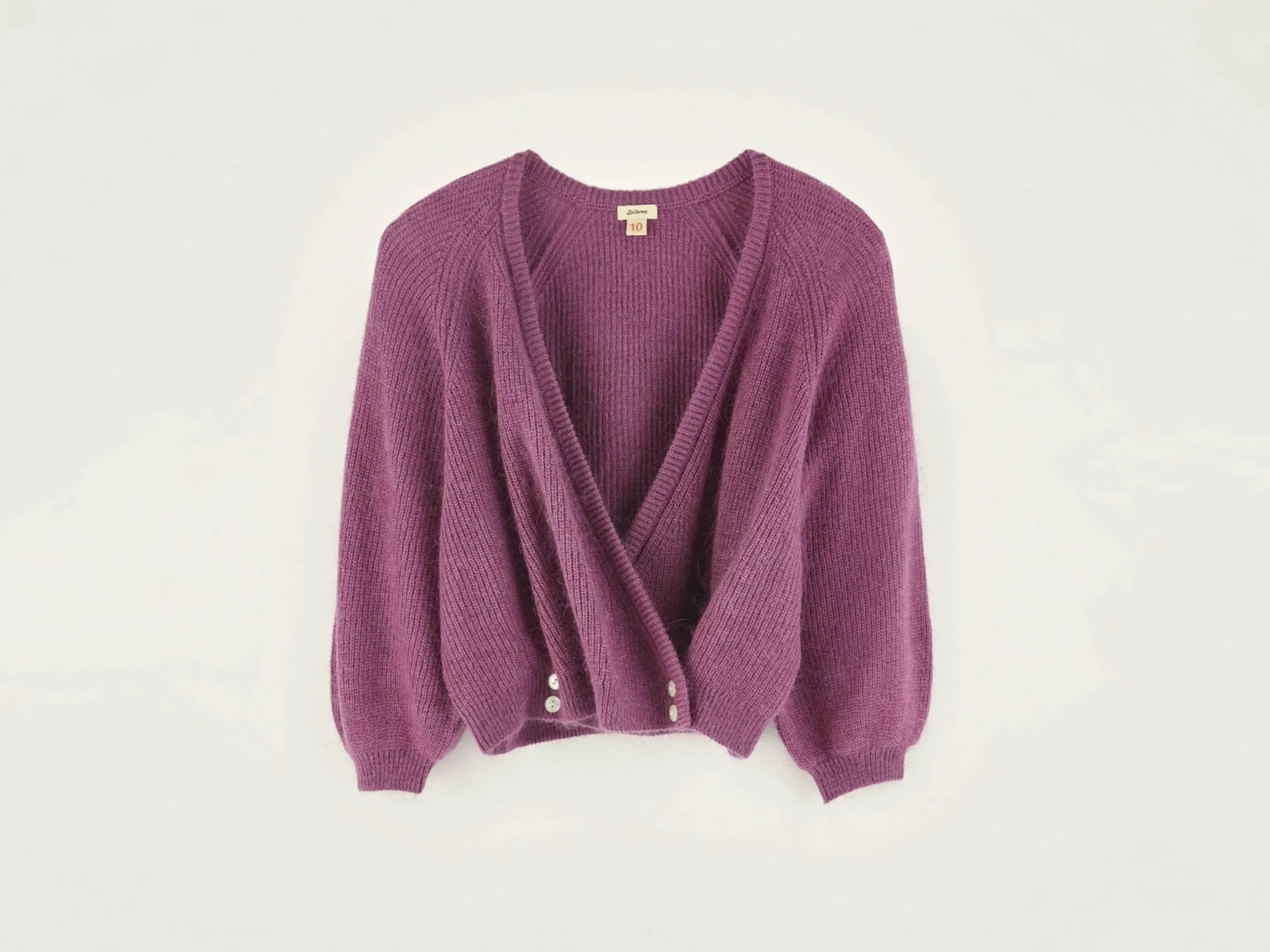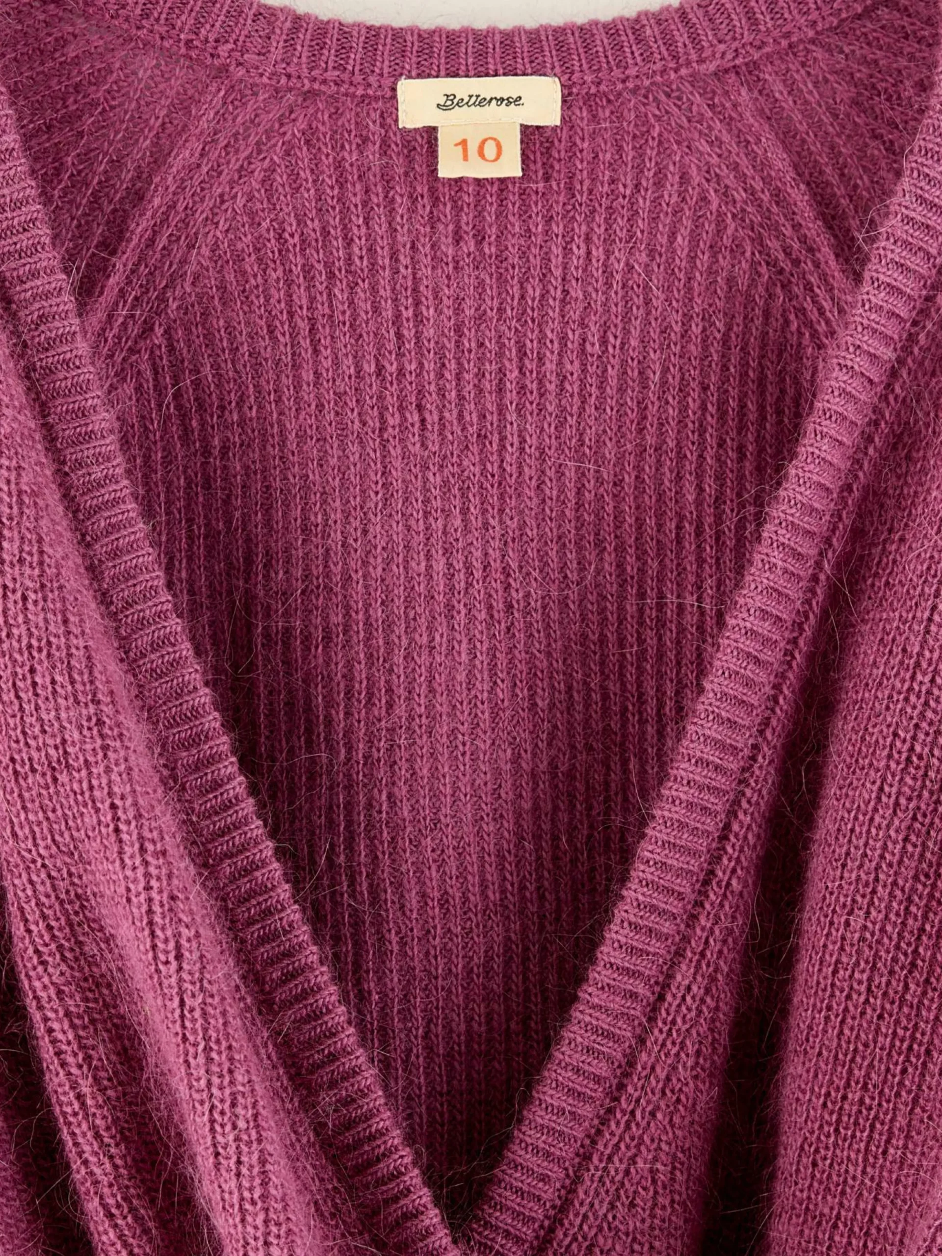 Cache-coeur à col V de couleur rose framboise.