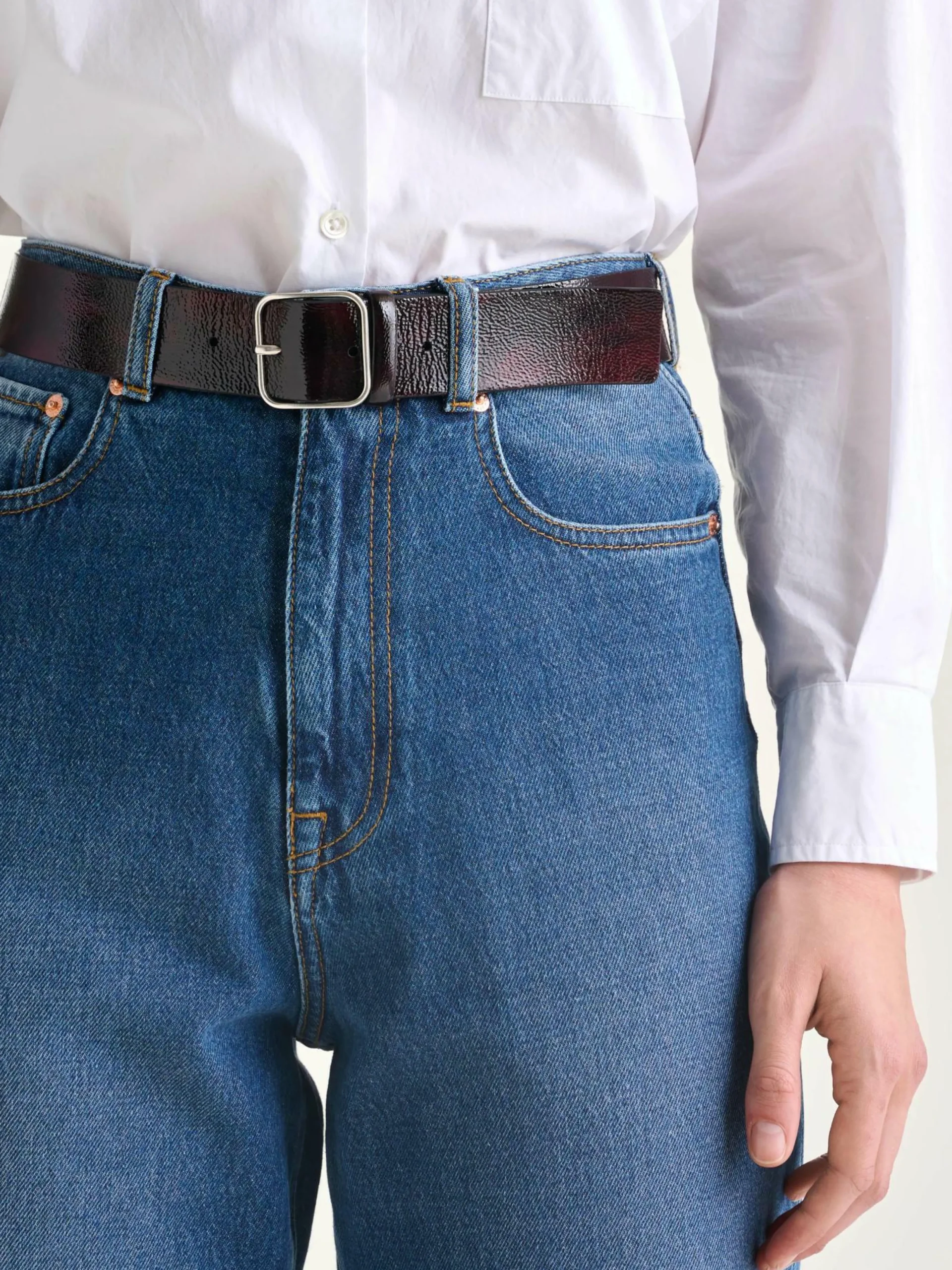 Ceinture classique en cuir crispé couleur bordeaux.