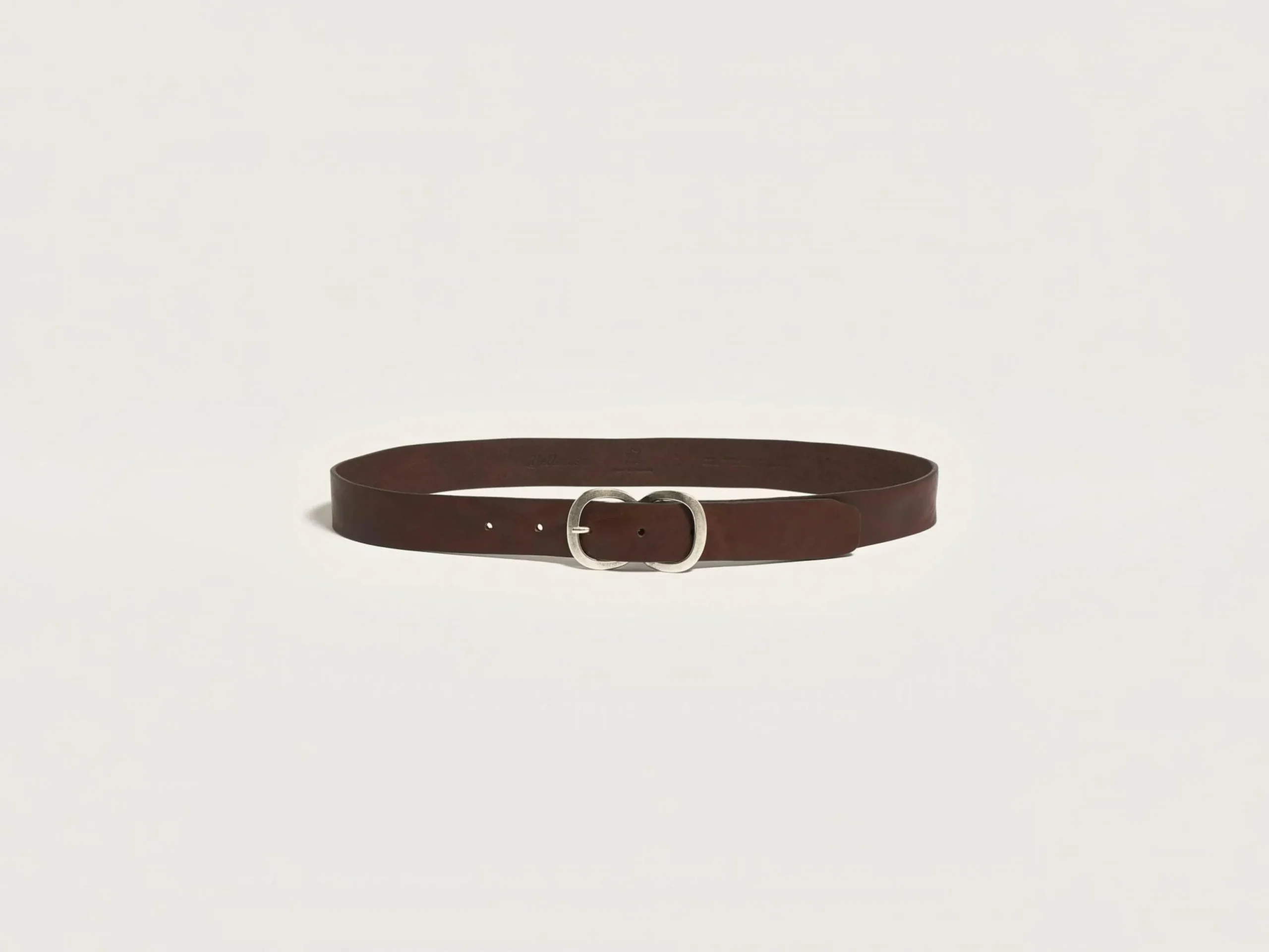 Ceinture classique en cuir marron avec boucle en argent.