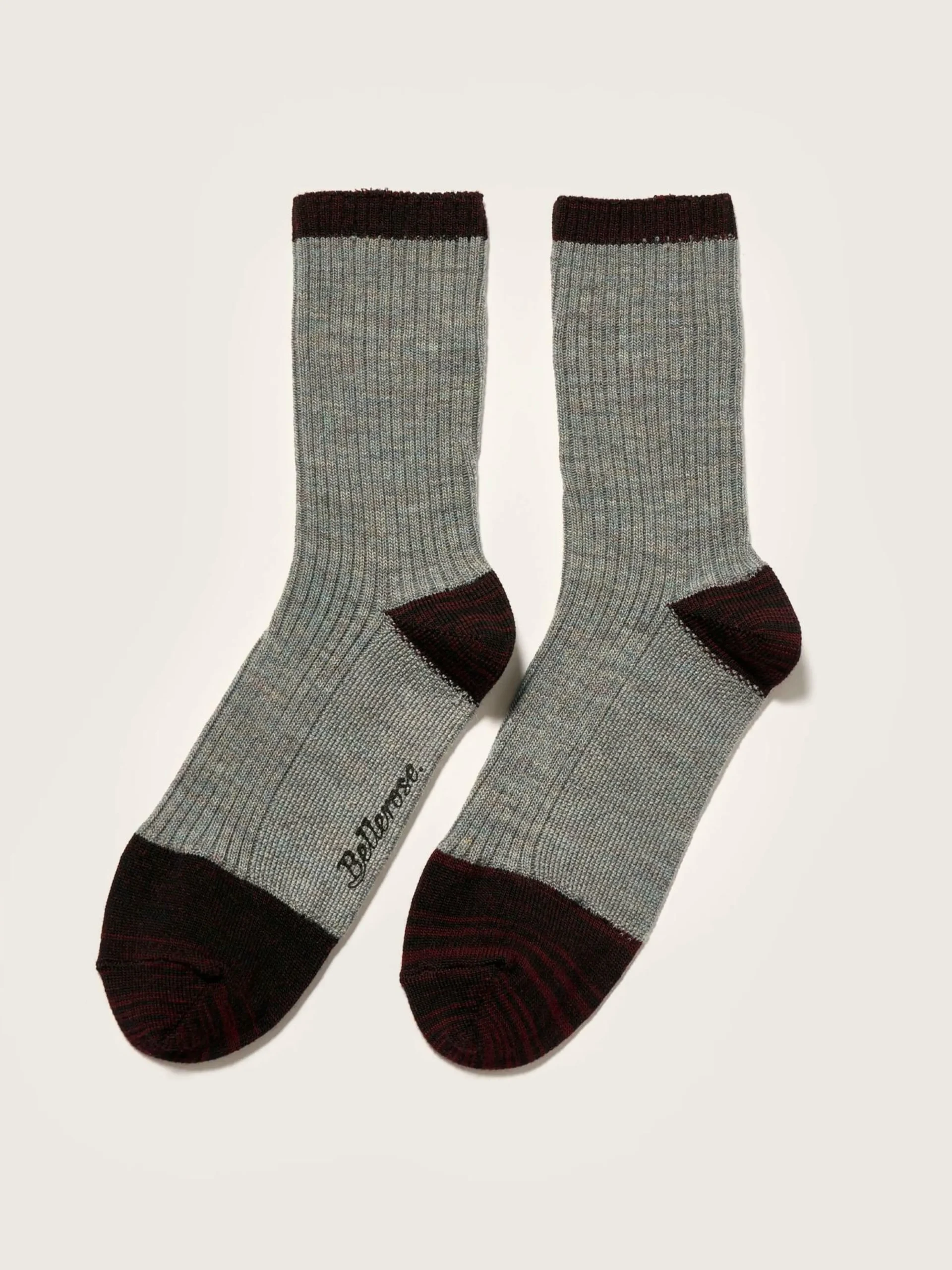 Chaussettes grises avec bande contrastée à la cheville et talons et pointes en fil imprimé.