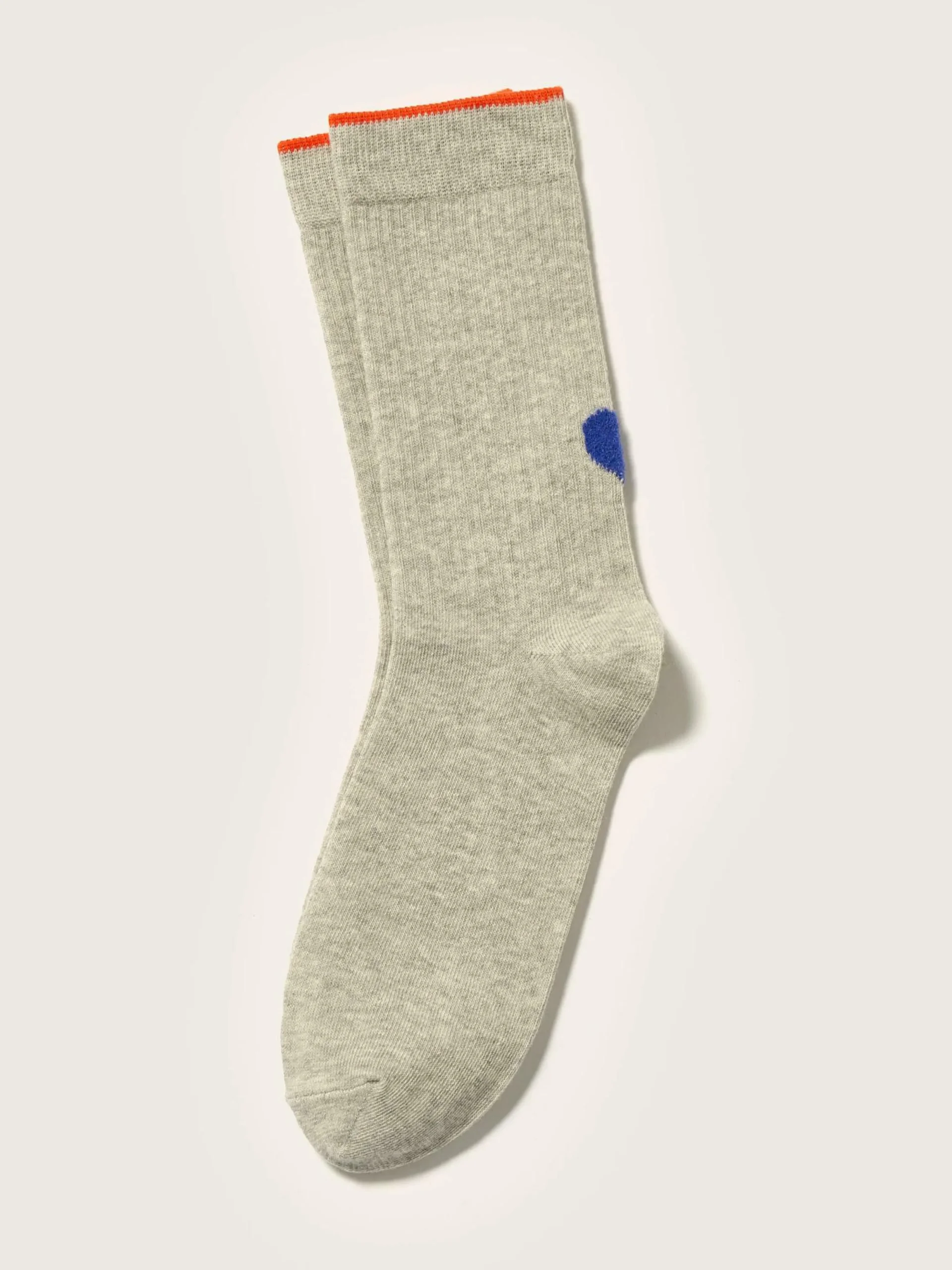 Chaussettes classiques en gris chiné avec coeur bleu sur le talon.