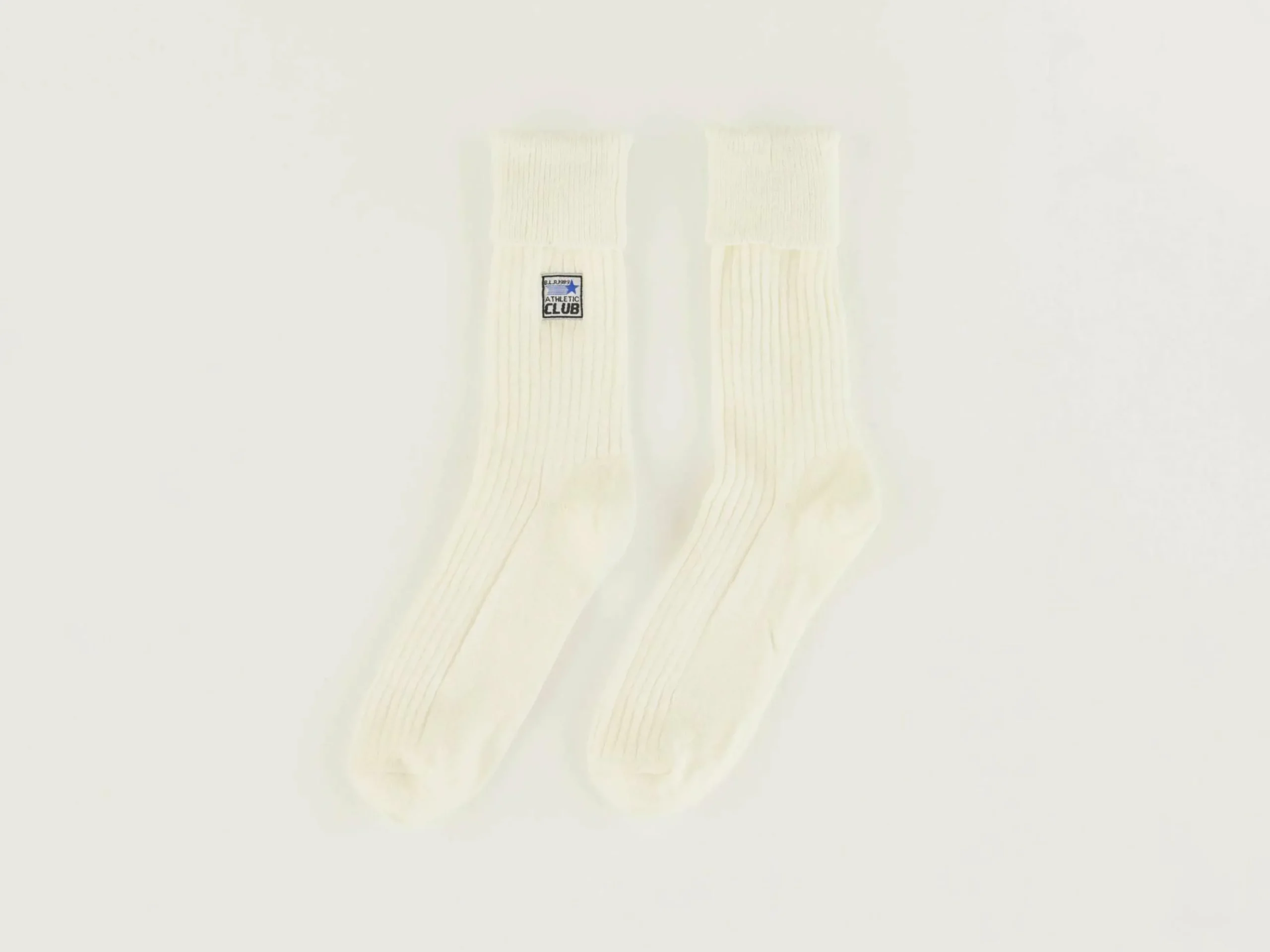 Chaussettes classiques écrues en maille côtelée.
