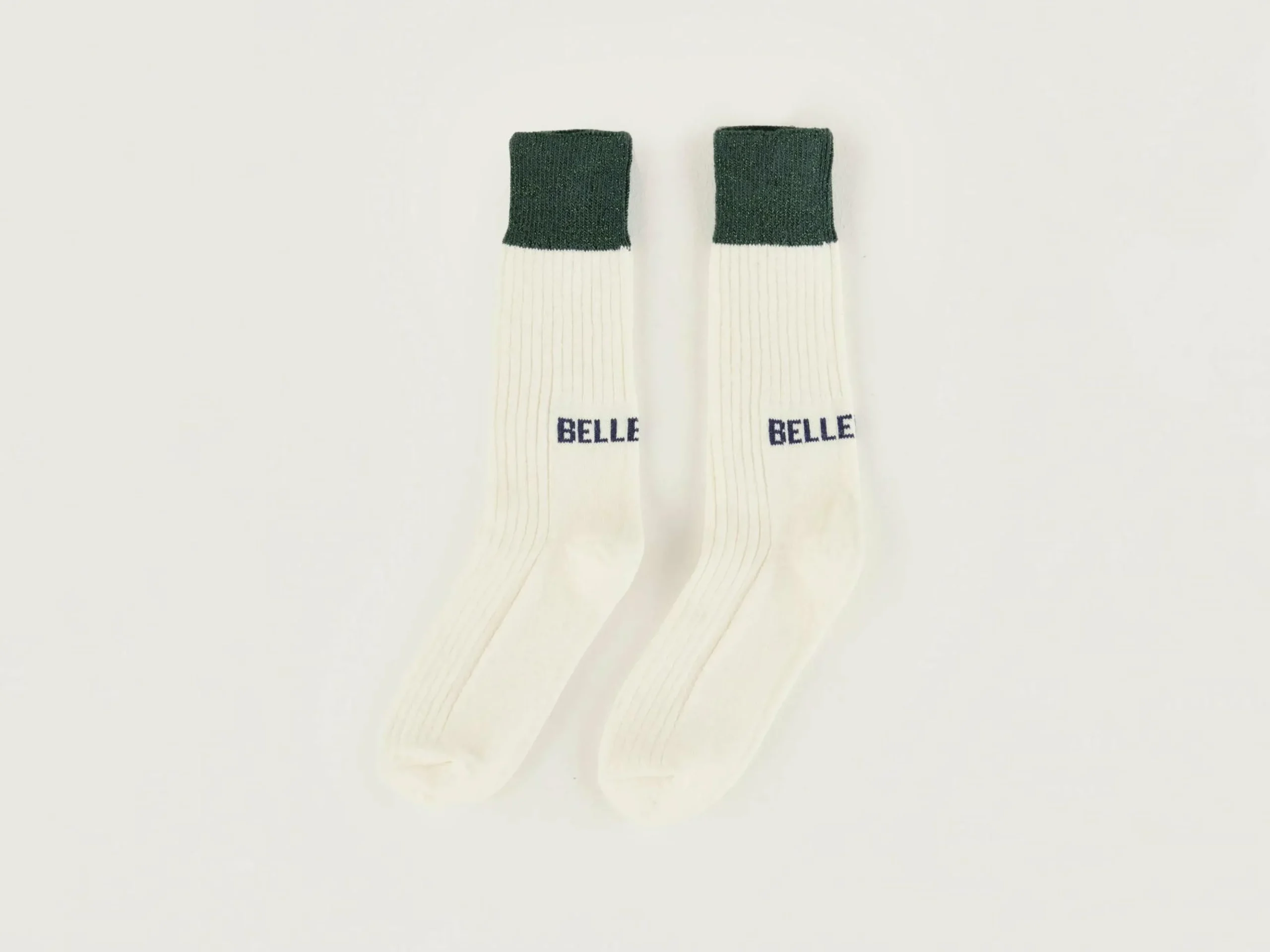 Chaussettes classiques en maille côtelée écrue signées Bellerose.