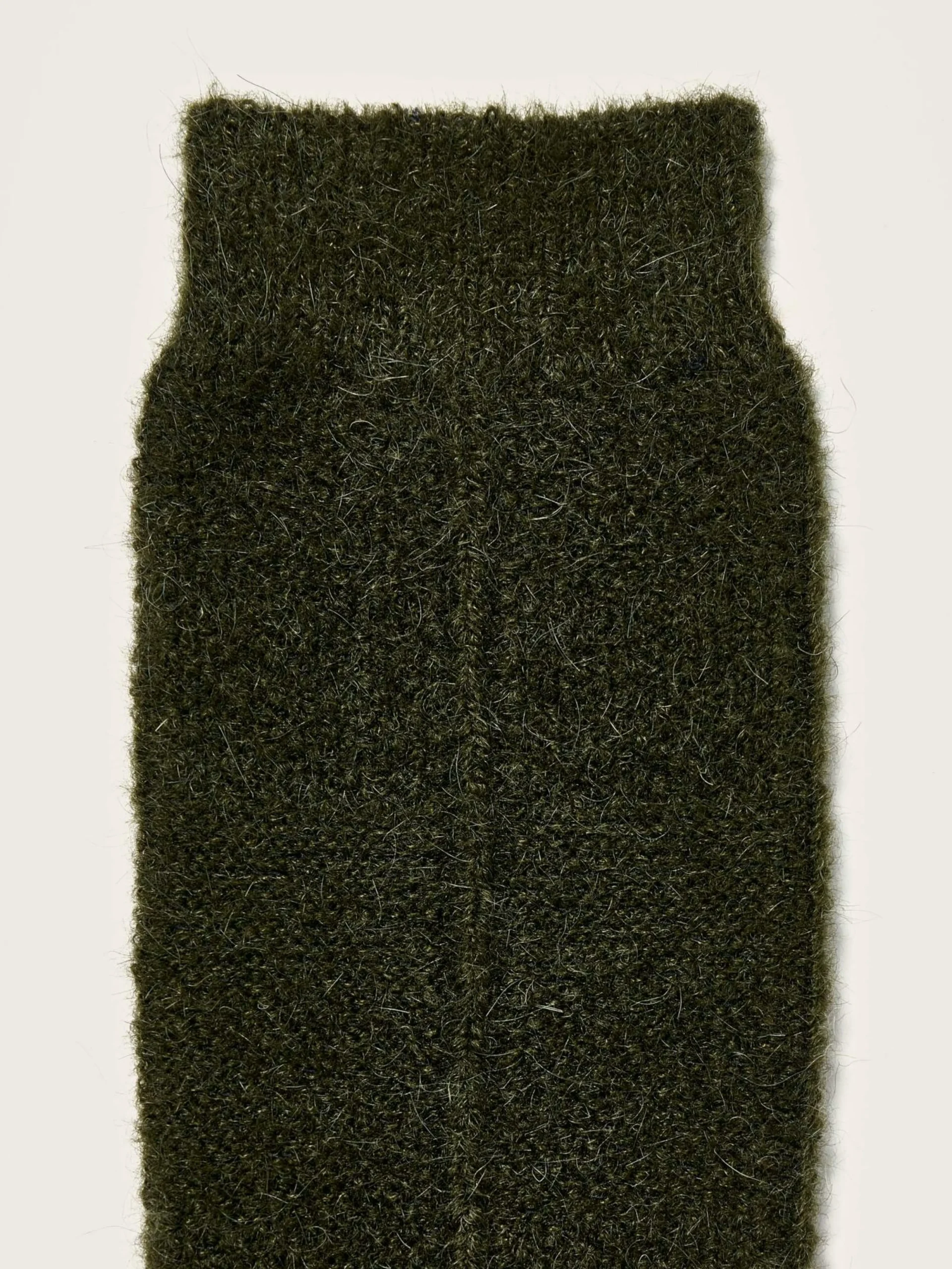 Chaussettes classiques de couleur verte tricotées en maille fantaisie avec motif à carreaux.