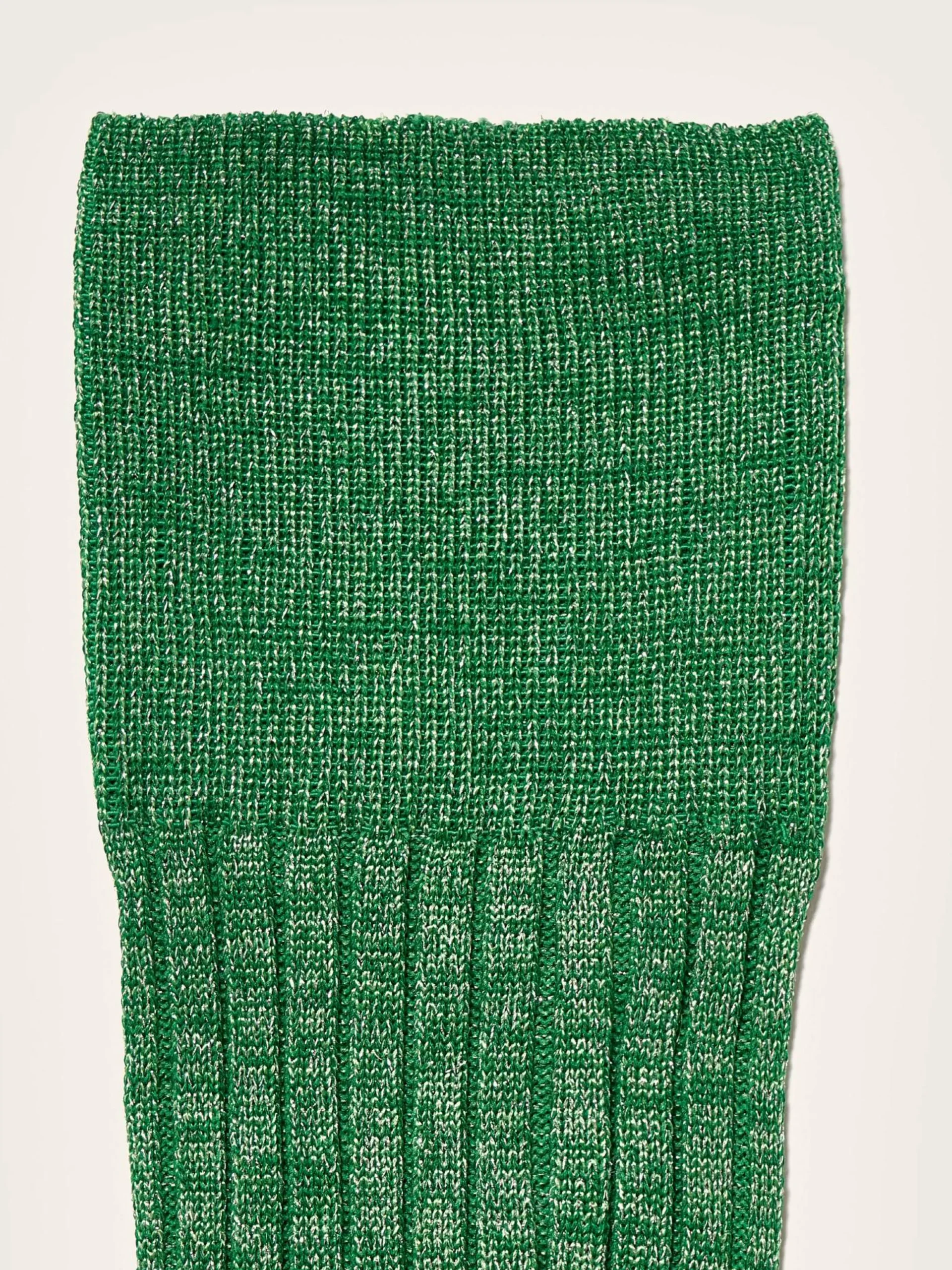 Chaussettes montantes en maille côtelée couleur vert chlorophyle et fil lurex.