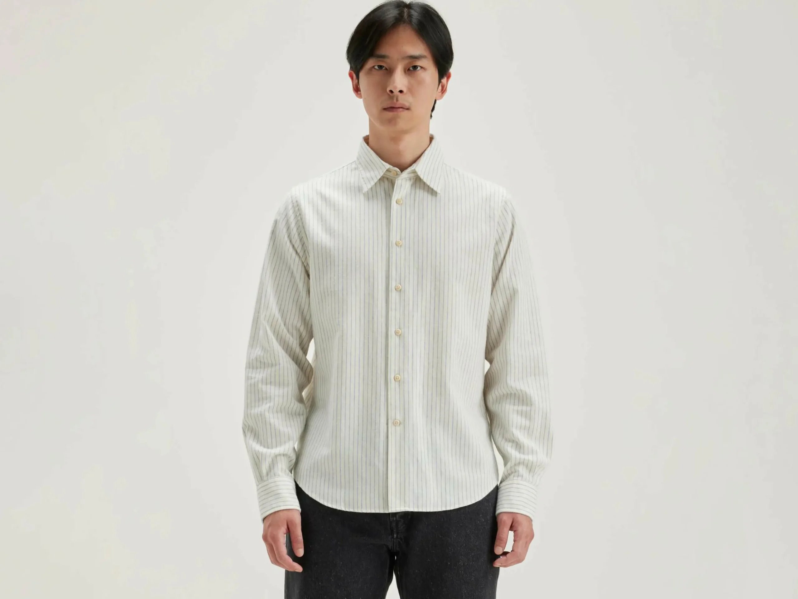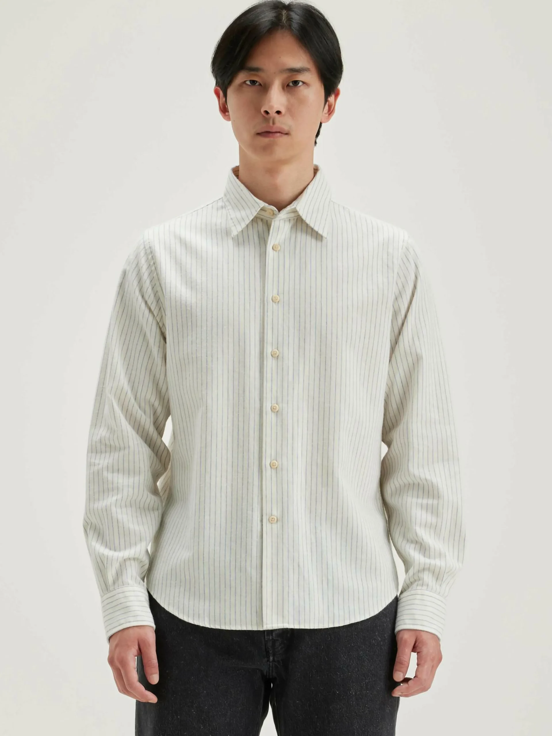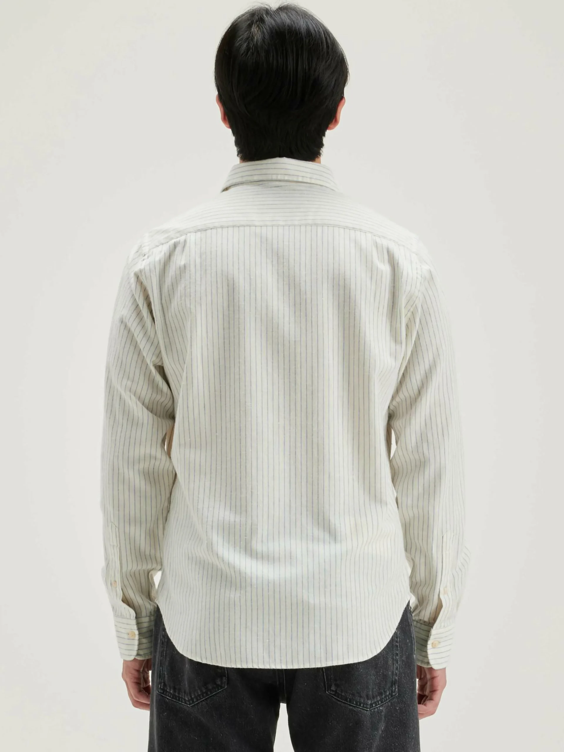 Chemise en popeline de coton rayée, coupe classique.