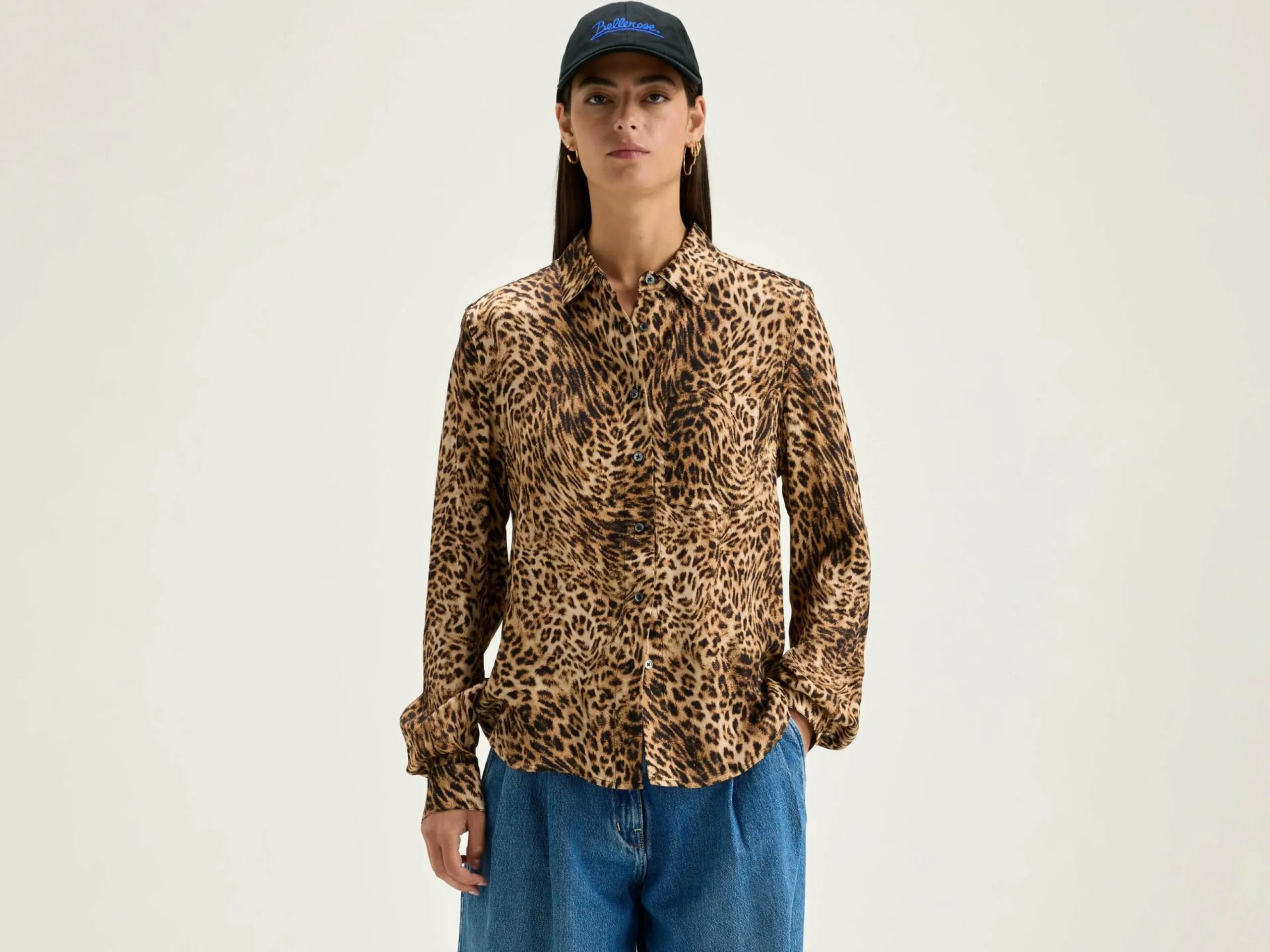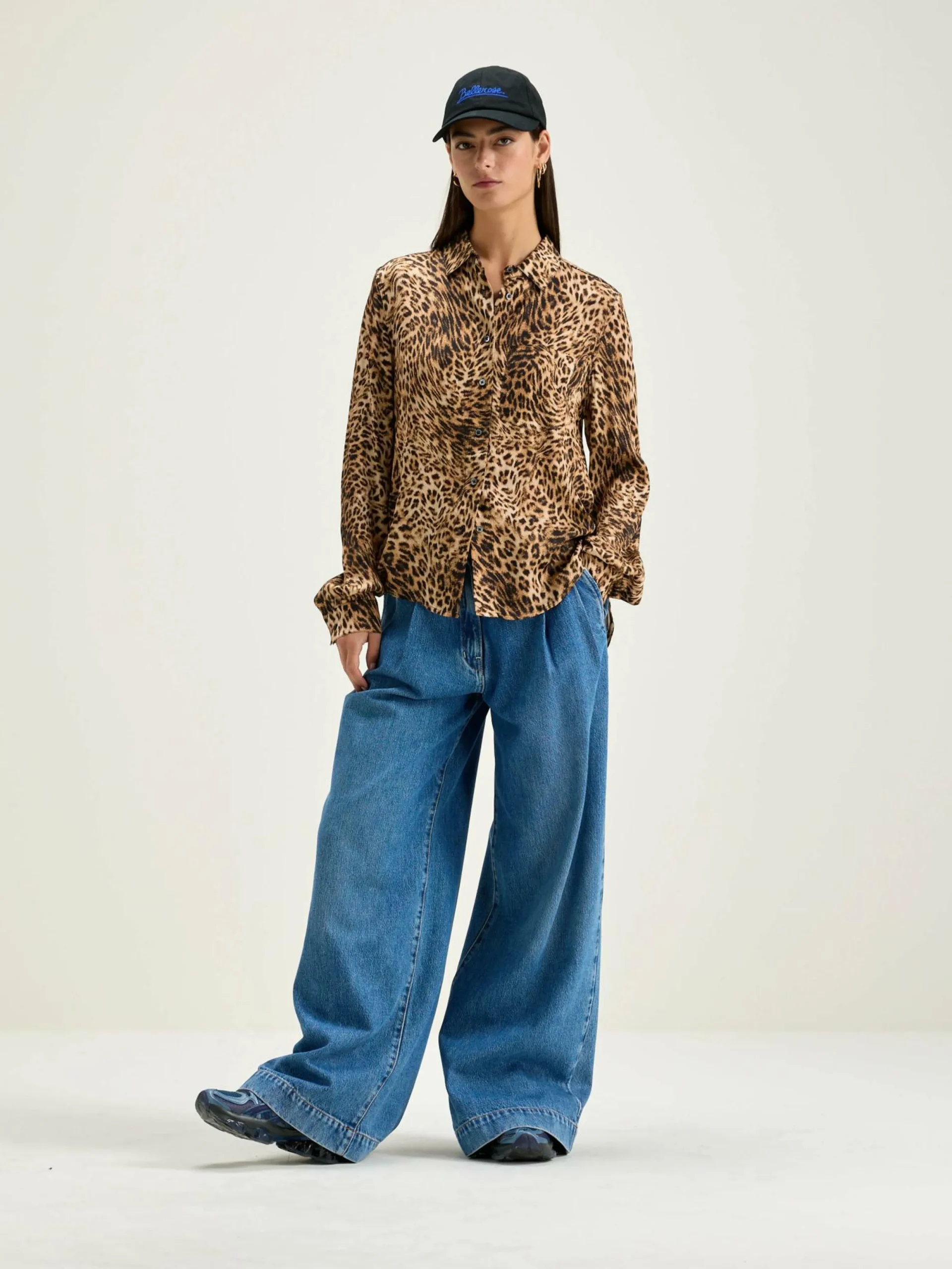 Chemise à coupe longue et droite en viscose imprimée léopard.