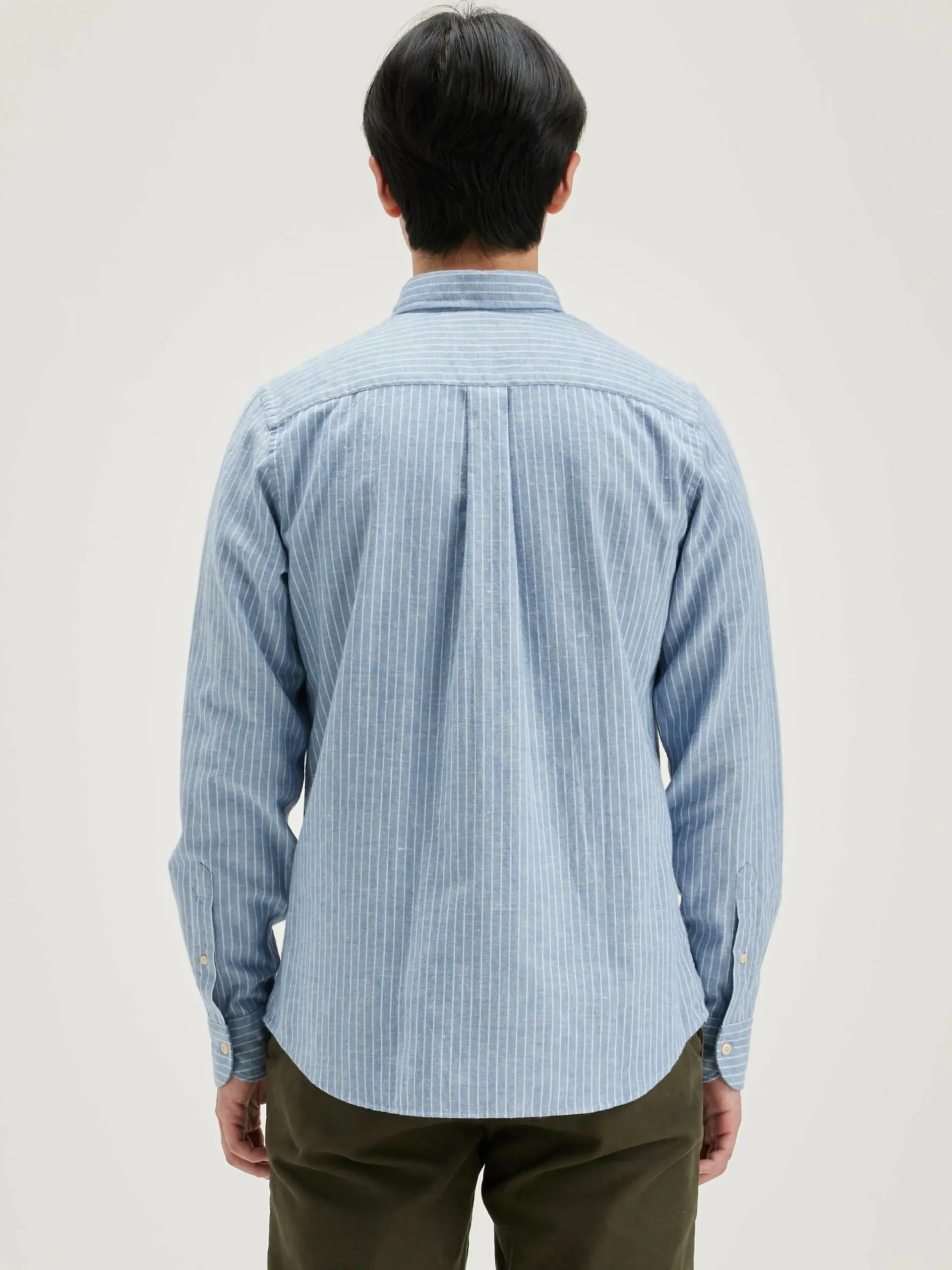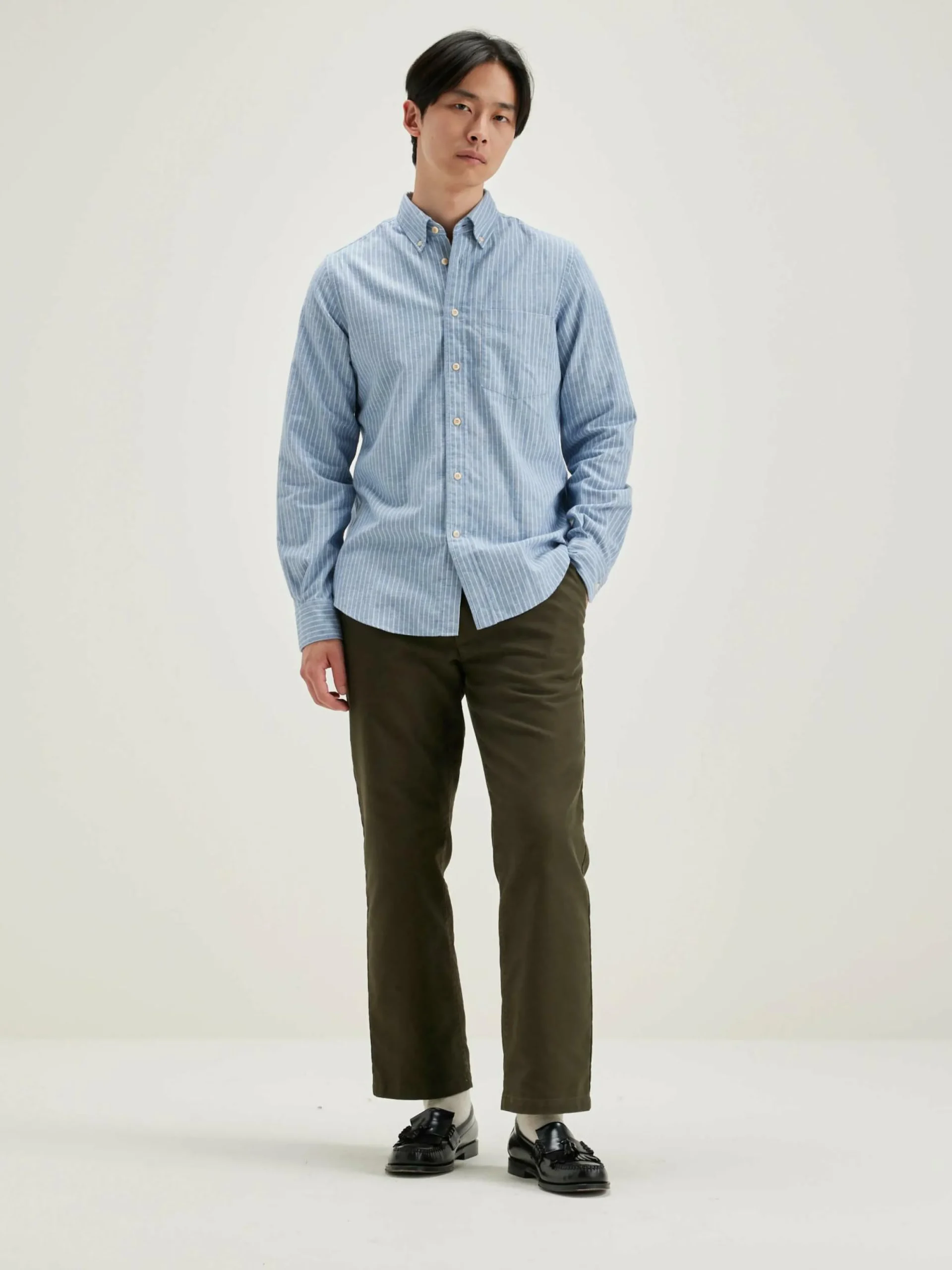 Chemise en popeline de coton rayée, coupe slim et col boutonné.