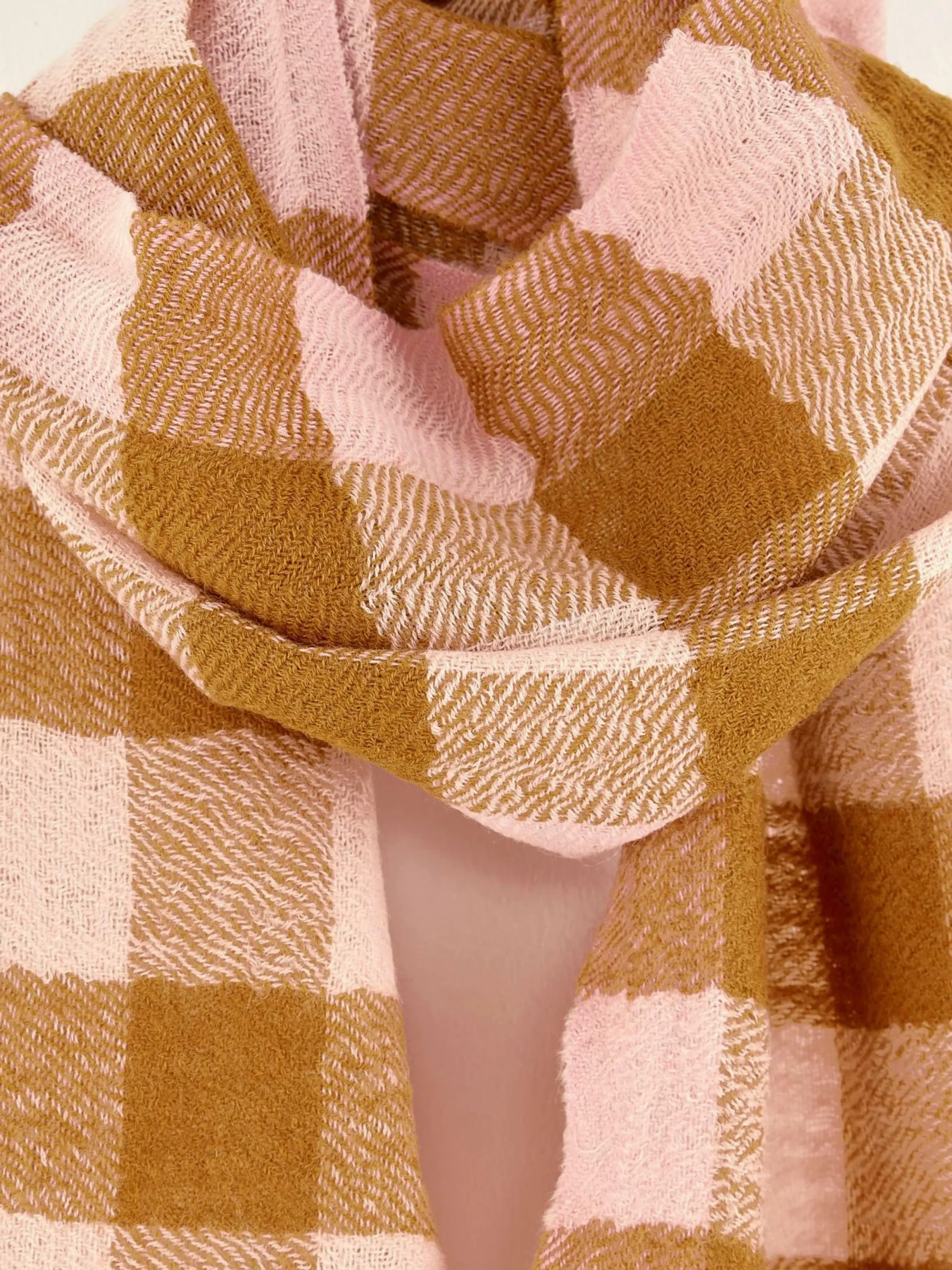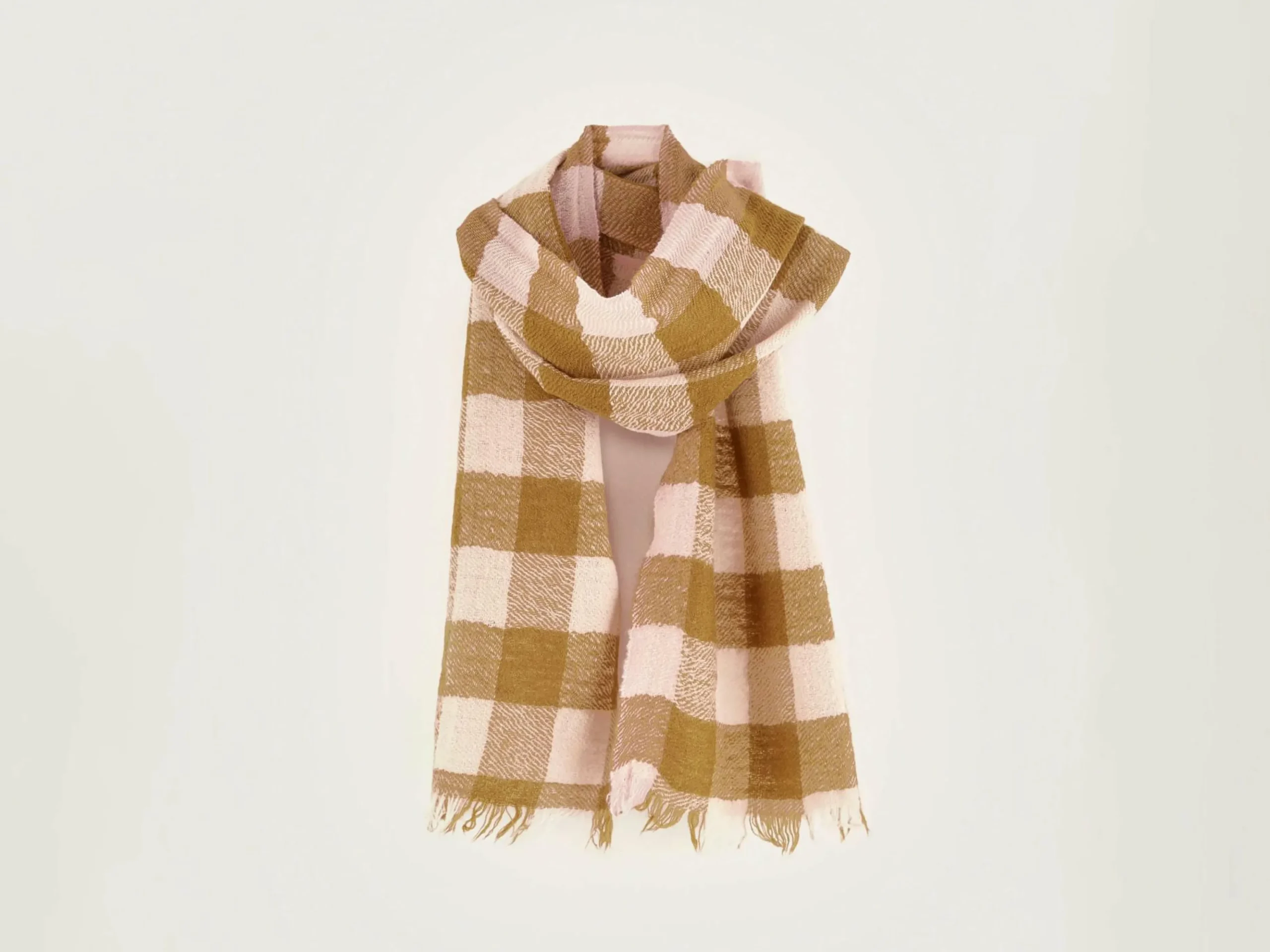Écharpe classique en laine à carreaux beiges.