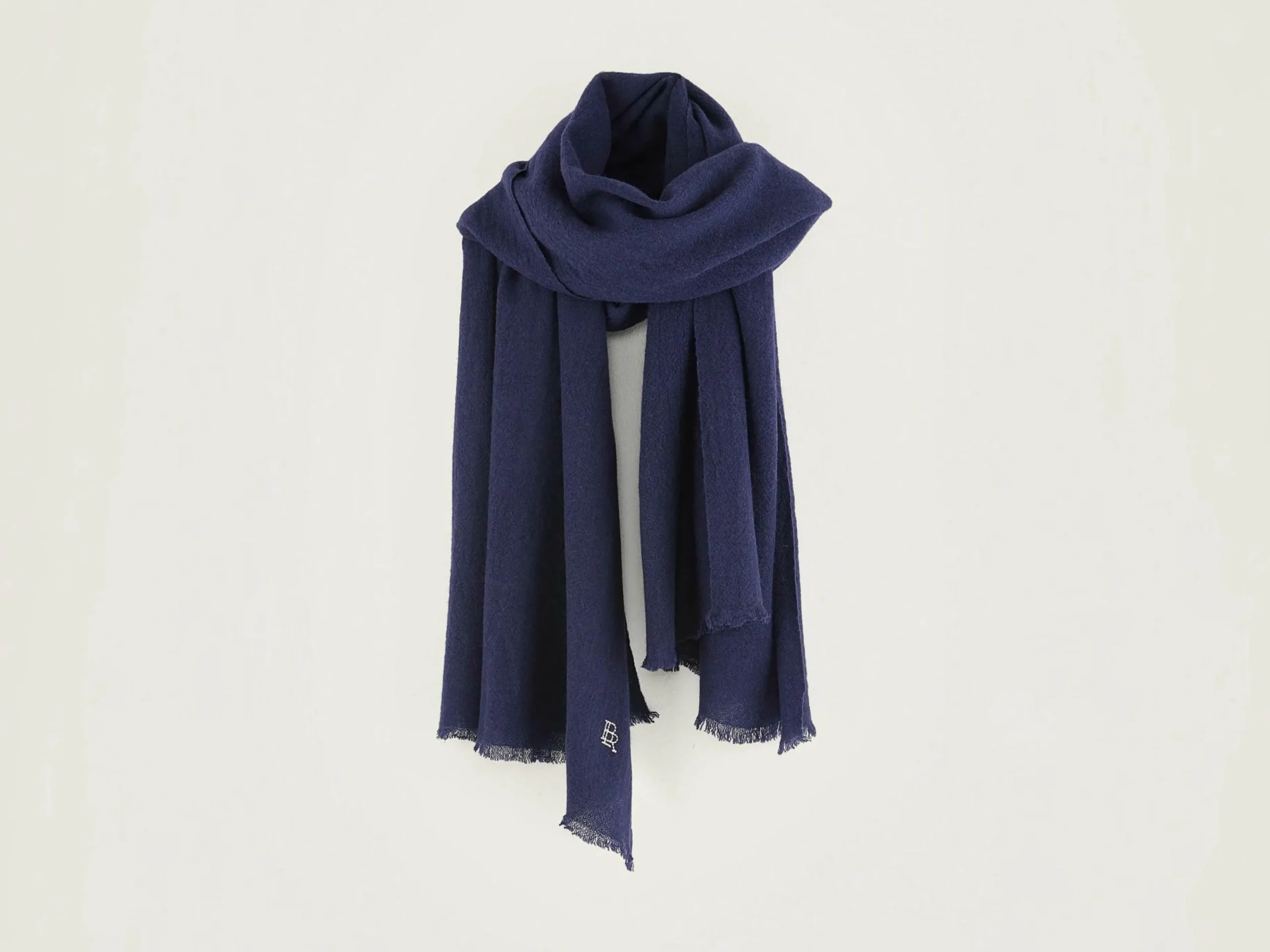 Écharpe bleu marine, offrant à la fois chaleur et style pour les journées fraîches.