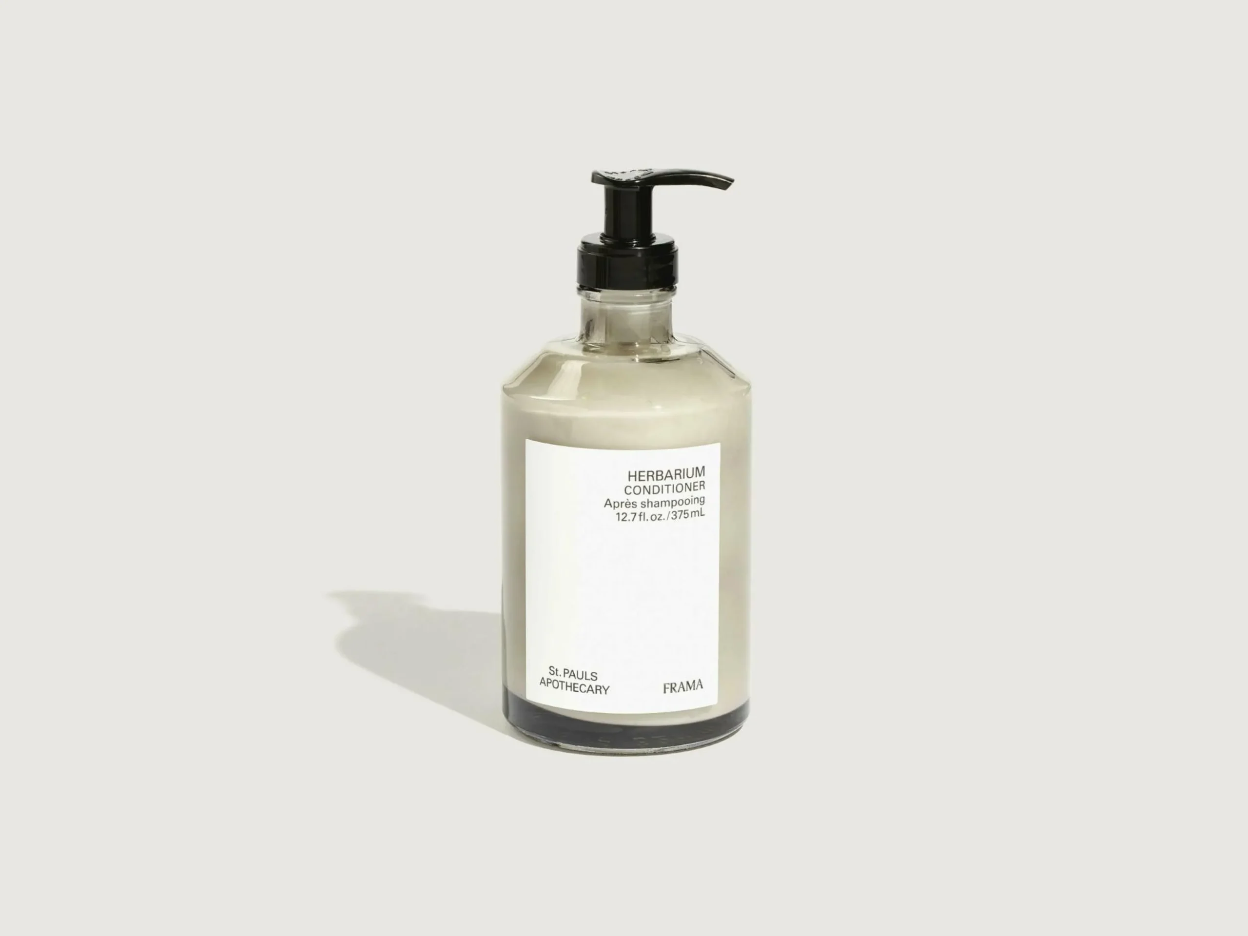 The gender-neutral Frama Herbarium Conditioner helps soften and detangle hair while delivering conditioning nutrients deep into the hair follicle. Its natural formula is suitable for daily use on all hair types.Application: Apply a small amount to clean, wet hair, focusing on the ends. Leave it on for three minutes. Rinse clean and gently towel dry. As a styling aid, use on wet or dry hair to smooth, soften and tame frizzKeynotes: Cedarwood, Sandalwood, Ylang YlangAroma: Citrus, Floral, and WoodyMaterial: Comes in a reusable Italian glass bottle with a pump