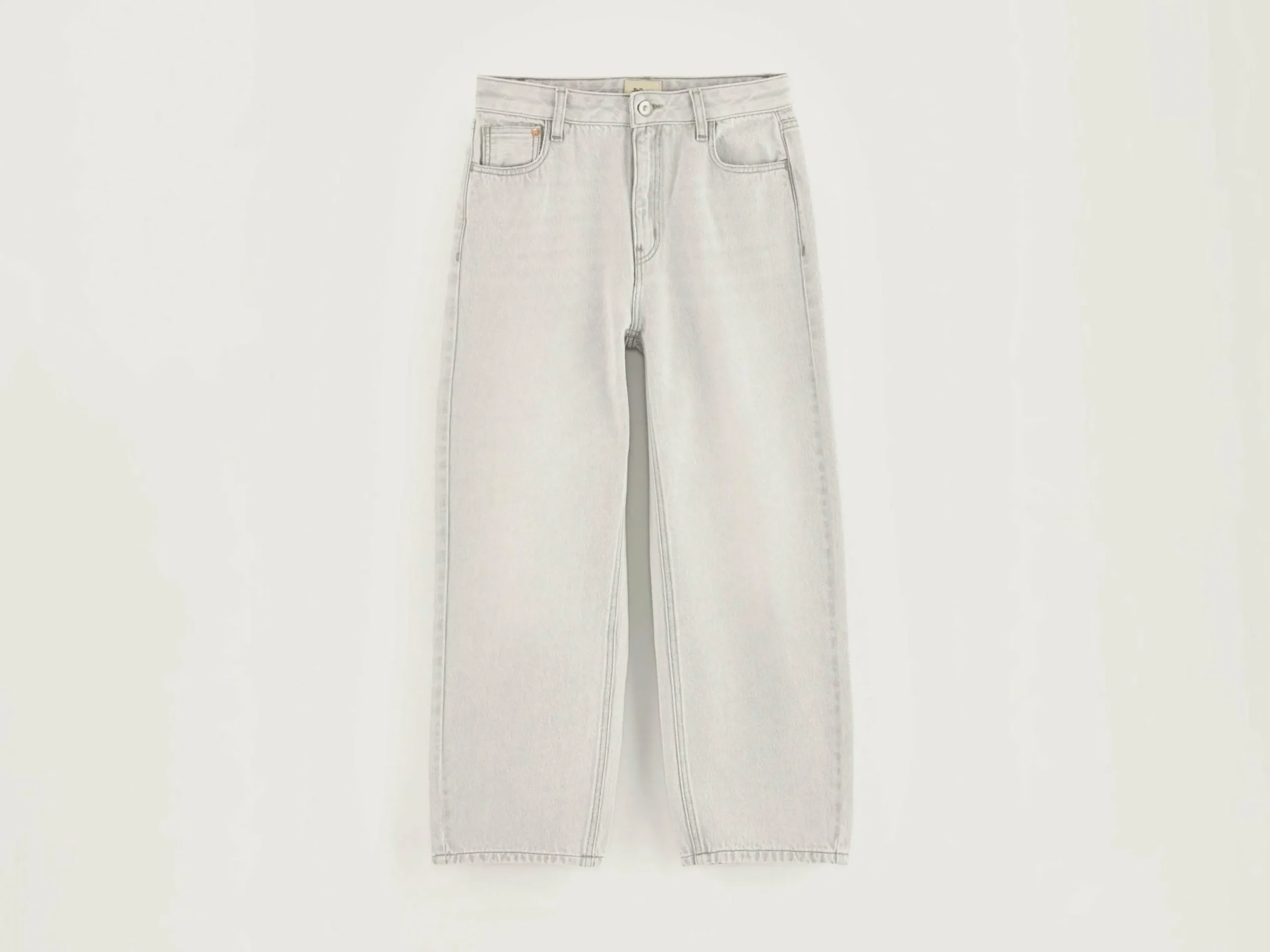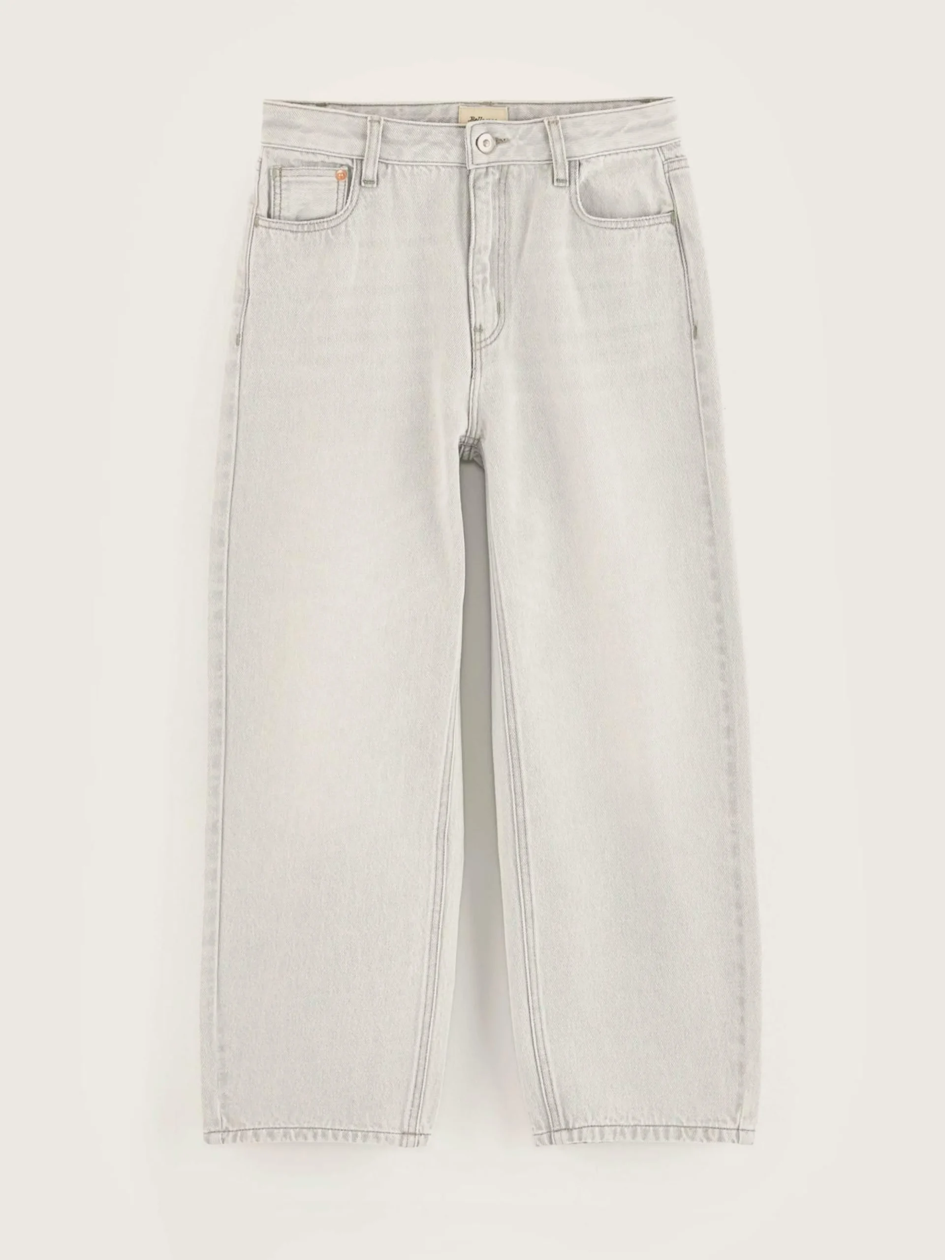 Jeans décontracté taille basse, couleur gris clair.