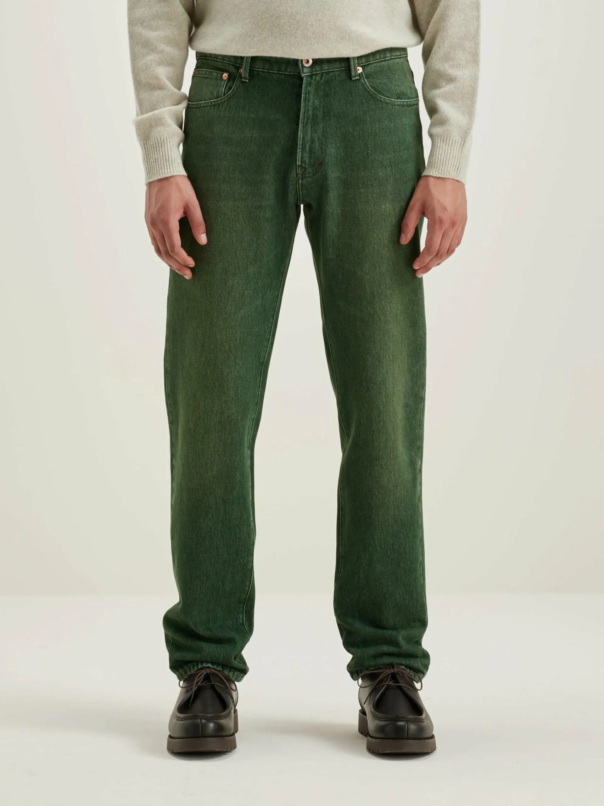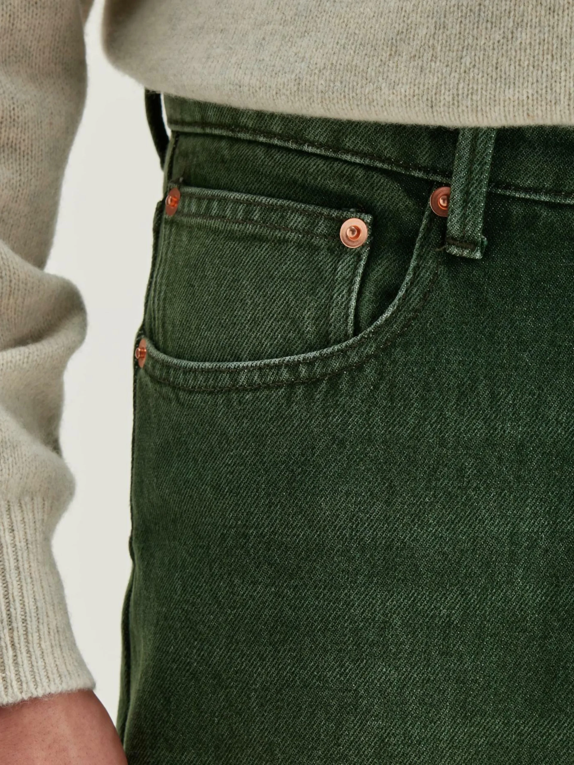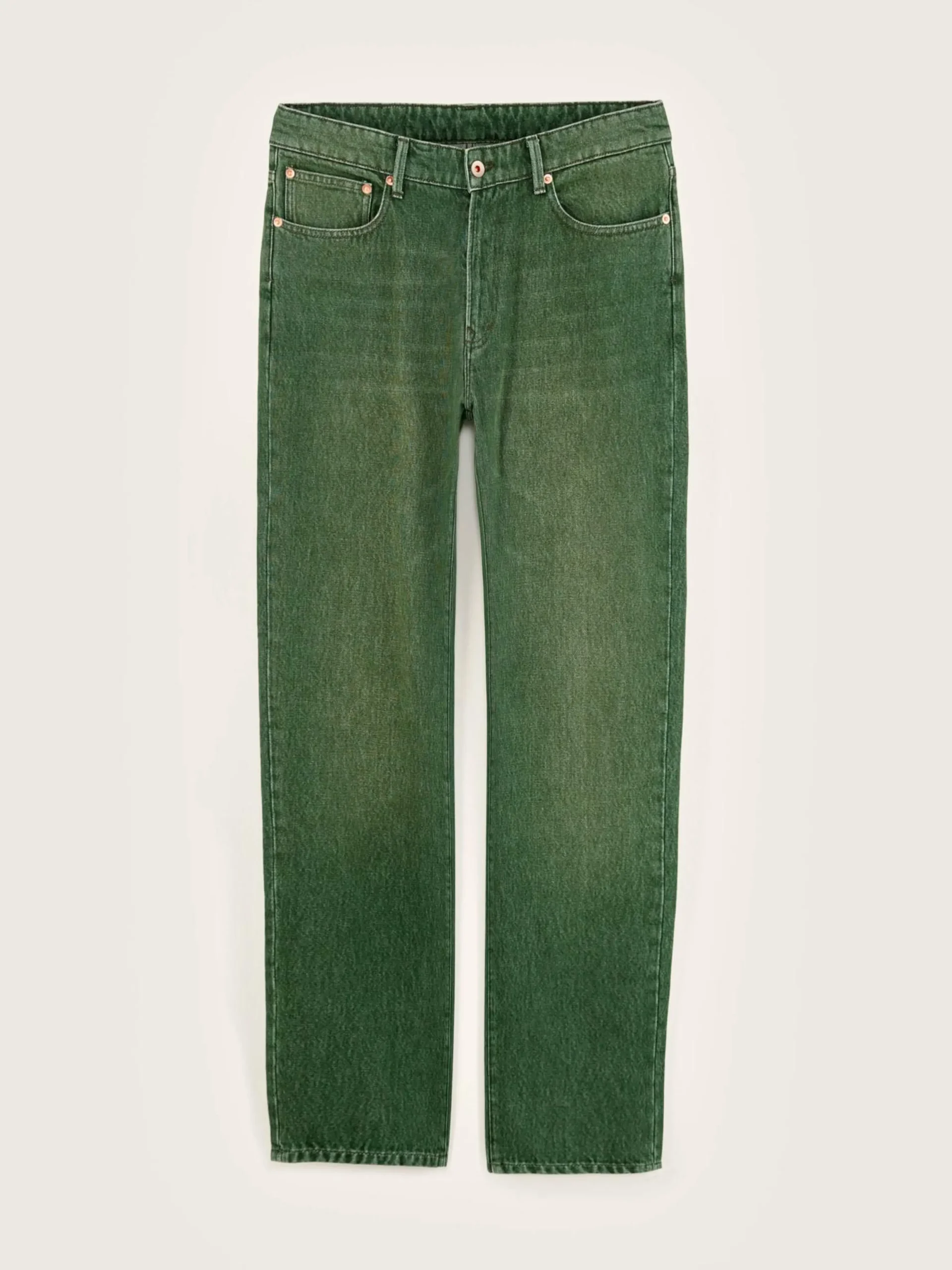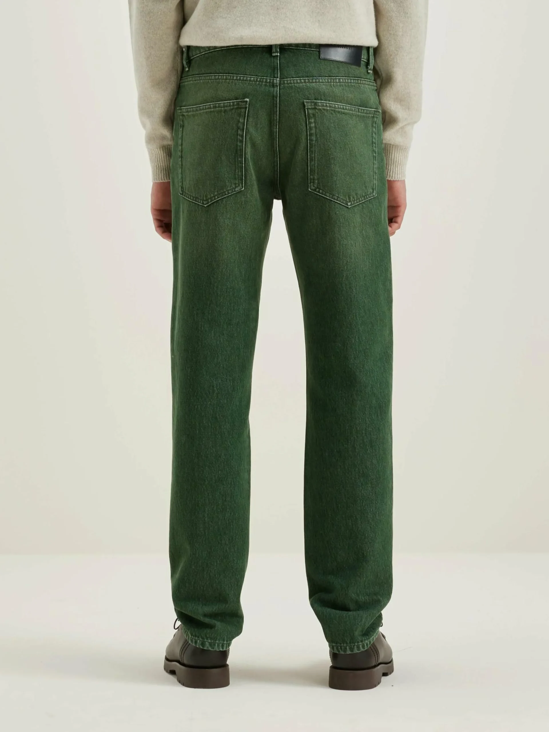 Jean coupe régular, taille normale et jambes droites, en denim de coton used green.