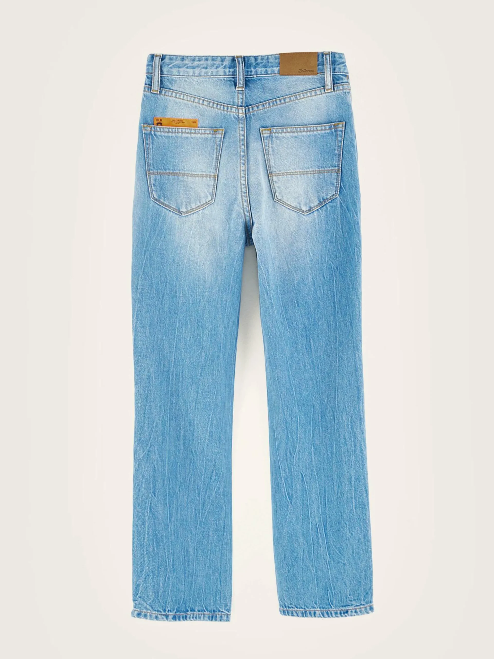 Jean décontracté à jambes larges en denim de coton vintage light blue.
