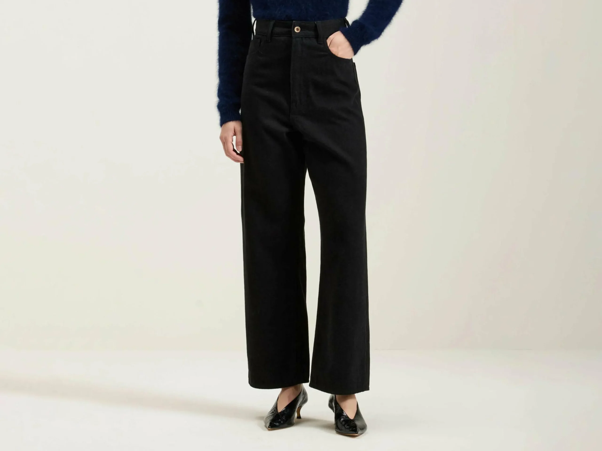 - Denim de poids moyen, sans élasticité