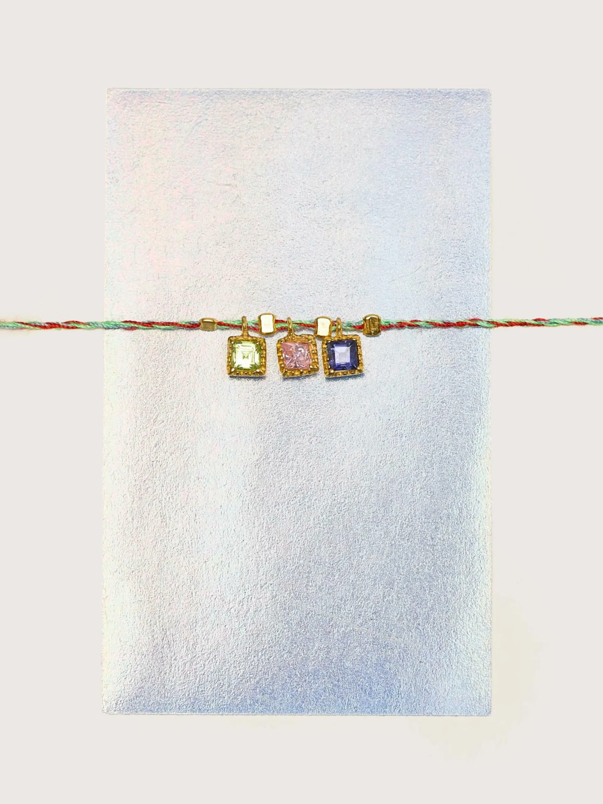 Le bracelet Sage est un tressage ajustable fait à la main d’un fil fin orné de charms à facettes en tourmaline montés sur de l’argent plaqué or.