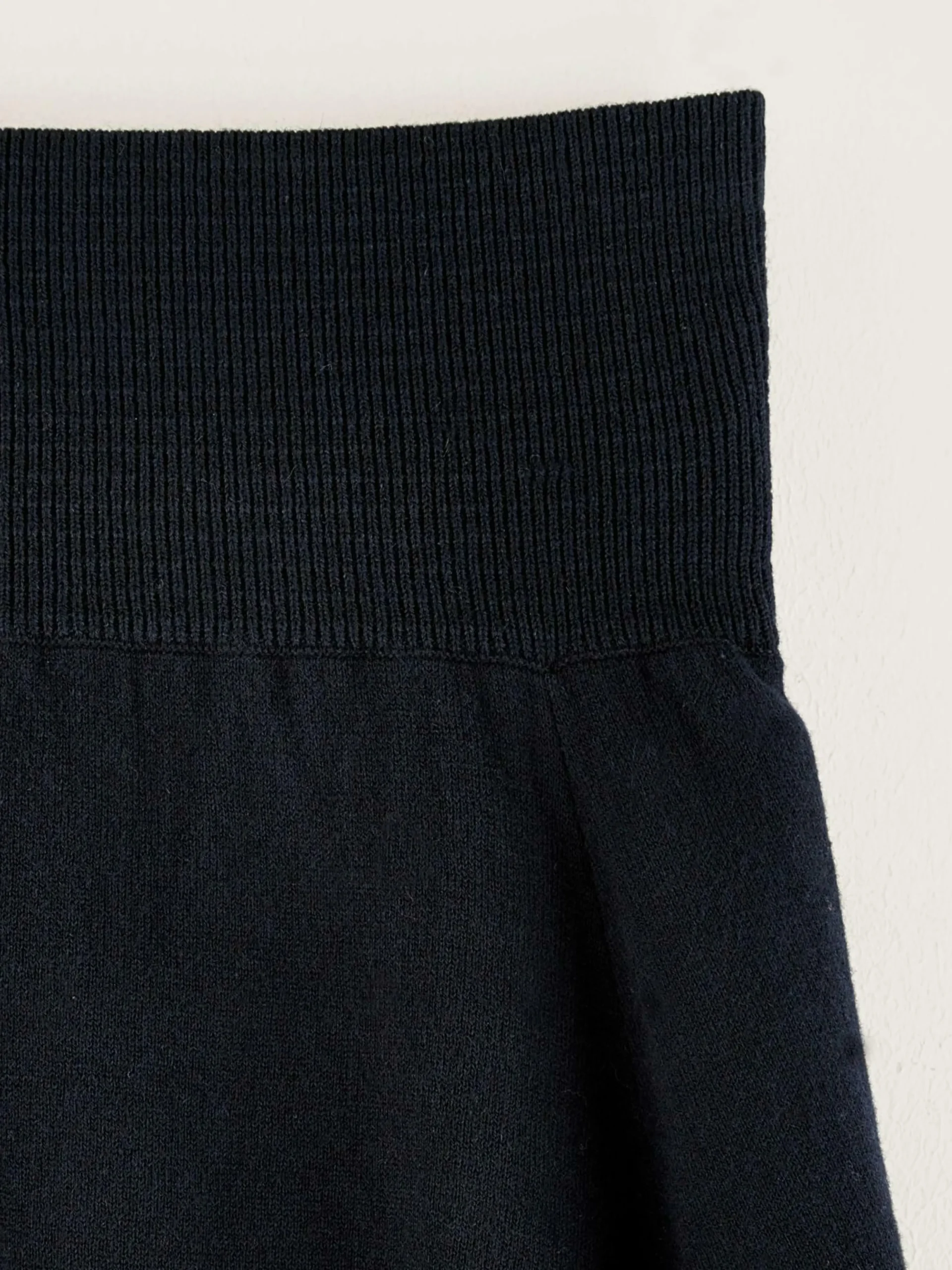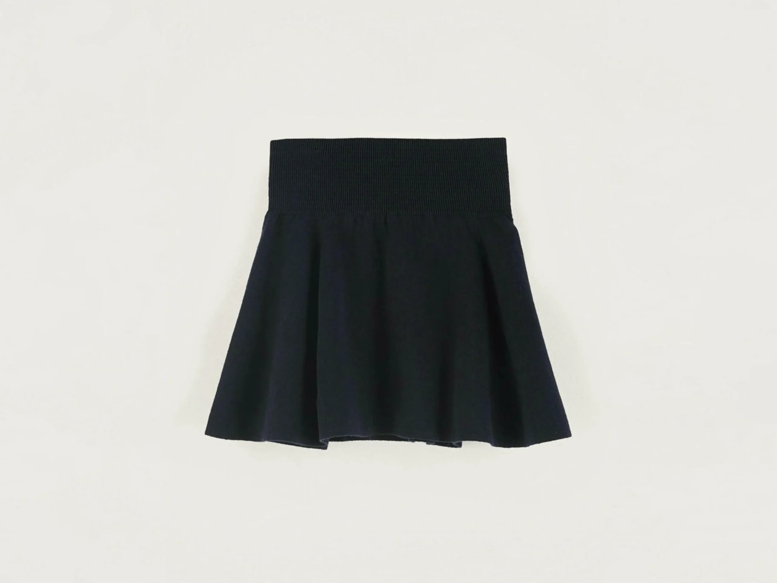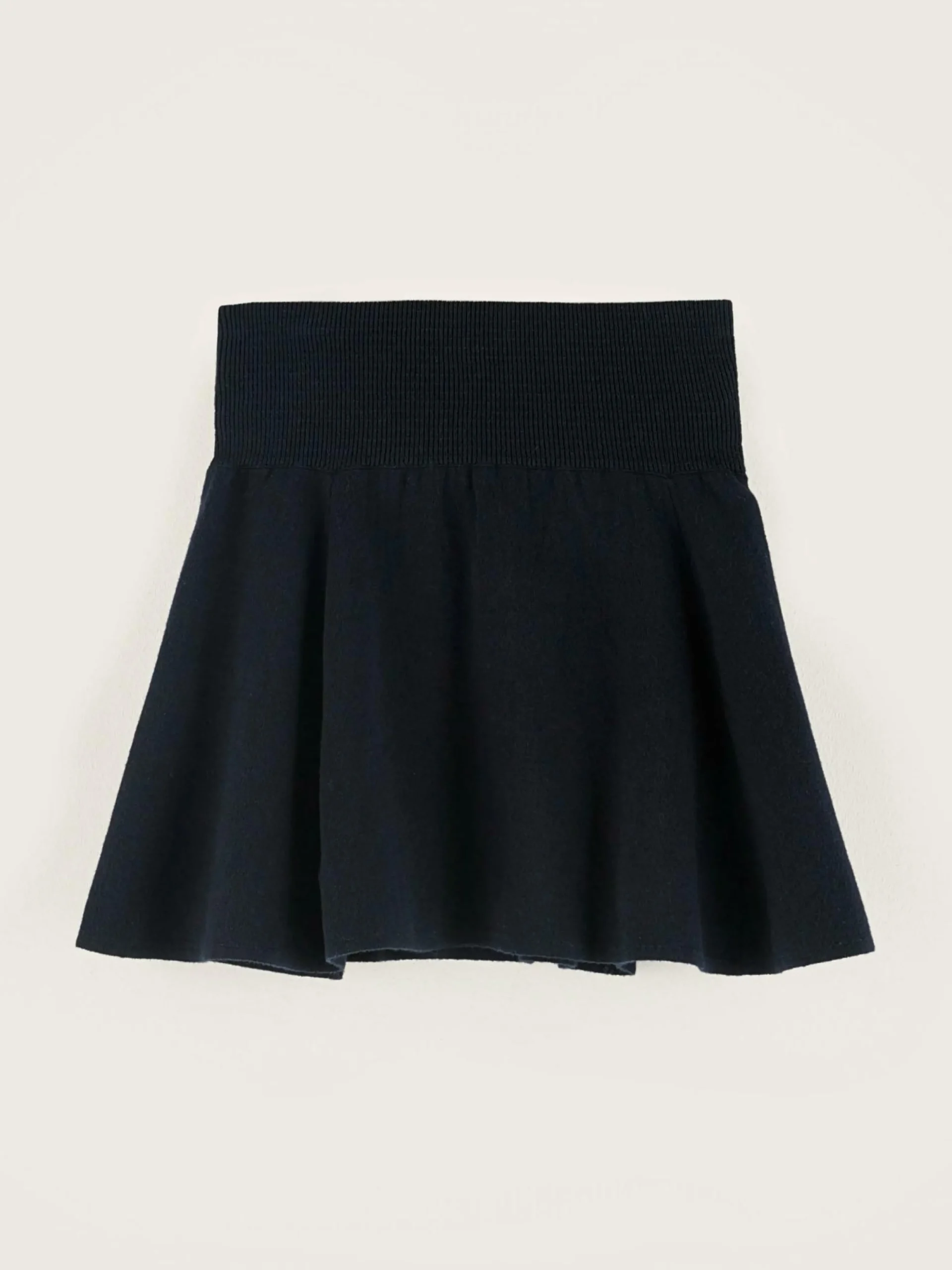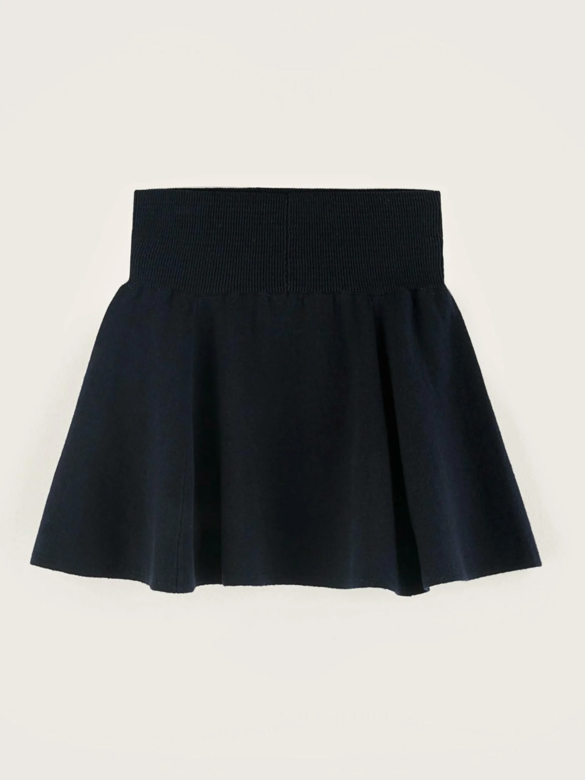 Minijupe à ceinture élastique largeen jersey bleu marine.