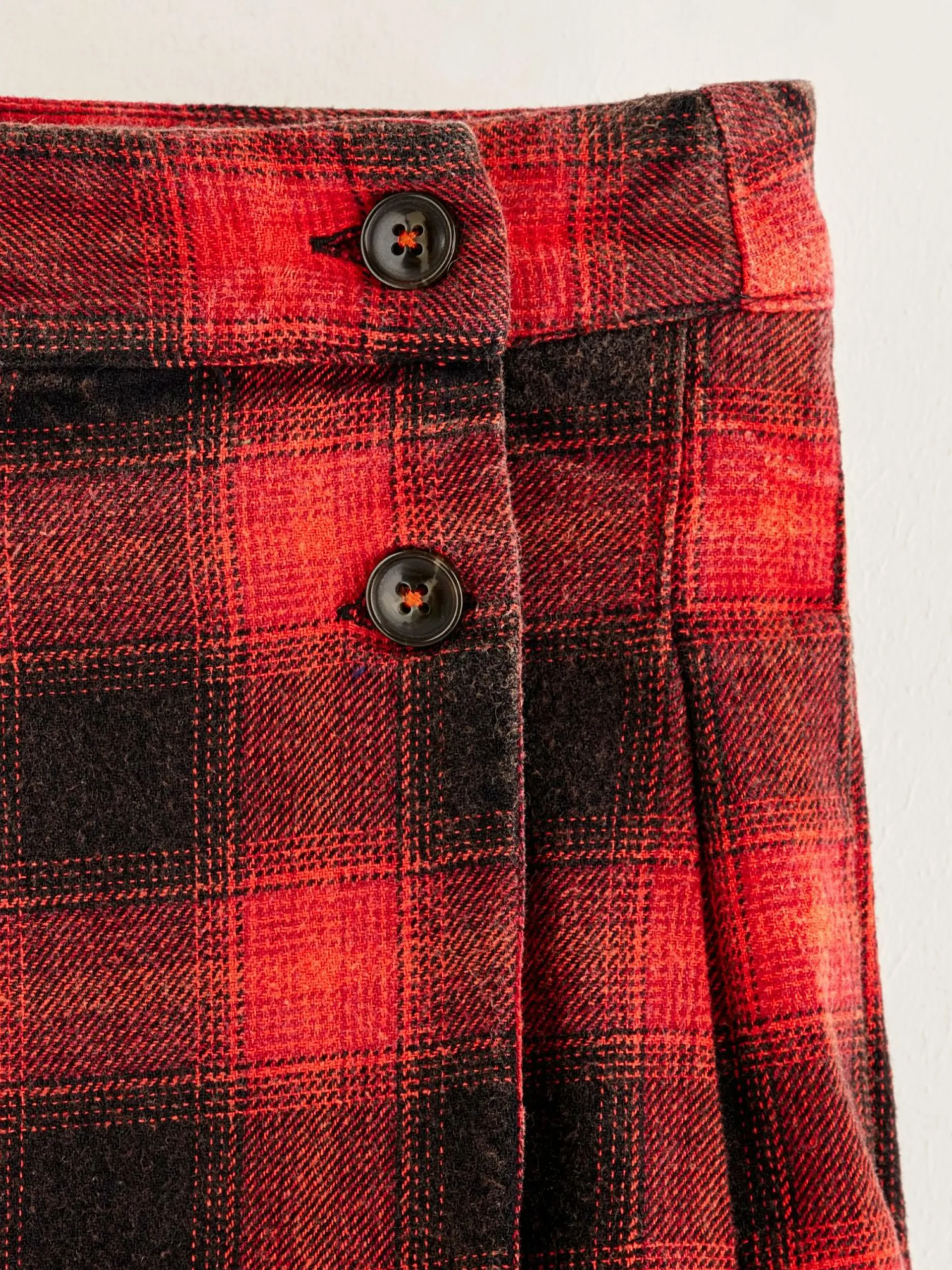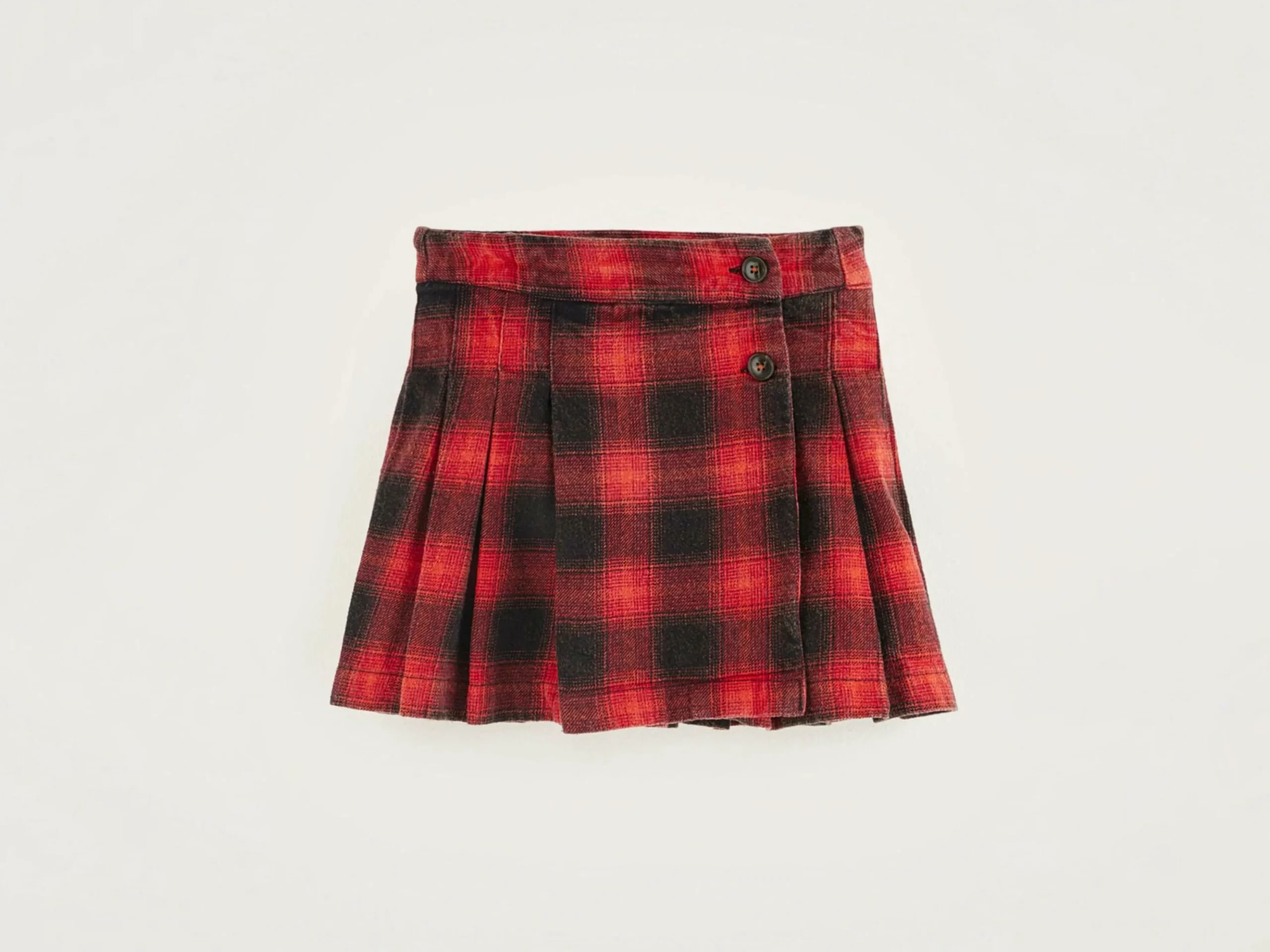 Minijupe forme portefeuille en tissu à carreaux délavés.