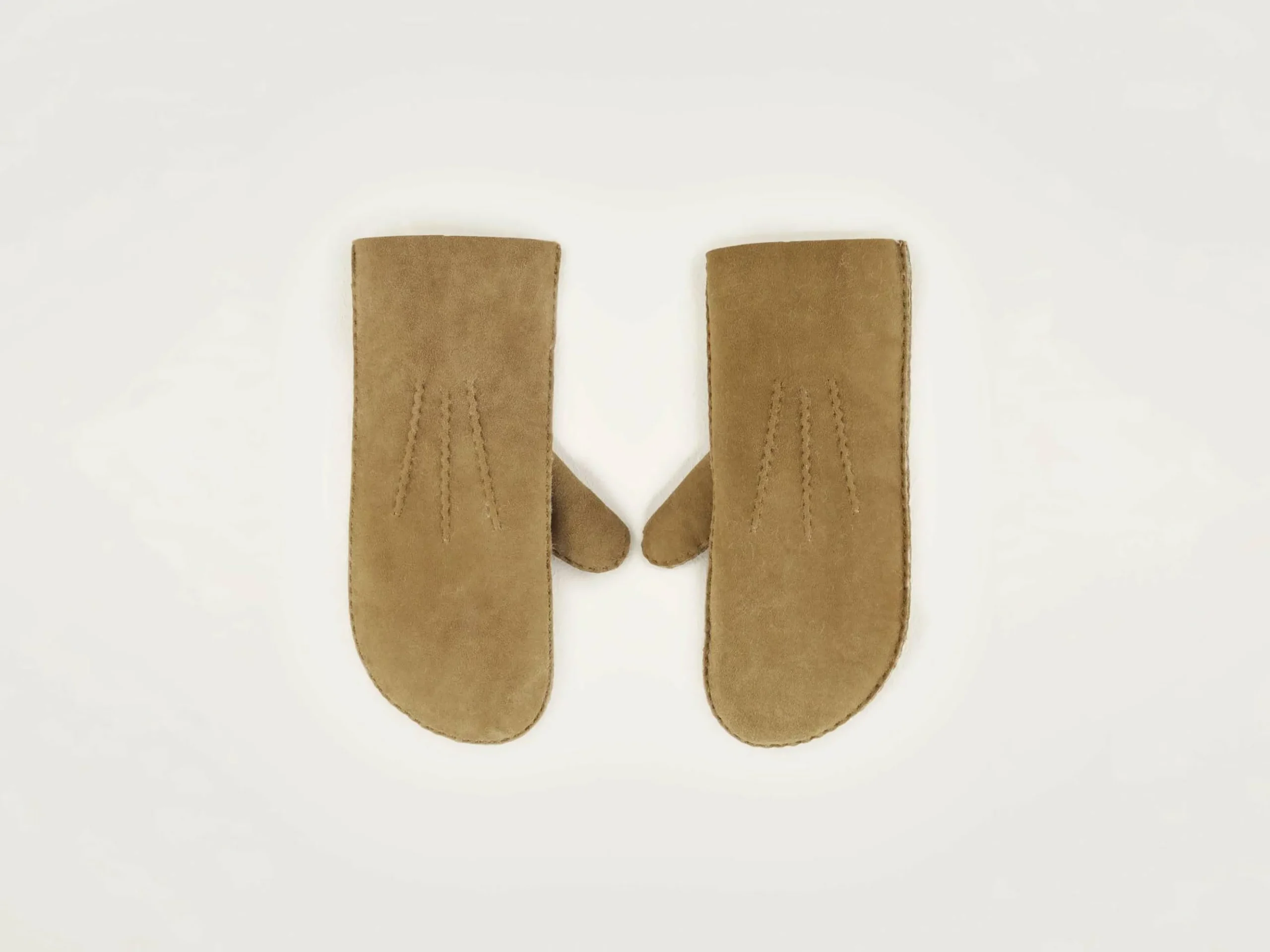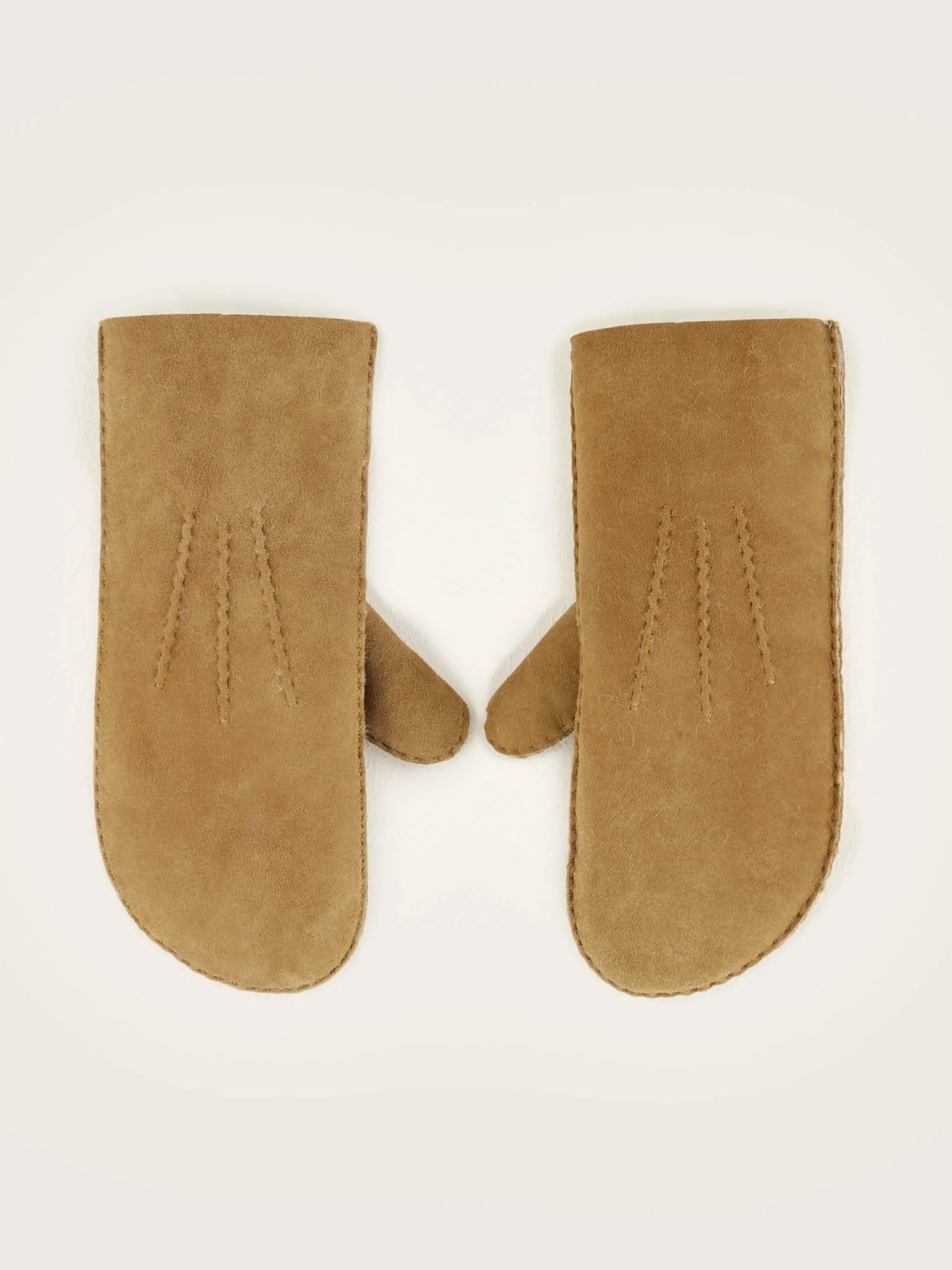 Moufles classiques en cuir de mouton cognac avec intérieur en laine.