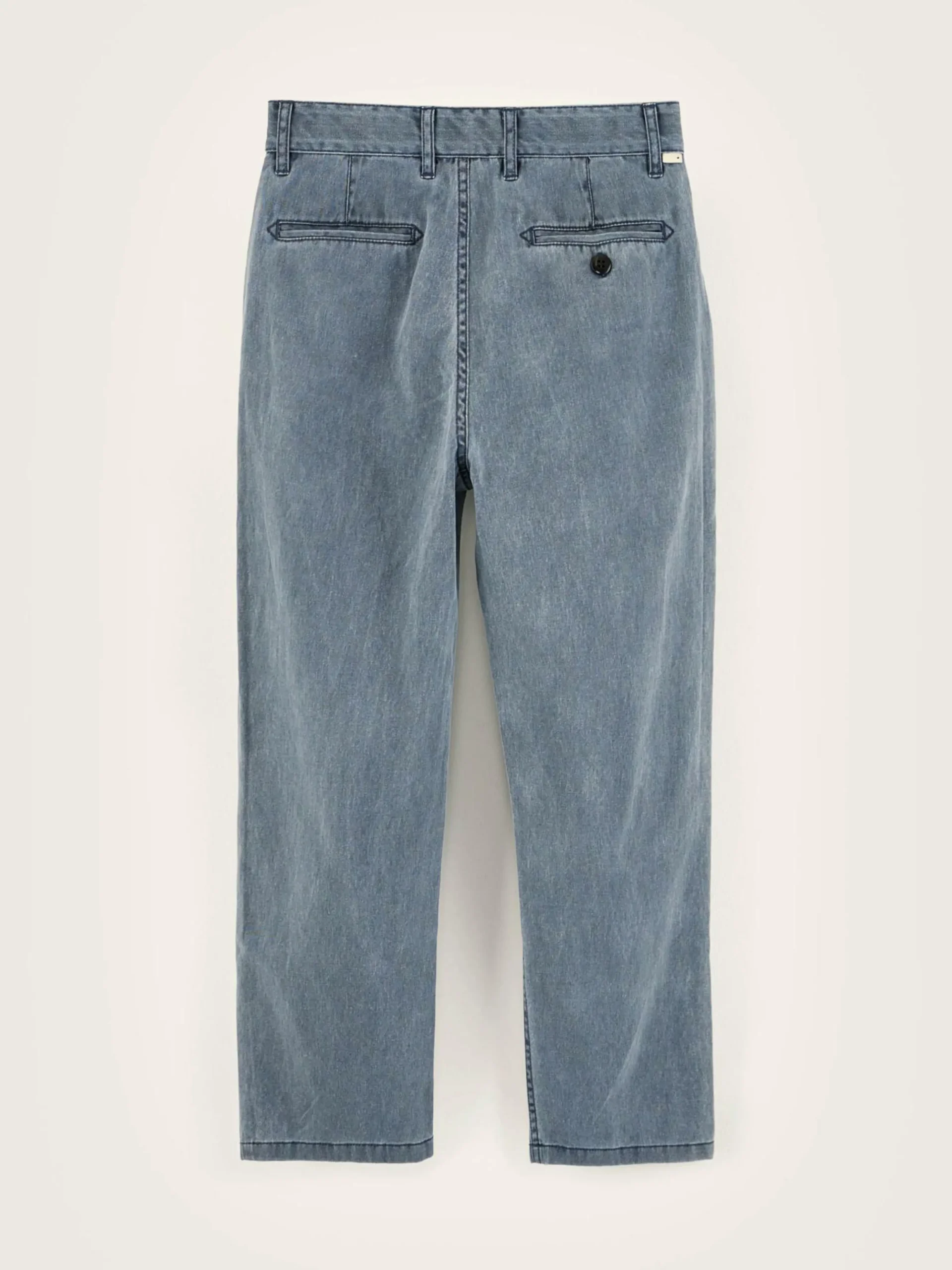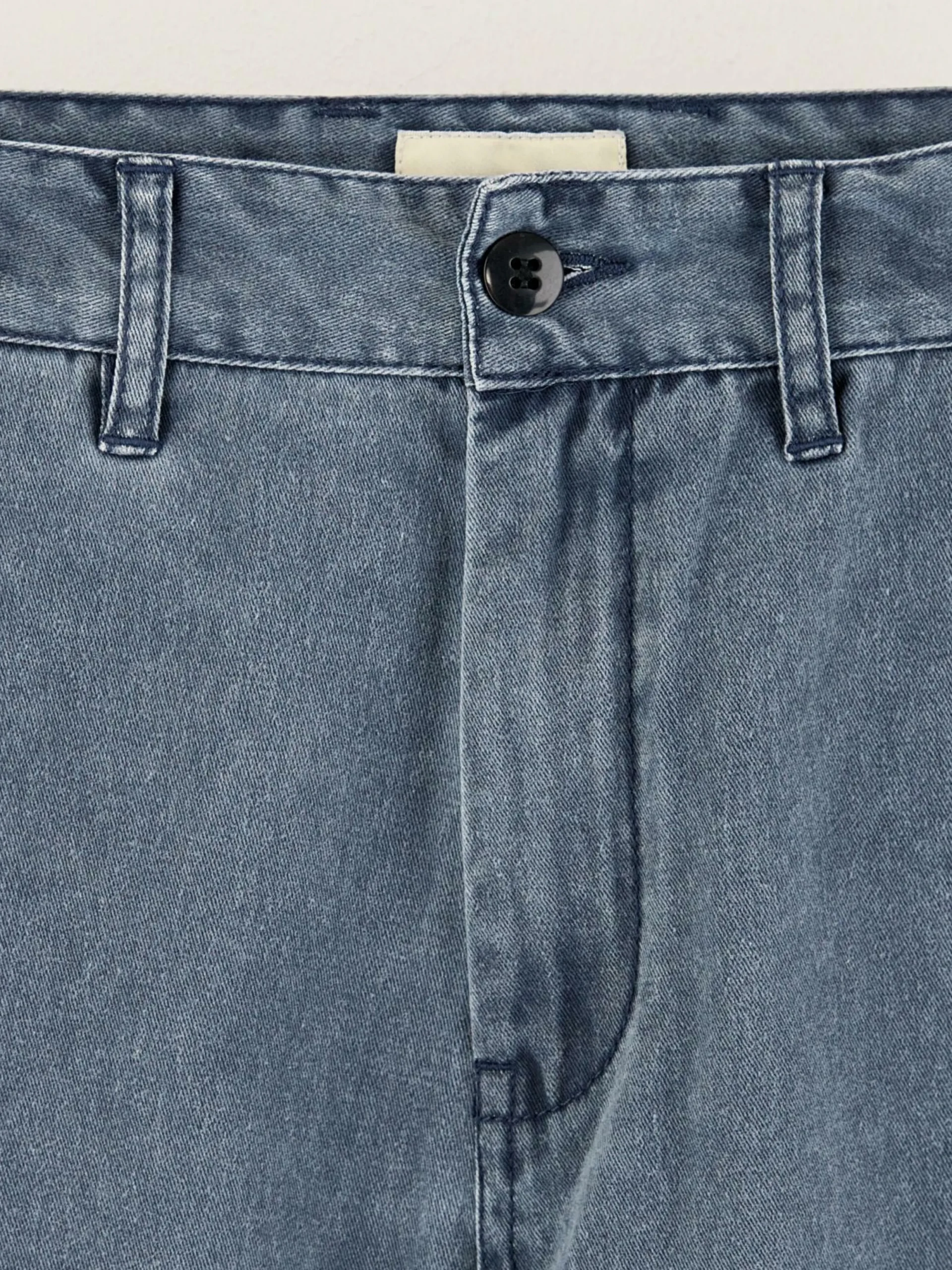 Pantalon classique à jambes larges en toile de coton couleur bleu encre.