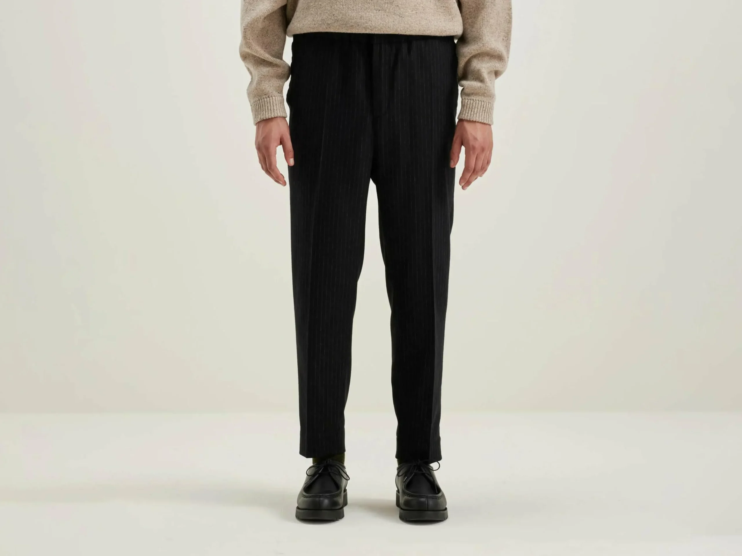 Pantalon décontracté, taille élastiquée et jambes larges et fuselées en tissu rayé.