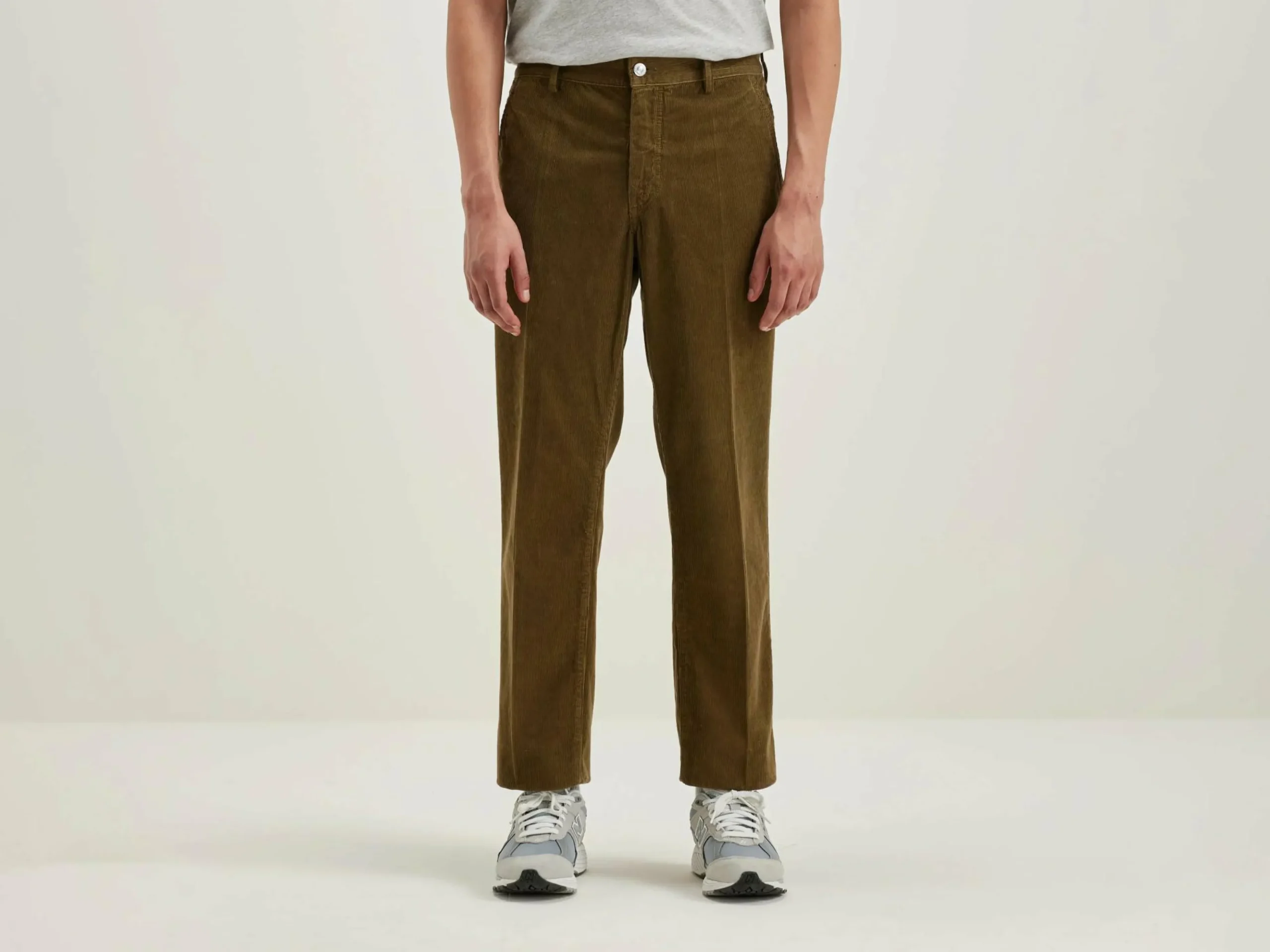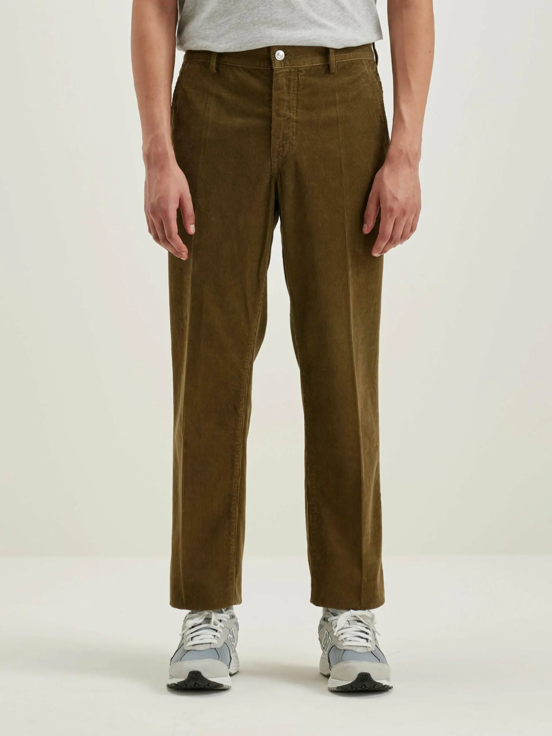 Pantalon coupe regular, jambes droites en velours de coton milleraie vert militaire.