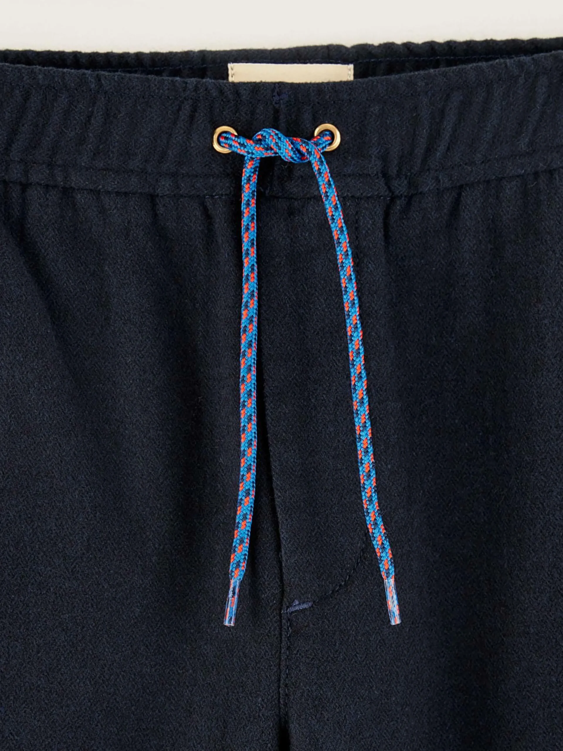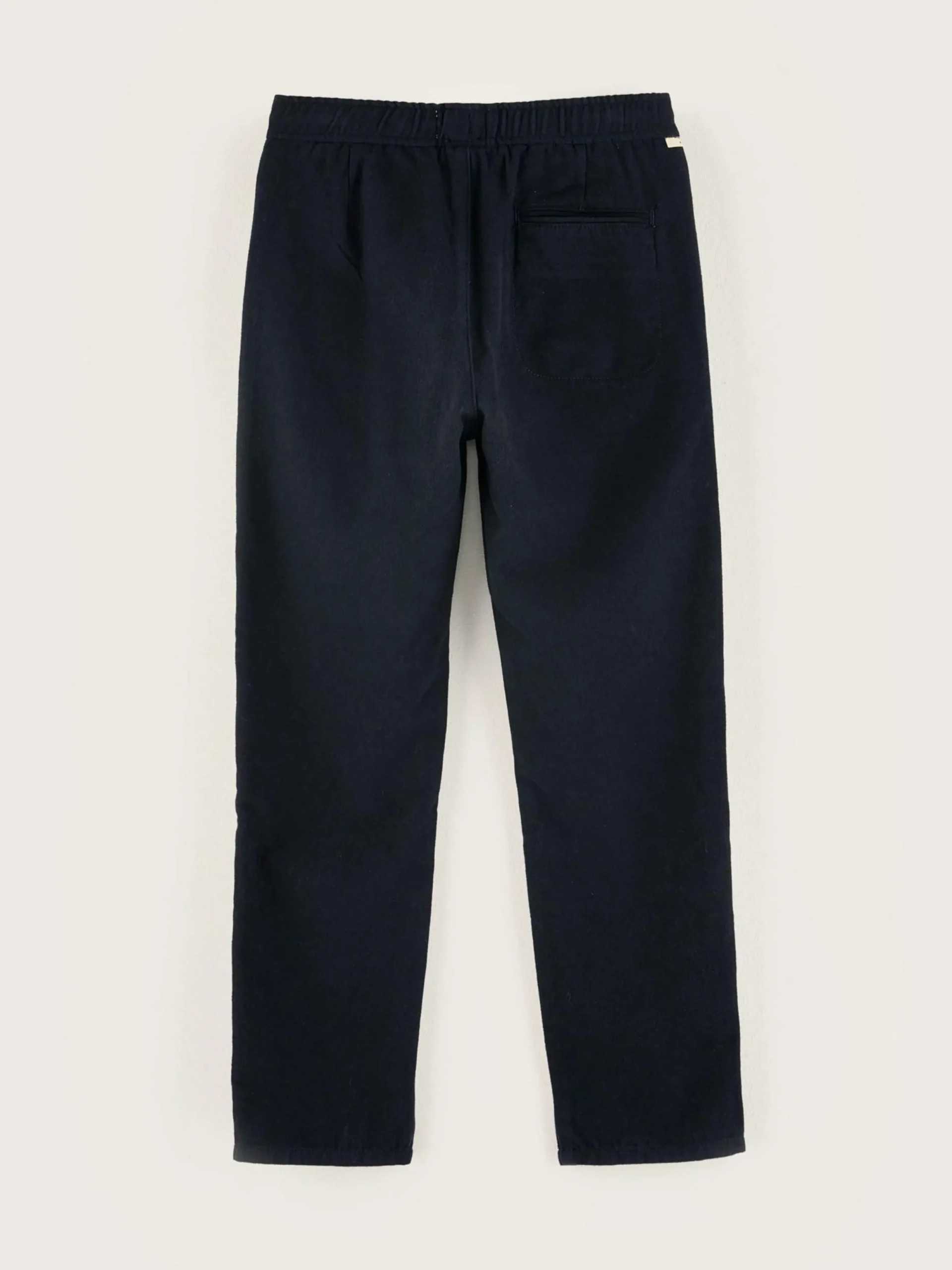 Pantalon décontracté et tapered avec cordon de serrage à la taille en toile bleu marine.