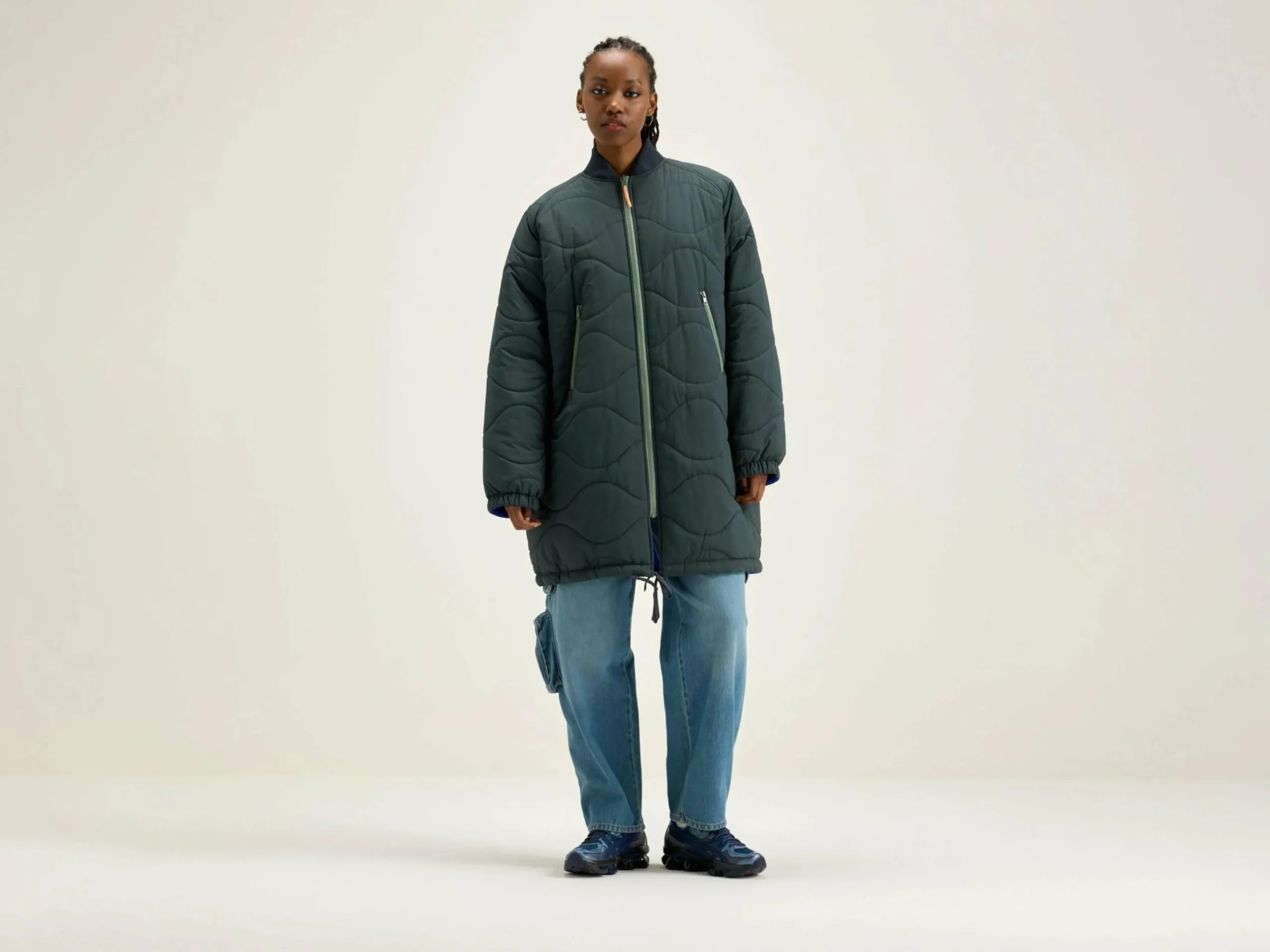- Poignets élastiques et cordon de serrage à l’ourlet