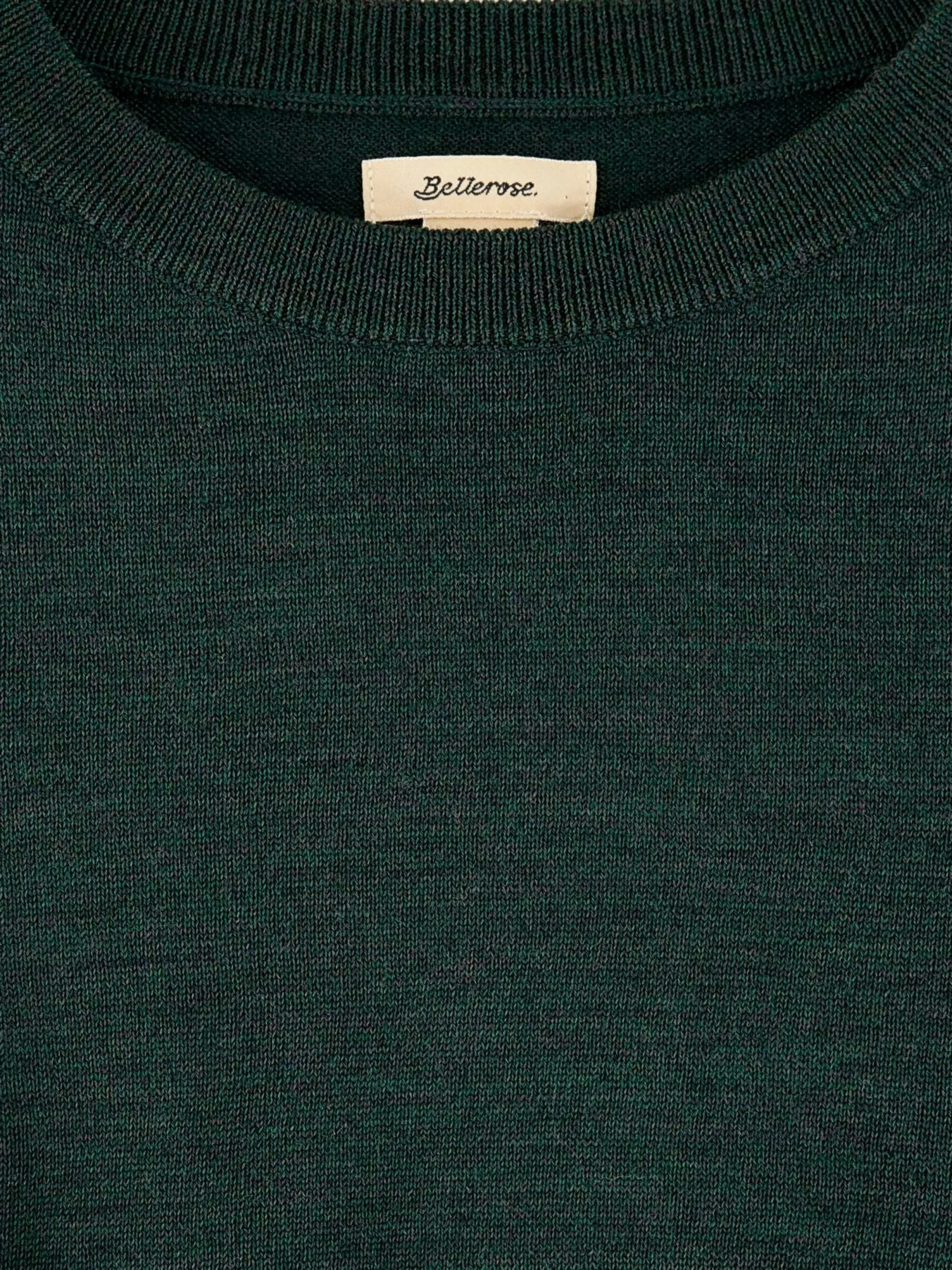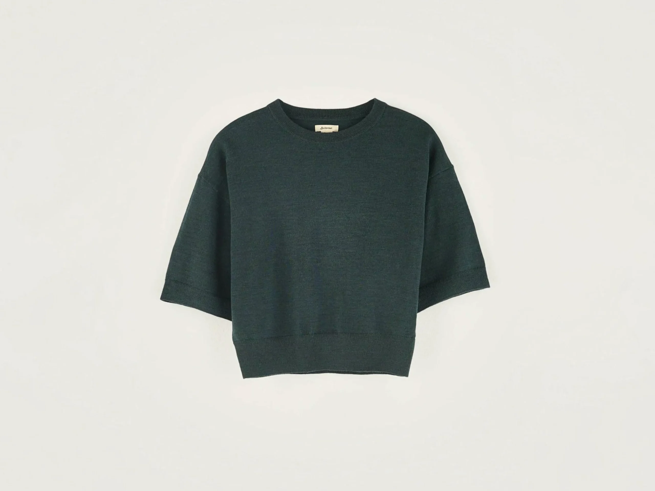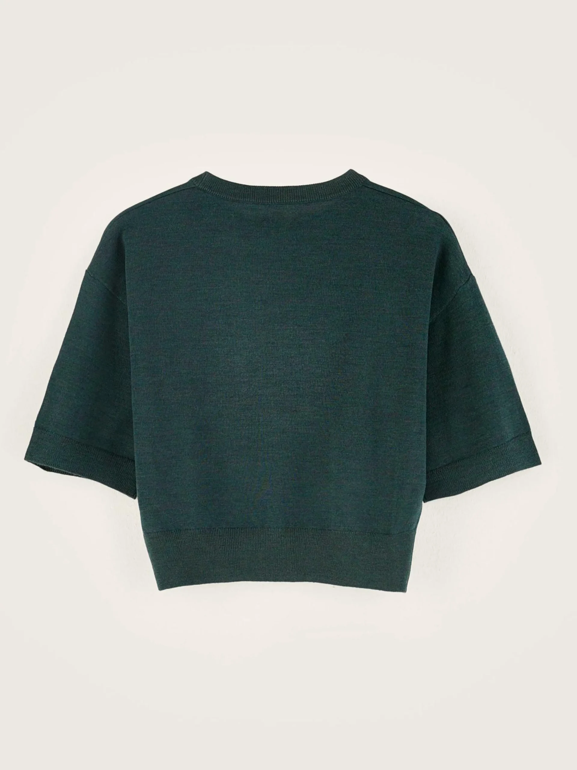 Pull court à manches courtes en laine mérinos, couleur vert bouteille.