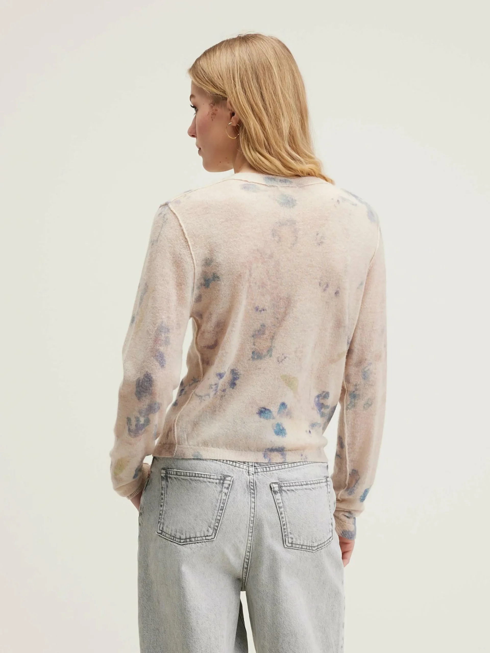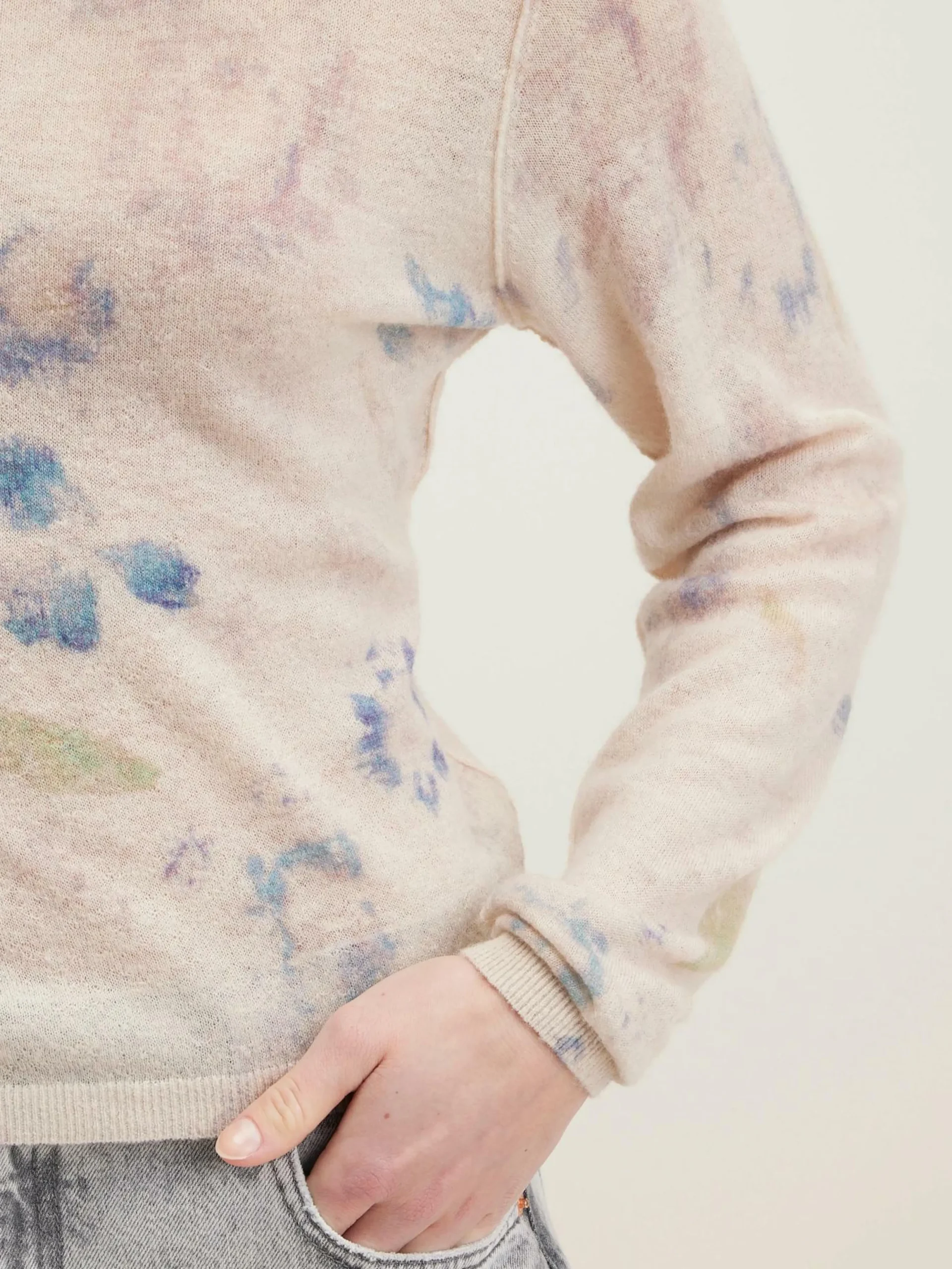 Pull fin imprimé de fleurs écrasées multicolores.