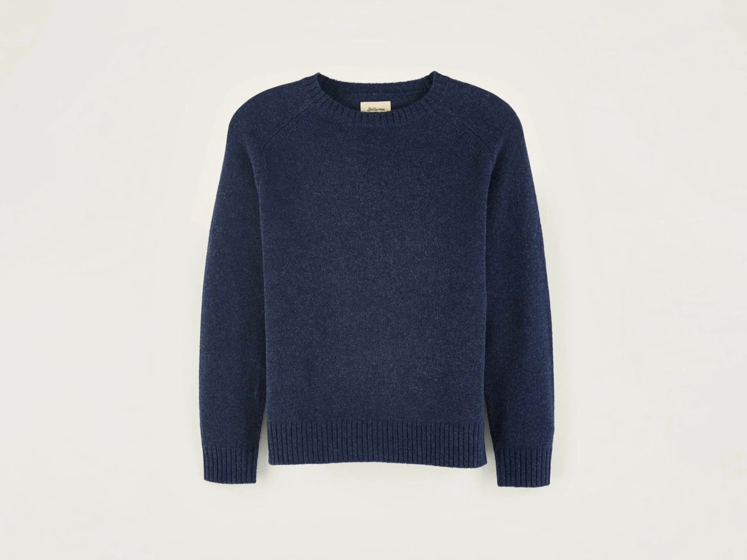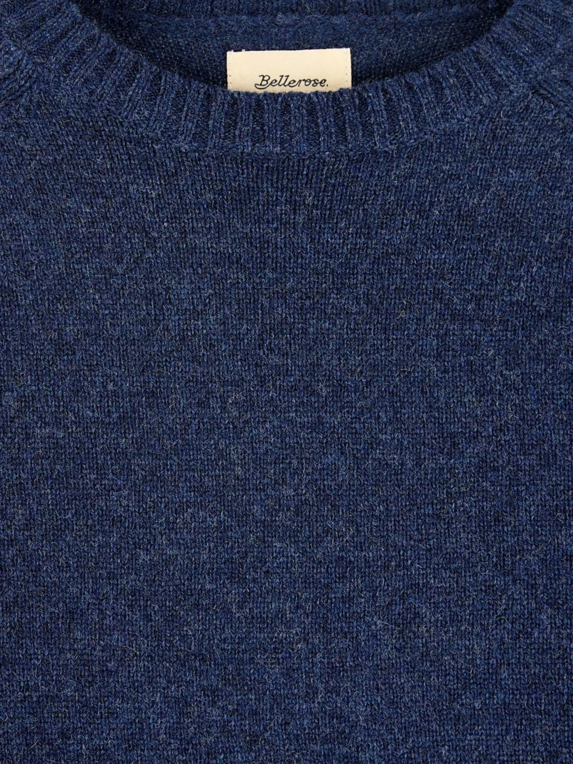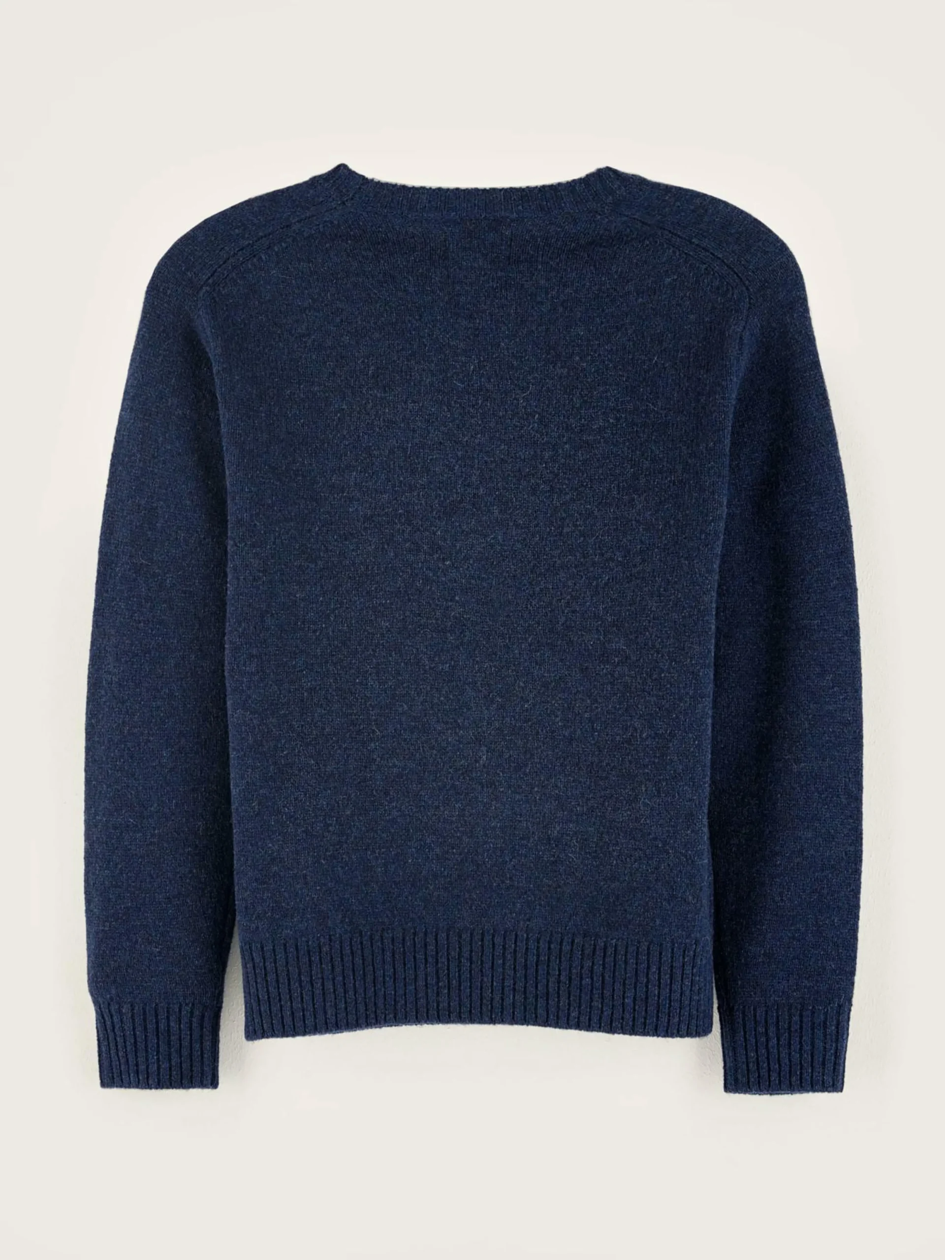 Pull classique à col rond, laine mérinos bleu encre.