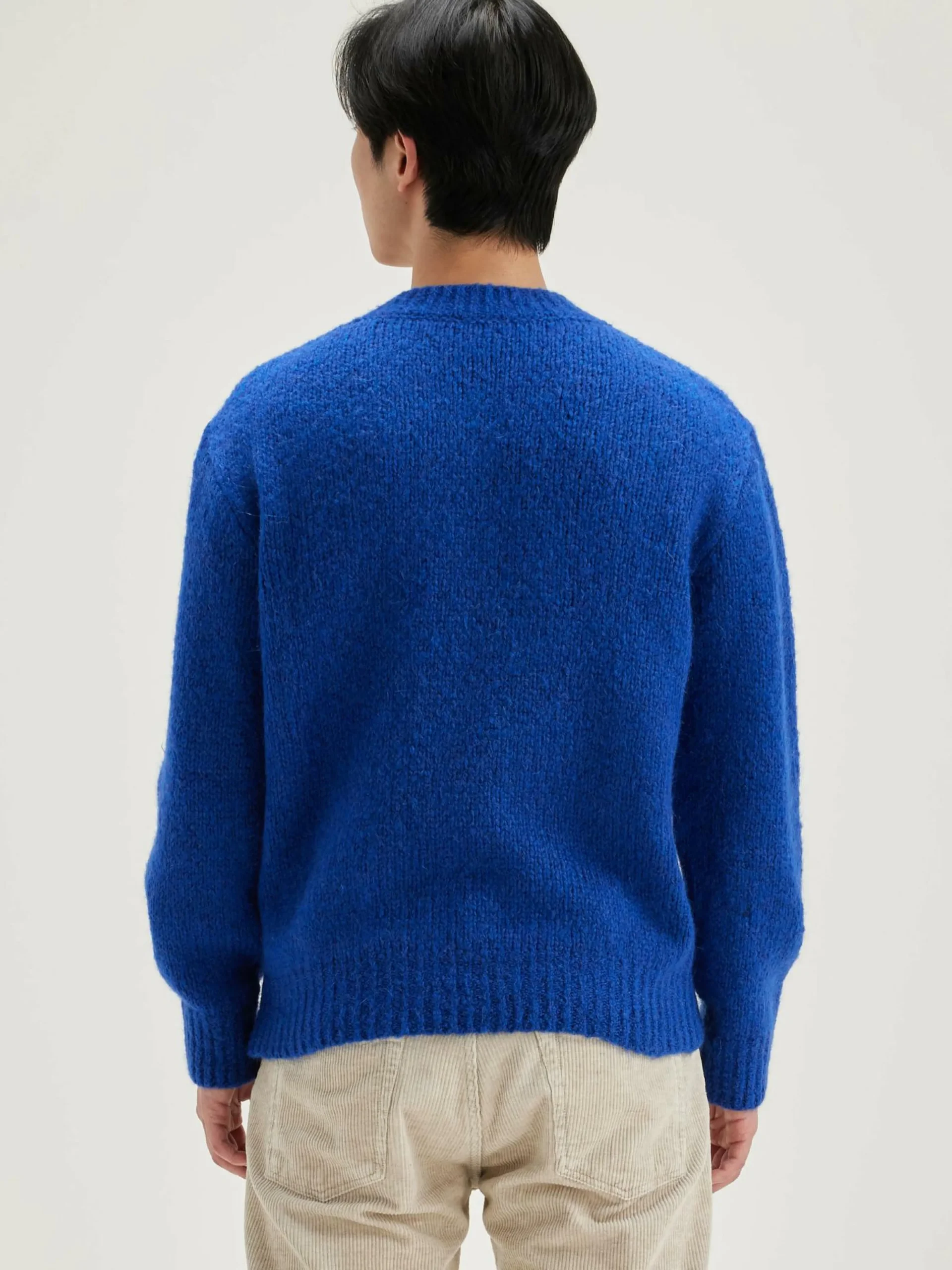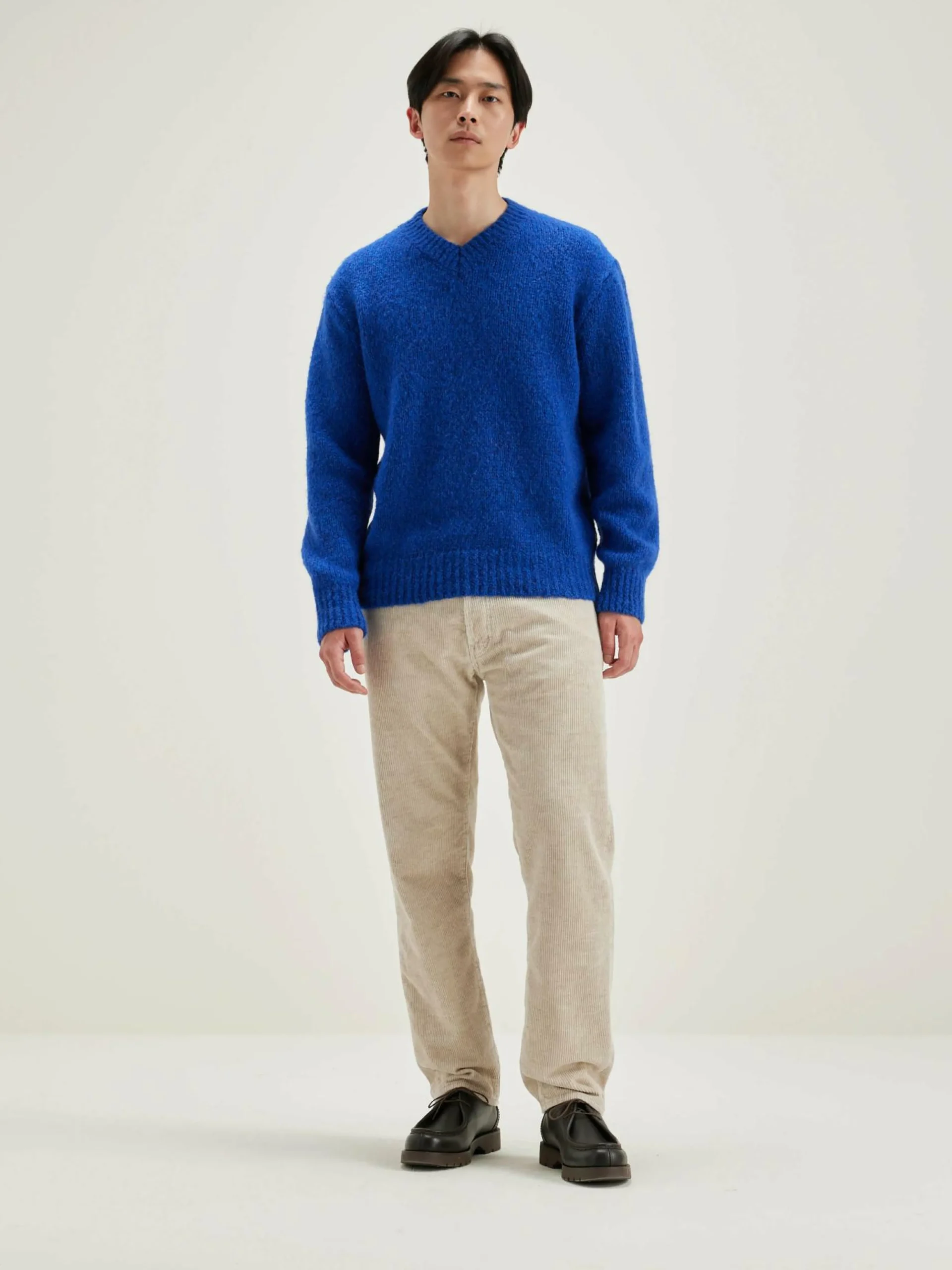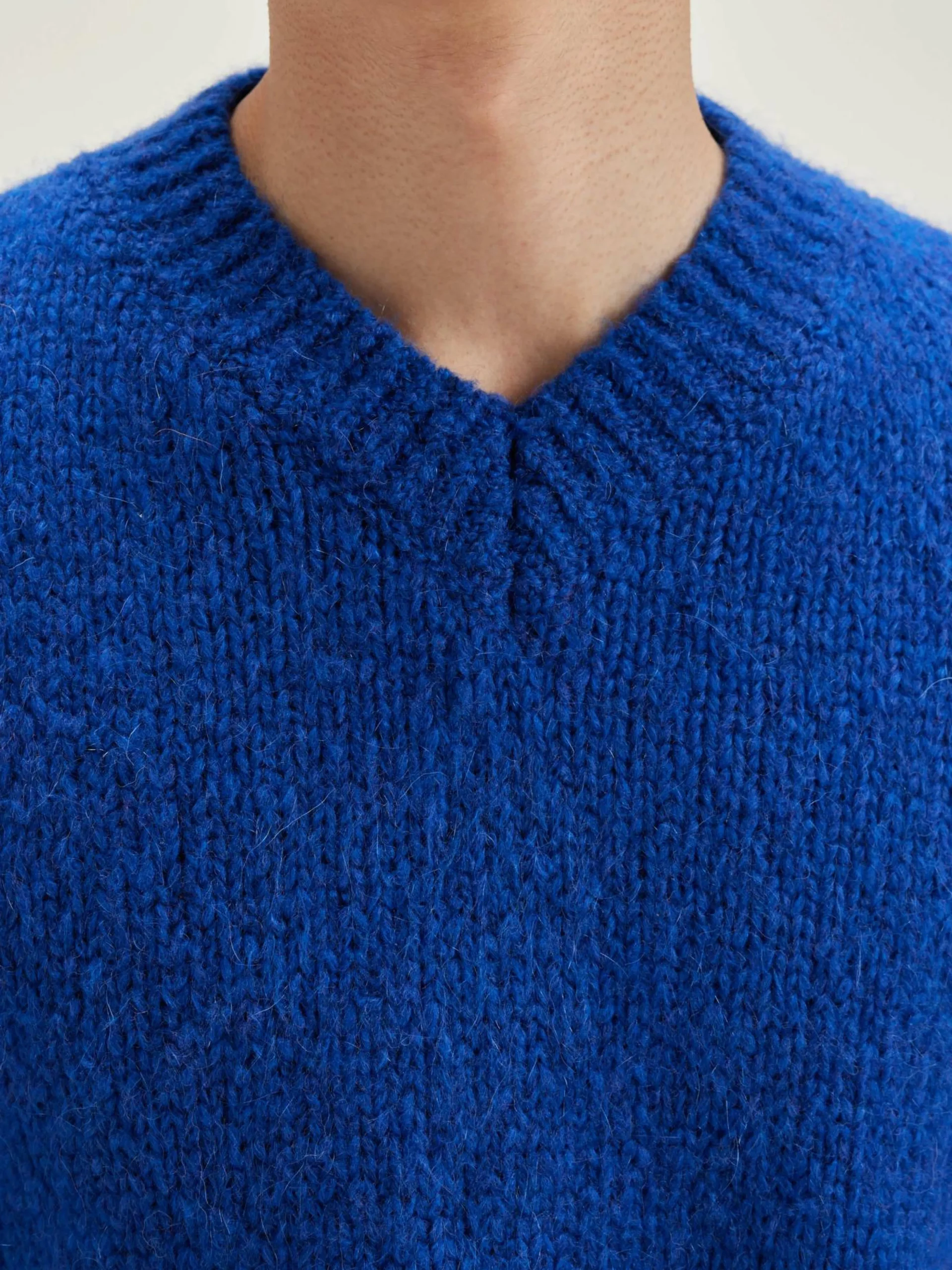 Pull décontracté à col V, couleur bleu Klein.