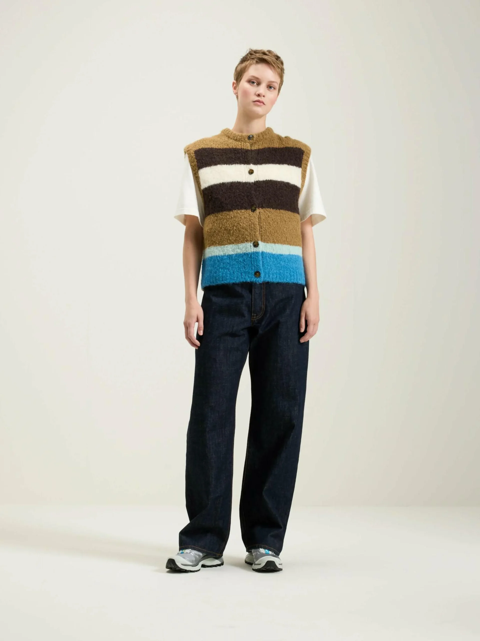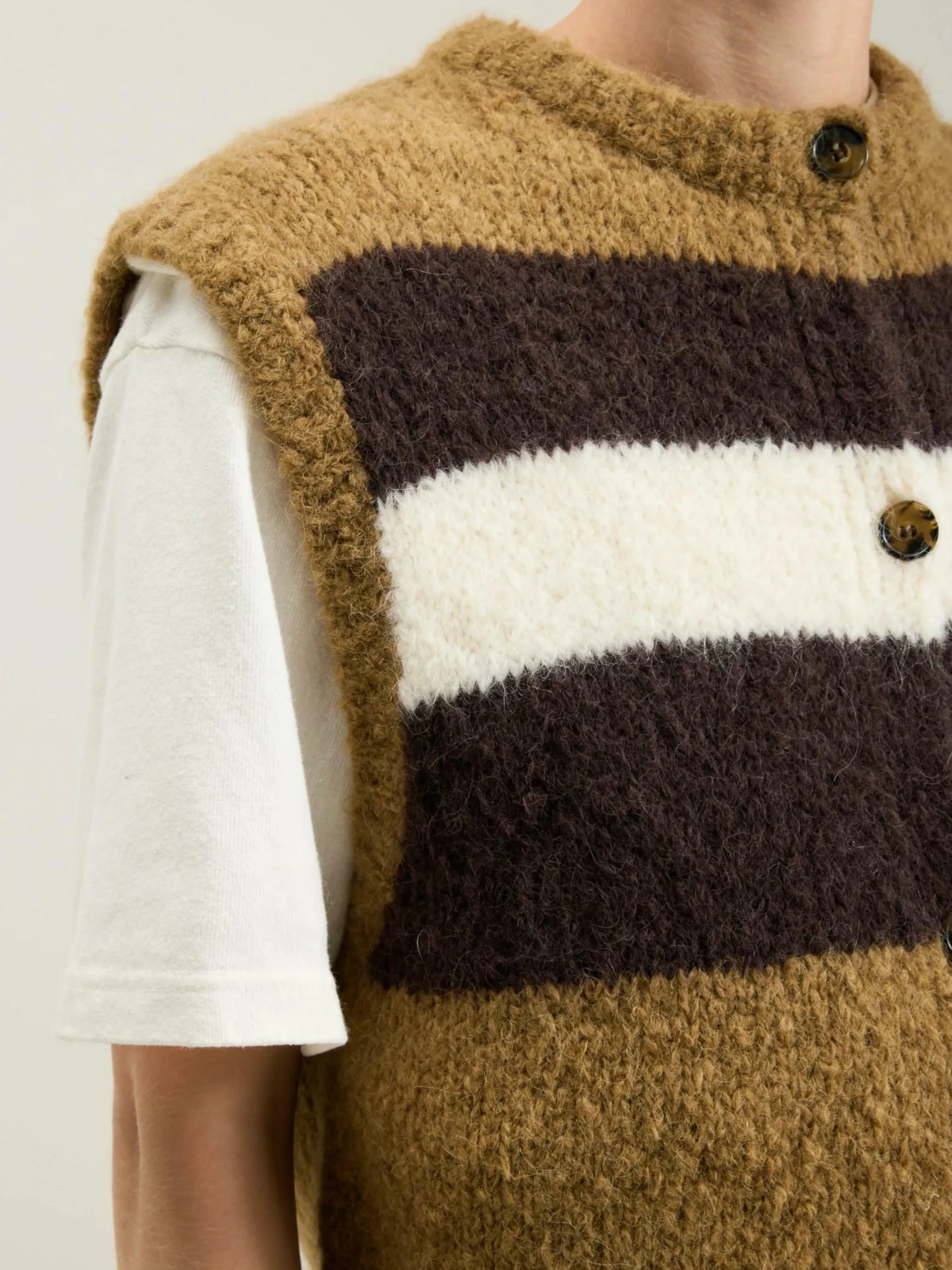 Gilet sans manches à rayures multicolores.