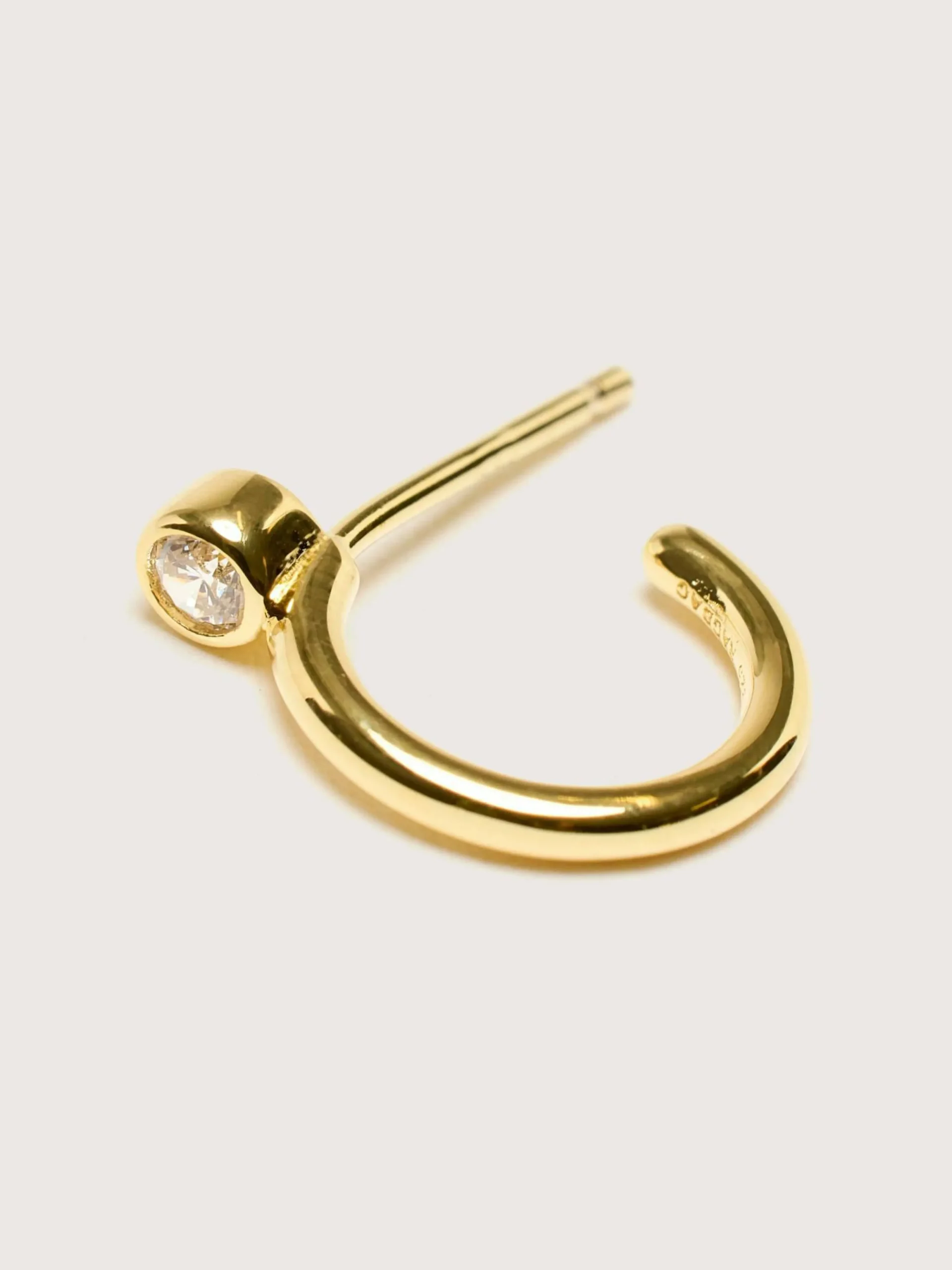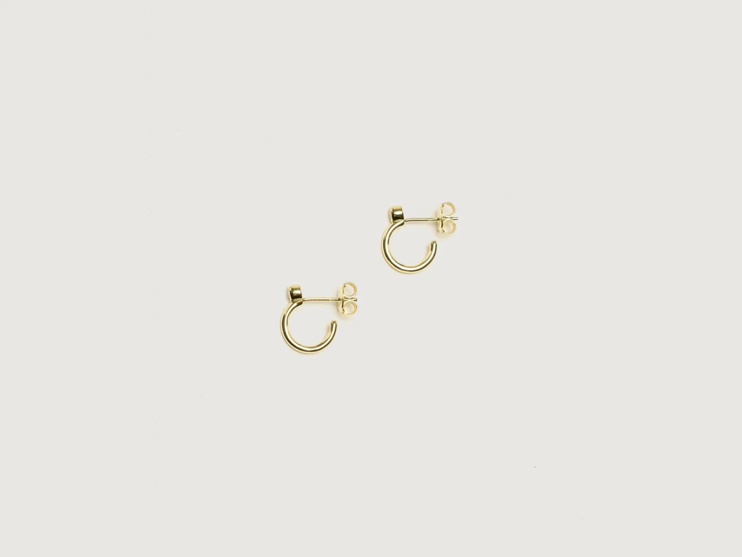 Les petites créoles Odette de RAGBAG sont fabriquées en argent sterling plaqué or 18 carats avec des pierres en zircon cubique blanc.