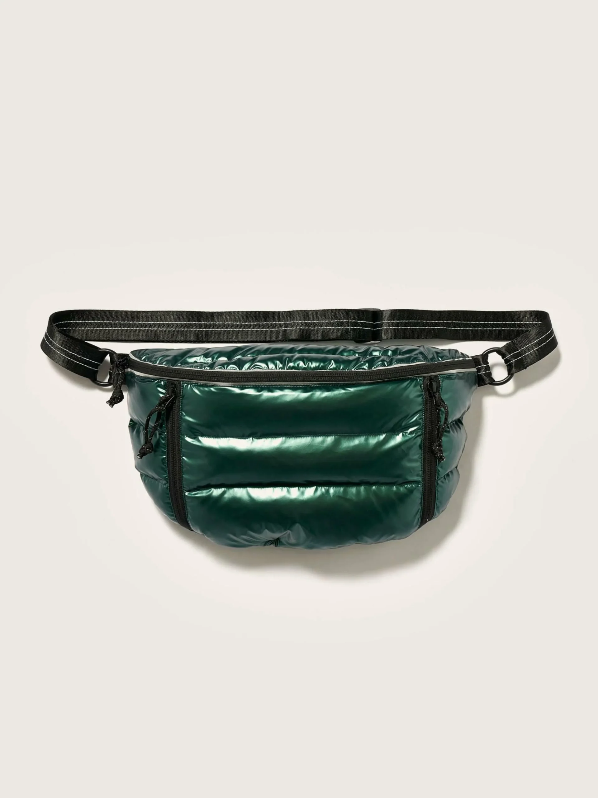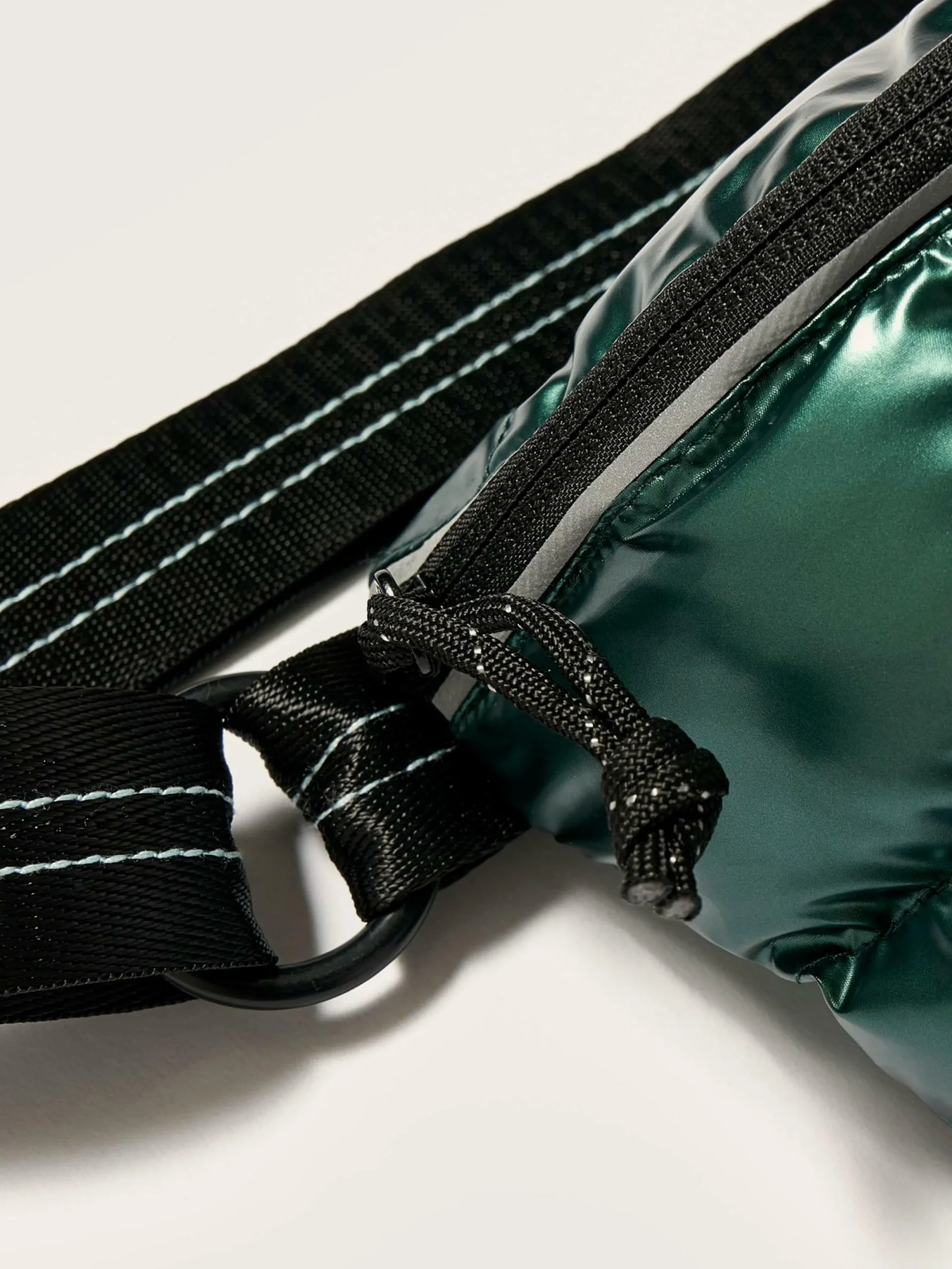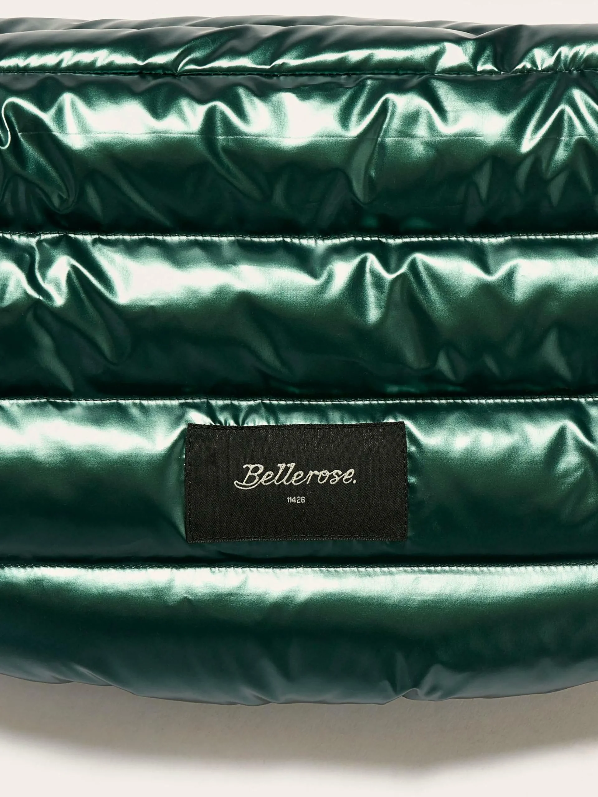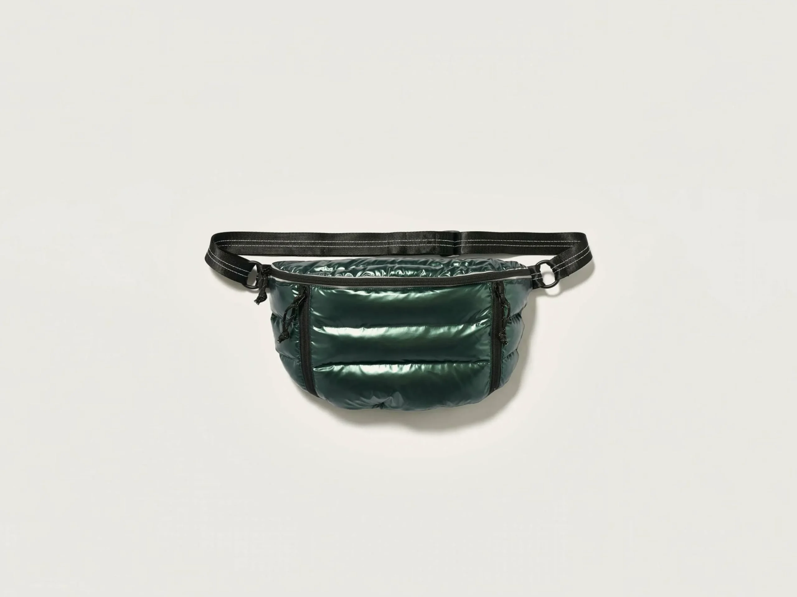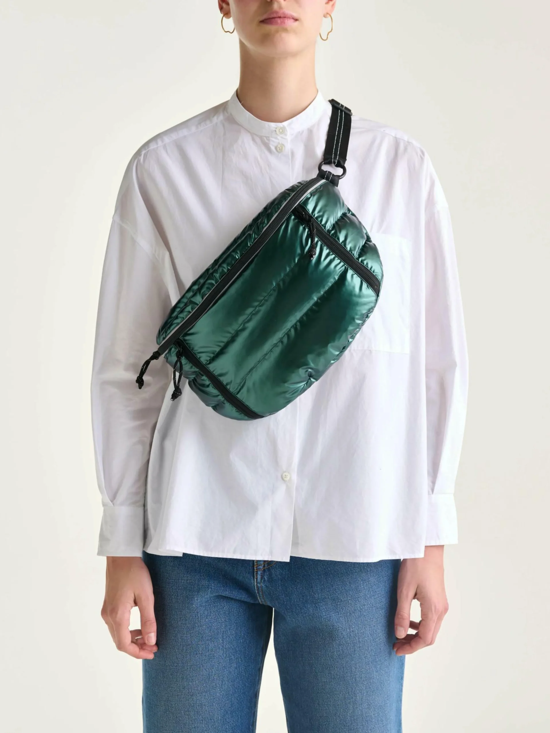 Sac à bandoulière matelassé en nylon vert foncé brillant.