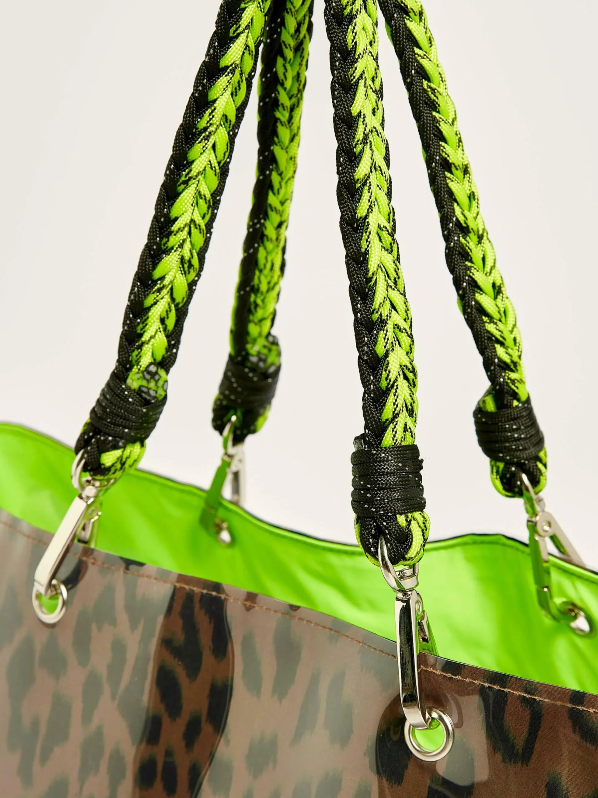 Sac shopper en imprimé léopard et PVC transparent.