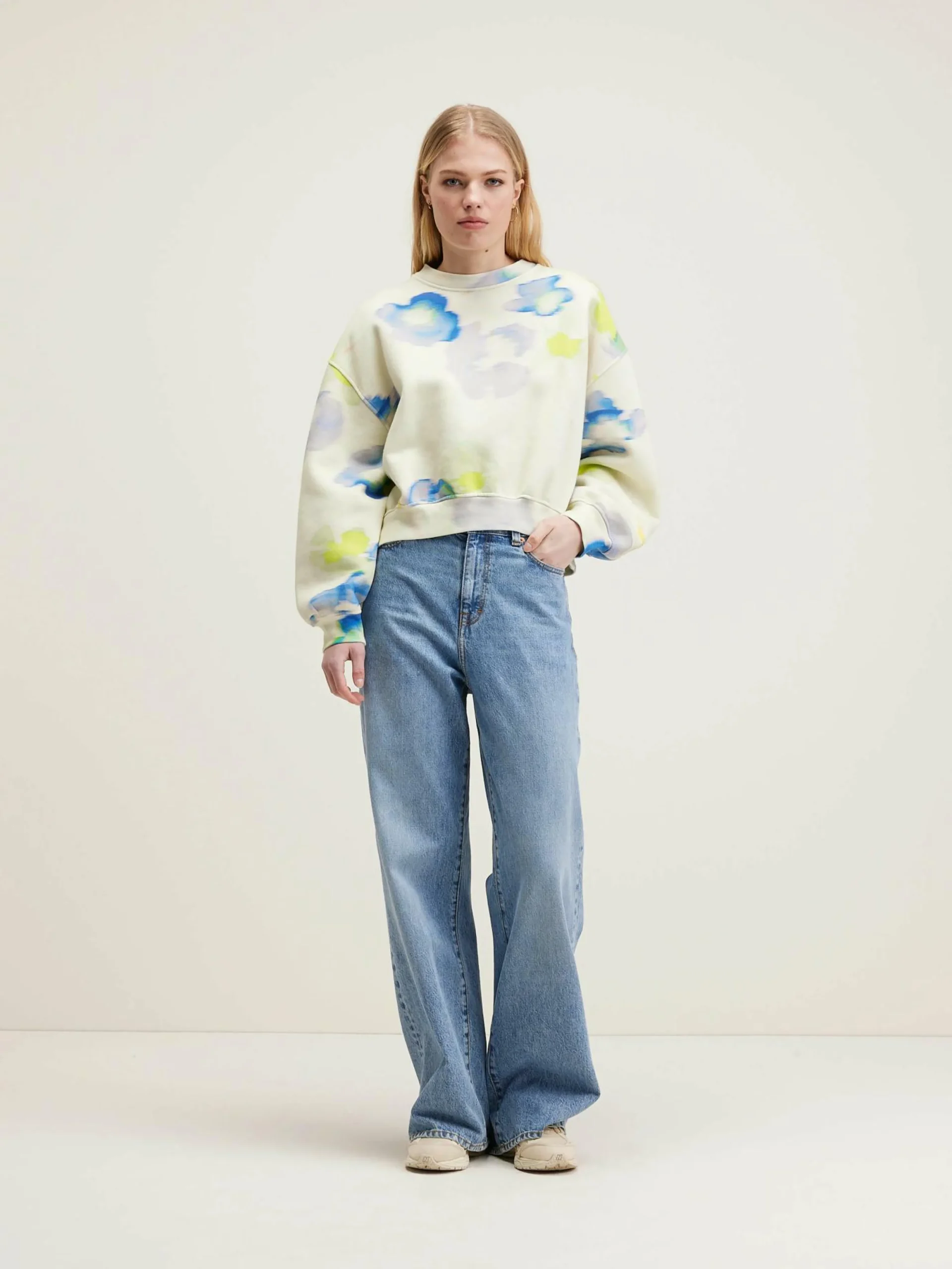 Sweatshirt oversize en jersey avec un motif de fleurs géantes et délavées.