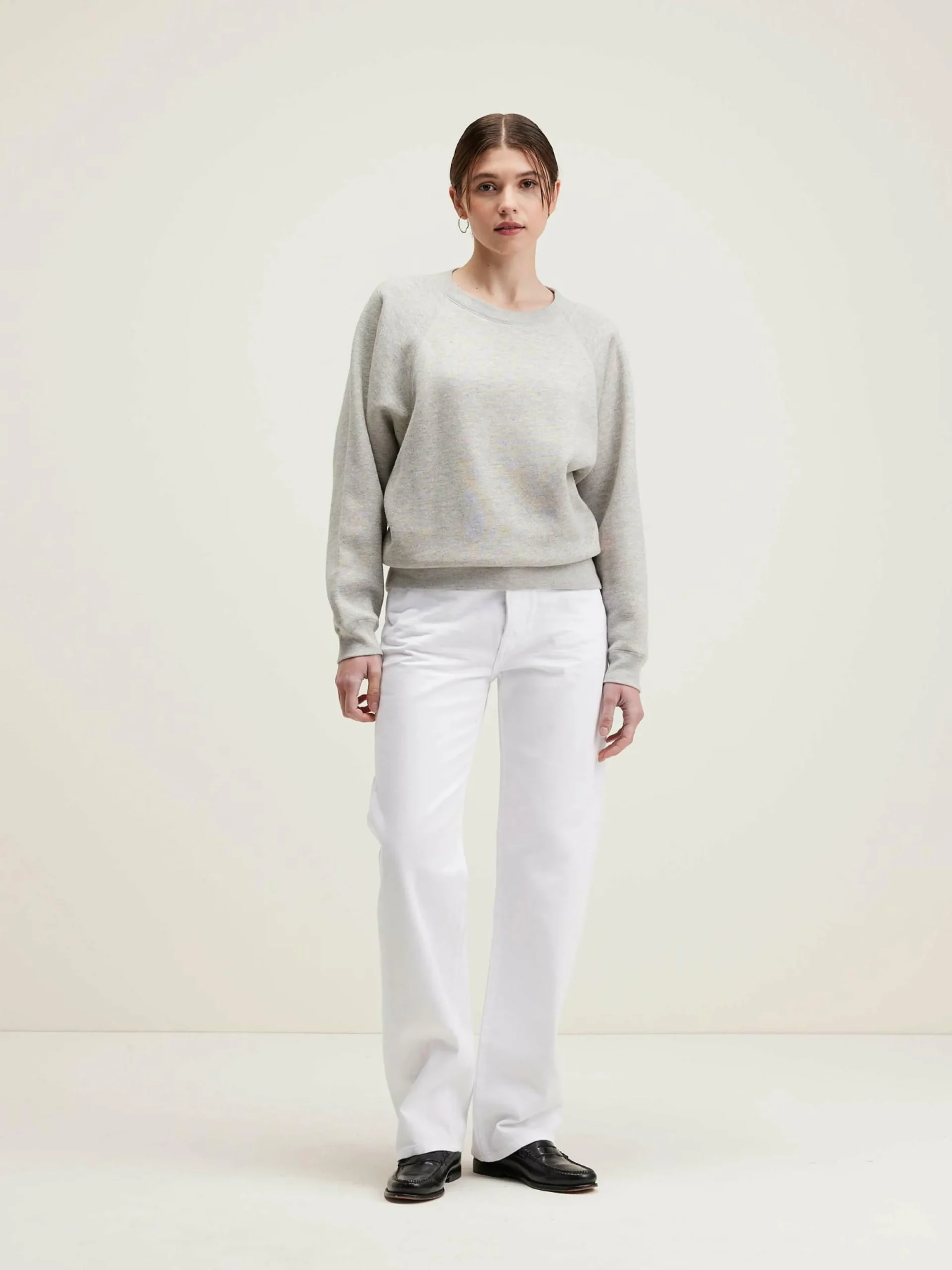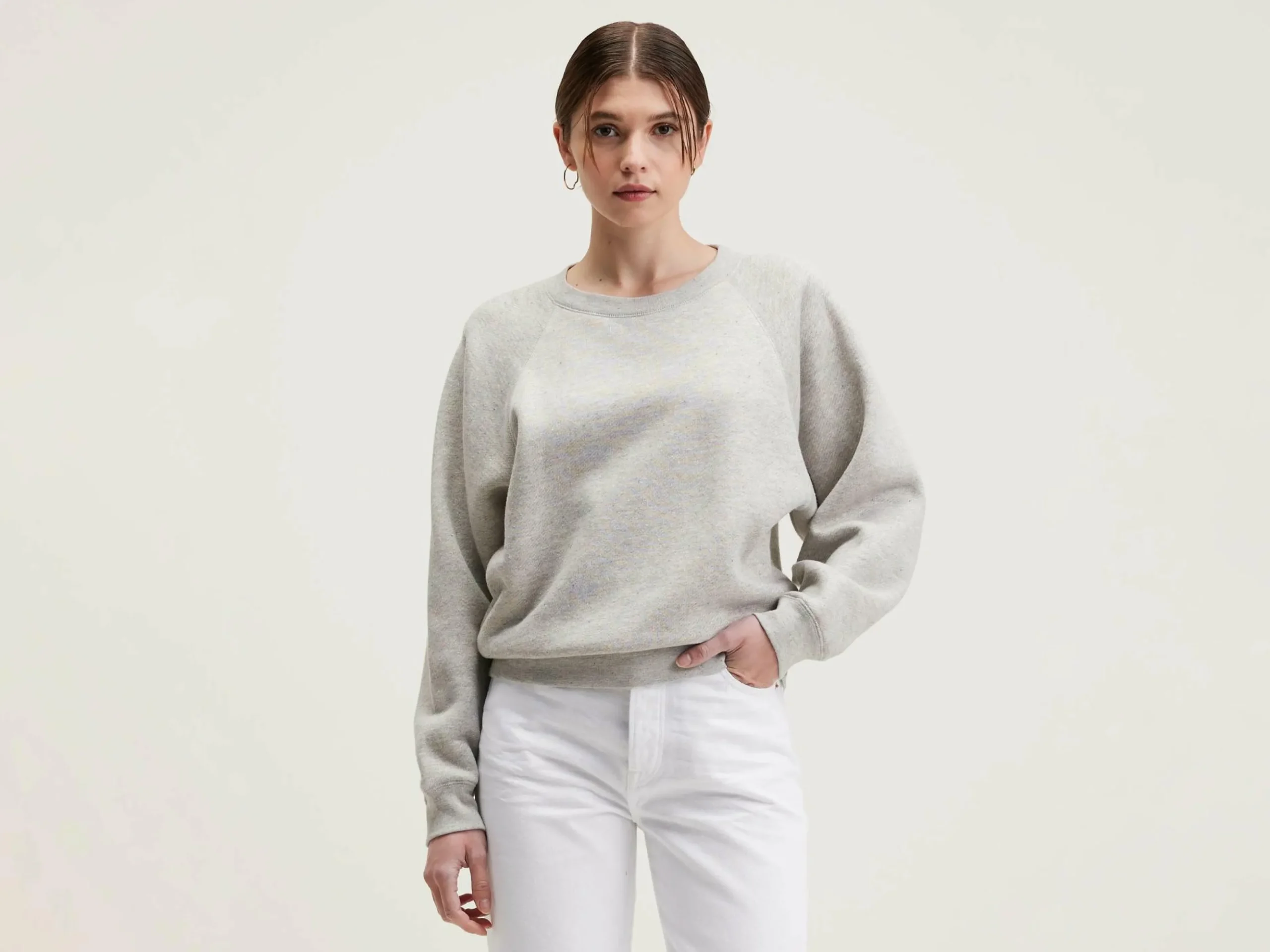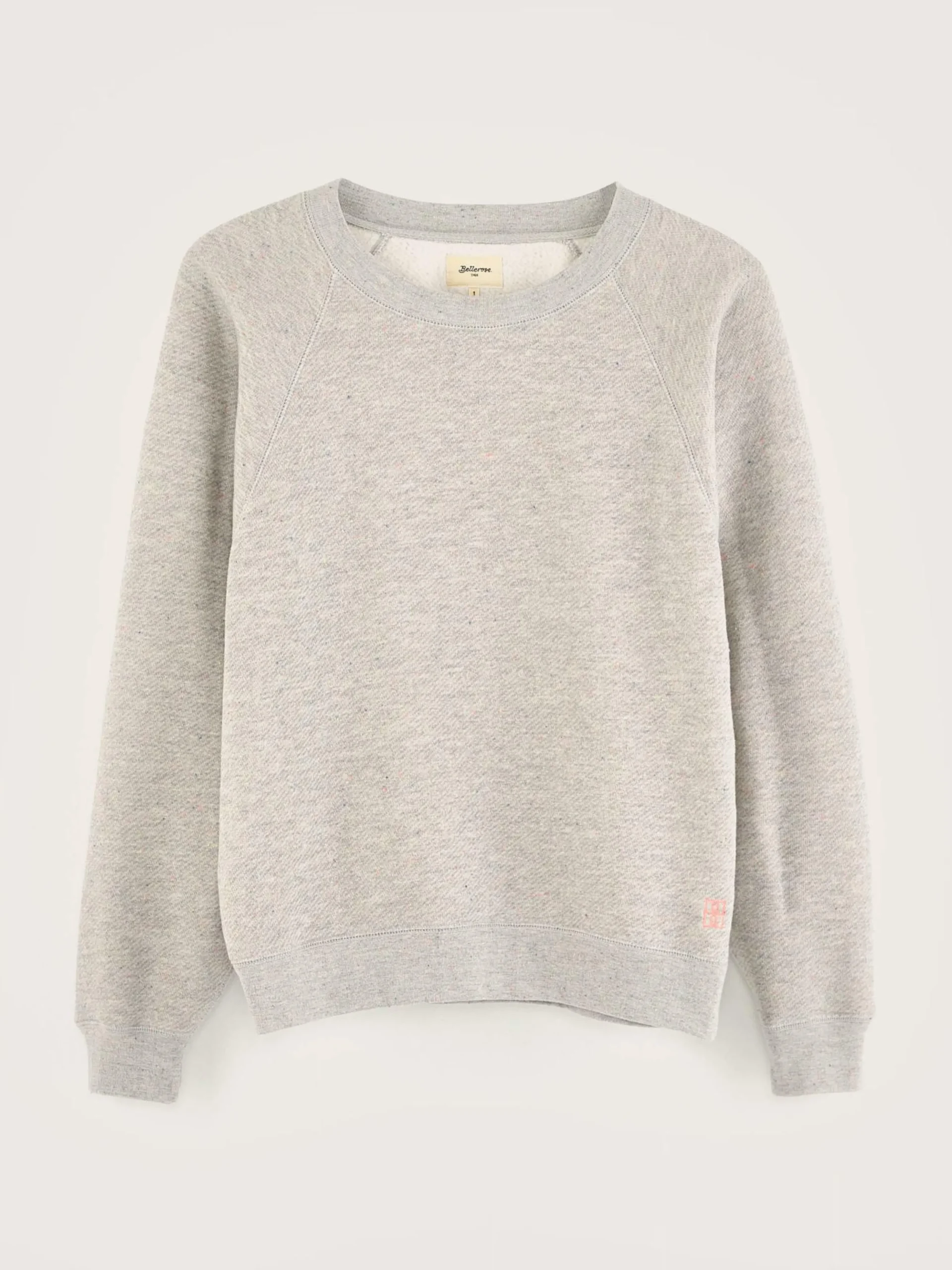 Sweatshirt décontracté à manches raglan en jersey gris chiné avec un effet des neps colorés.