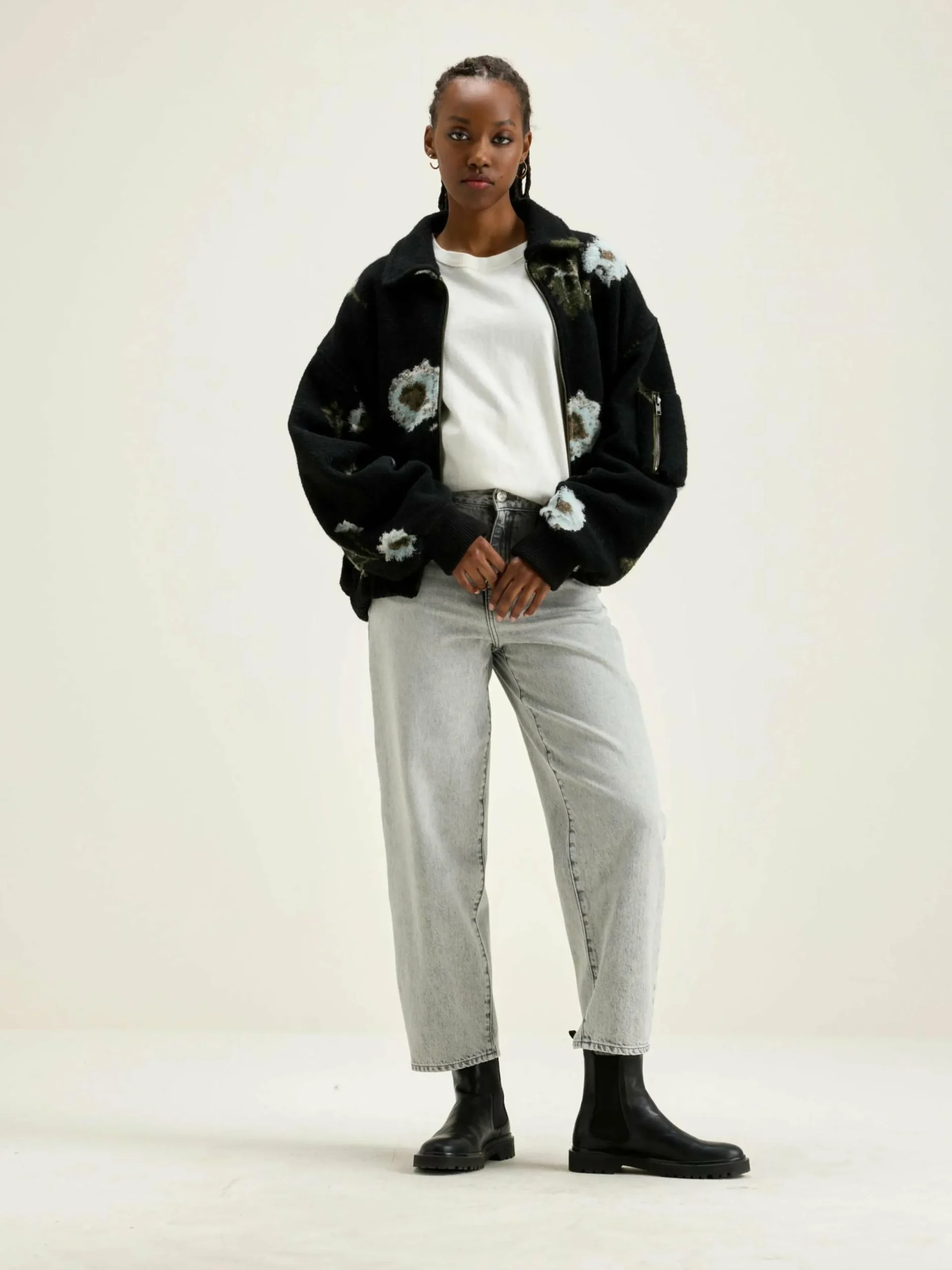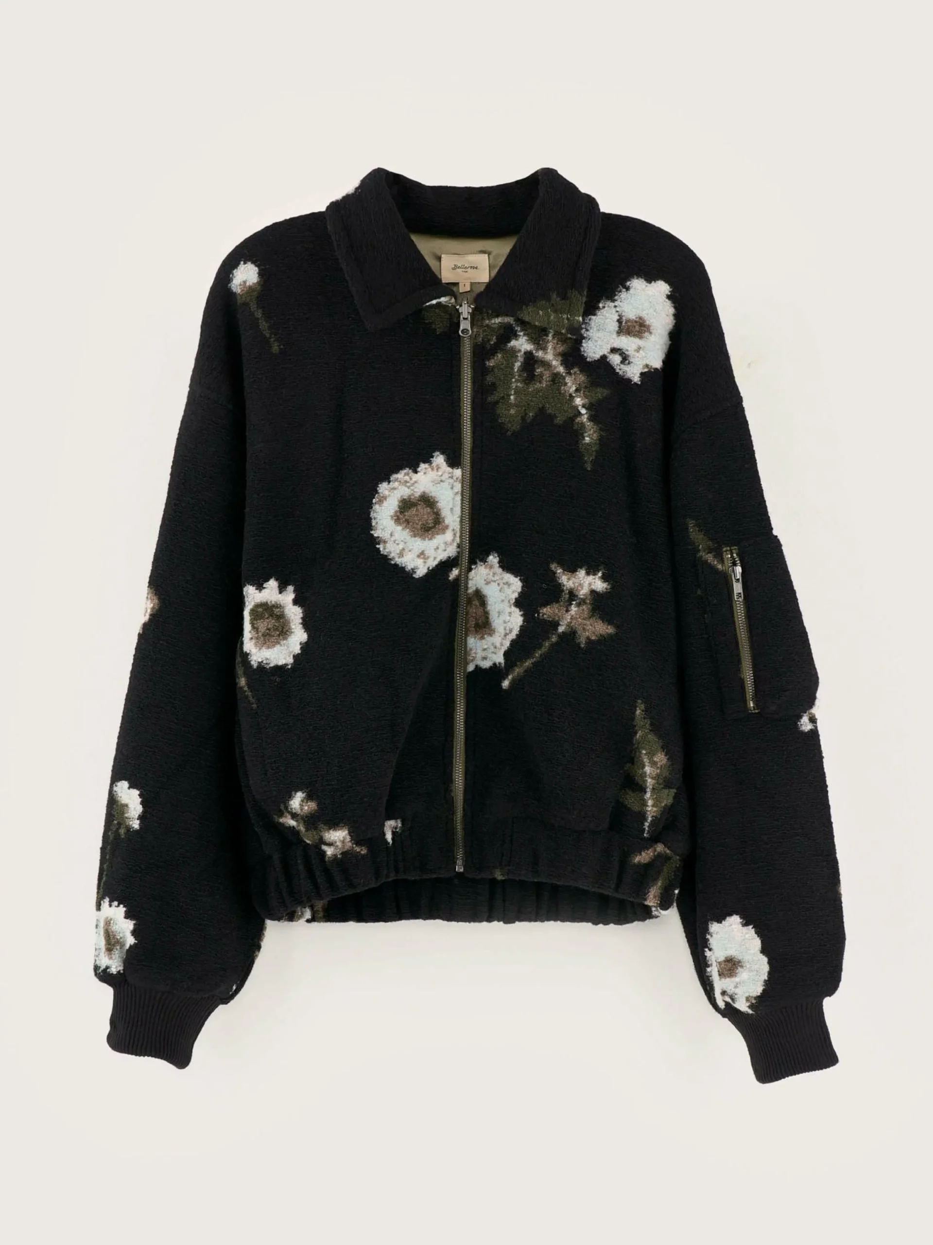 Veste sweatshirt style bomber en tissu jacquard à motif floral.